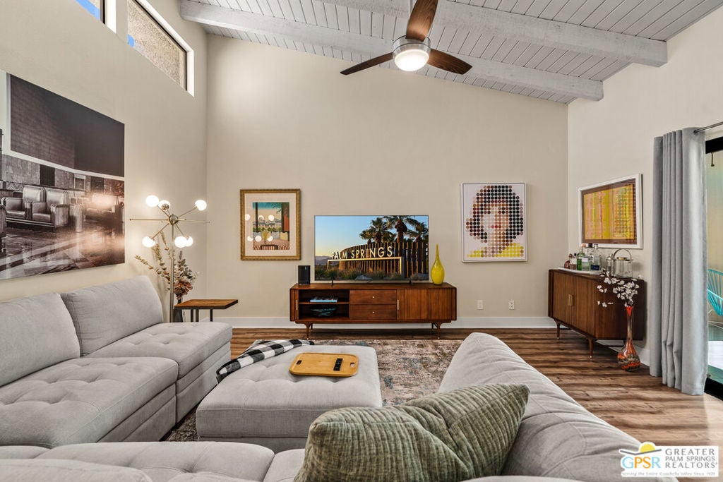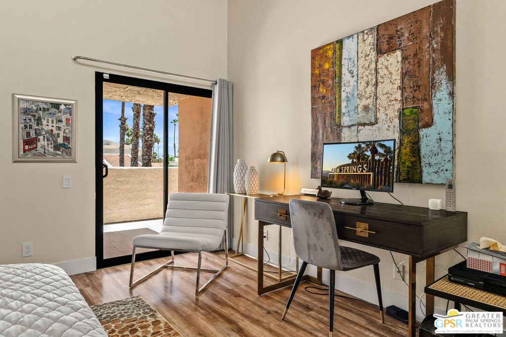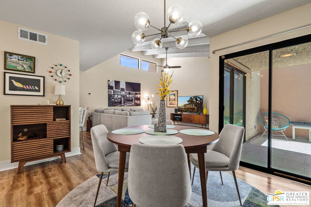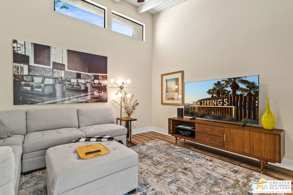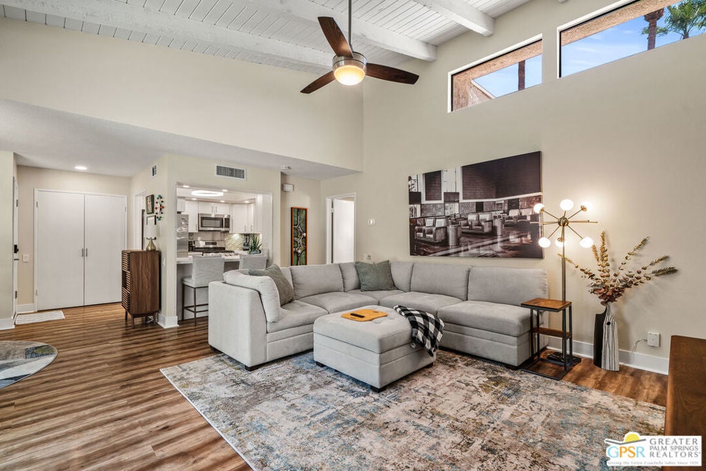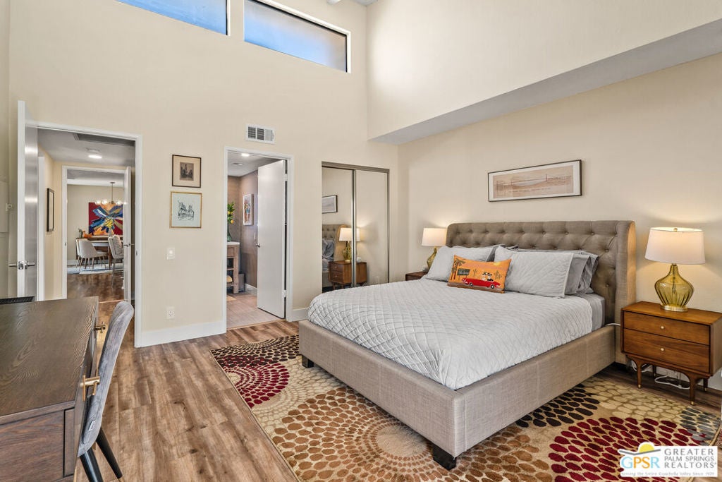 Another $20K price reduction - now priced well below the comps - the best deal in the area for a highly upgraded condo! Top floor 2BR/2BA condo at the sought after Versailles complex * On Fee Land * Extensively renovated in 2021 and further updated in 2025 * Open living/dining/kitchen * Dramatic living area with vaulted ceiling, clerestory windows and direct access to a private deck with western mountain views, perfect for indoor/outdoor entertaining * Dining area easily fits a table for 6 * Remodeled kitchen with quartz countertops, beautiful backsplash and stainless steel appliances including a 5-burner gas range * Primary bedroom with double closets and brand new closet system; remodeled en-suite bath with walk in shower and beautiful vanity; private deck with pool views * Remodeled guest bathroom with shower over tub * Guest bedroom with vaulted ceiling, walk in closet and private deck * In-unit laundry Newer laminate wood floors and Milgard sliders throughout * Newer American Heating and Air system * Brand new tile on all 3 decks * 1 car assigned parking with additional parking available * HOA Dues: $592/mo (includes garbage, water, insurance/EQ Insurance, professional management) * Central Palm Springs location with EZ access to the Smoke Tree shopping center Well run HOA with numerous amenities including 4 pools & spas and 2 tennis courts