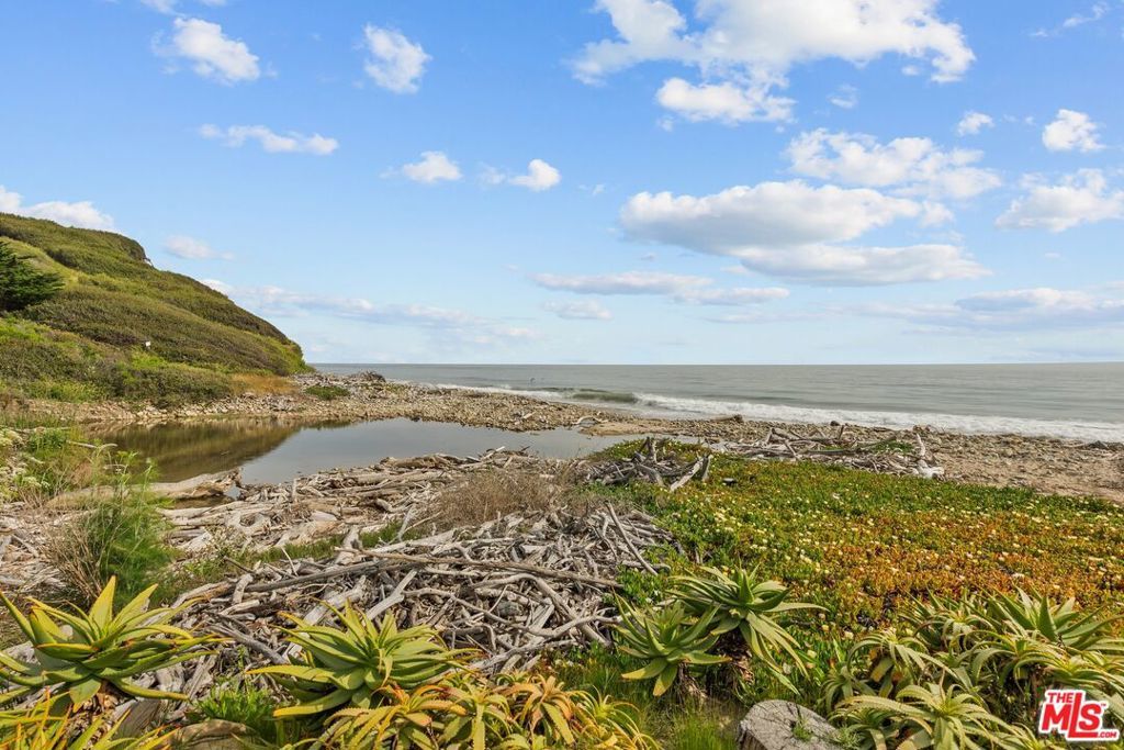 10-acre unique El Capitan Ranch offering. Exclusive coastal gated community with access to a private beach. The 4500-sf contemporary ranch home is also privately gated and features 5 bedrooms and 5 baths, including a guest suite and media/game room. It is open, light, and bright, with vaulted ceilings, chef's kitchen, butler's pantry, 3000-bottle temperature-controlled wine room, solar w/battery backup, and Tesla charging. The lush, park-like setting is breathtaking, with a running stream, 15' waterfall, swimming hole, tropical walkways, oaks, and sycamores. A true one-of-a-kind property.