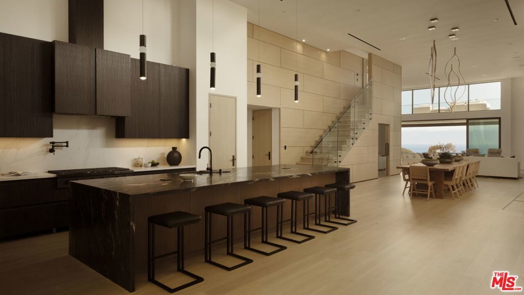Welcoming all offers! Oceanview Excellence in Architectural Form. Minutes from Zuma Beach, this extraordinary estate captures the essence of refined coastal living with striking modern architecture, thoughtful design, and panoramic ocean views. Framed in durable steel for structural integrity and longevity, this newly constructed home is a harmonious blend of sophistication, comfort, and innovation. Soaring 10-15 ft ceilings and complemented by white oak floors, custom-milled doors, clerestory windows, and a sculptural glass staircase - all designed to frame and amplify the stunning, uninterrupted coastline views from nearly every room. State-of-the-art chef's kitchen, 2-story living room with dramatic marble fireplace, 100+ bottle wine display and marbled wet bar bring sophistication and functionality. The ocean-facing primary suite is a tranquil haven with a luxurious marble shower, soaking tub, and a generous walk-in closet. There are 4 add'l ensuite bedrooms on the main floor and a flexible bonus loft with bath and private balcony offering a quiet space for relaxation or creativity. Expansive terrace and infinity-edge pool with cascading waterfall and hot tub offer breathtaking ocean vistas. An al fresco dining area, outdoor fireplace, mature citrus trees and vineyard with potential to produce up to 1,500 bottles annually adds the finishing touch for the resort-like experience. A North/South night lit tennis court completes this home in addition to a structure perfect for a gym, game room, or private guest unit. With 6 bedrooms, 7.5 bathrooms, sweeping terraces, and gated parking for 10 vehicles, this estate is built for intimate coastal living and grand-scale entertaining.