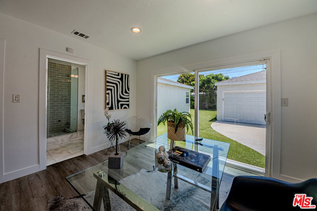 Nestled in Crenshaw Manor, one of Los Angeles' most sought-after neighborhoods. Thoughtfully designed for easy living, the property features high-end touches like Jenn Air appliances, Carrera marble tile, quartz countertops, and an open-concept layout filled with natural light. With nearly 1,700 square feet of space, the home includes a spacious master suite with direct backyard access, along with three additional bedrooms, perfect for a family, guests, or a home office. The expansive 6,100+ square foot lot provides plenty of room for outdoor enjoyment and future enhancements, such as adding a pool or converting the garage into an ADU. Ideally located near the Metro and 10 Freeway, this home makes it simple to access the beach, the Eastside, and all that Los Angeles has to offer. Eco-conscious tenants will love the paid-off solar panels, Alexa-enabled Ecobee Thermostat, and Ring security system, which enhance both sustainability and peace of mind. Situated on a peaceful, tree-lined street in a vibrant, community-oriented neighborhood, this home makes it easy to enjoy everything LA has to offer while living in comfort and style.