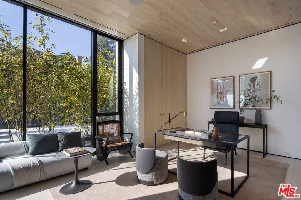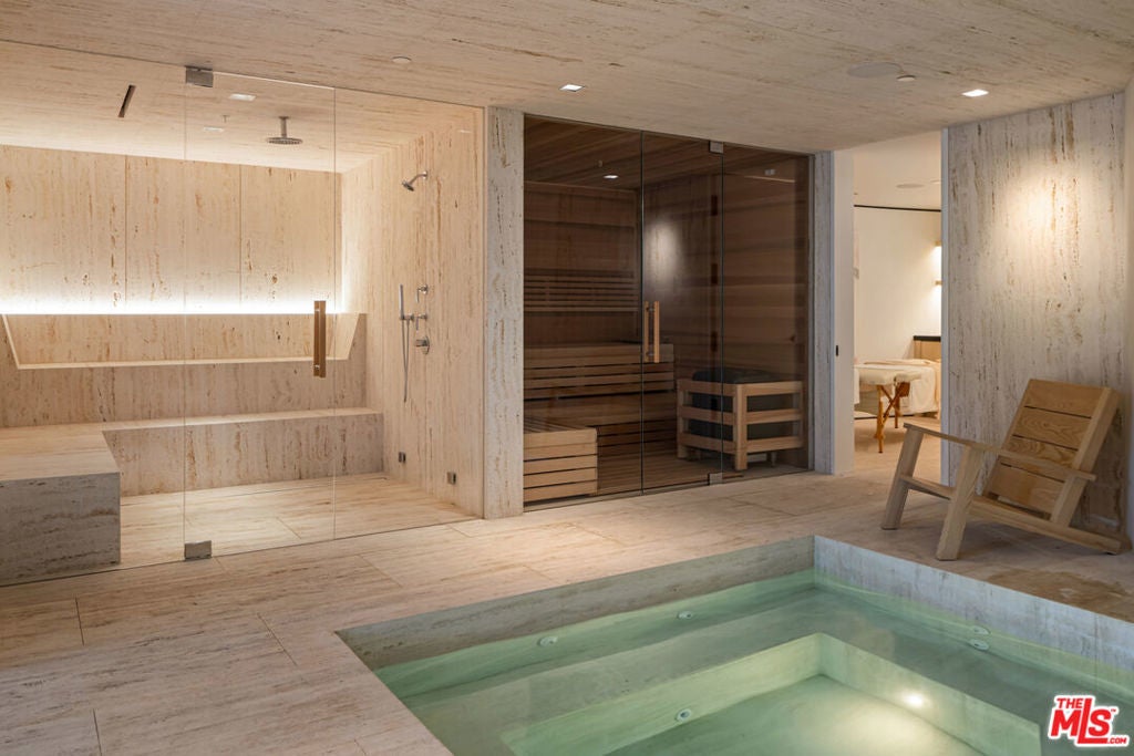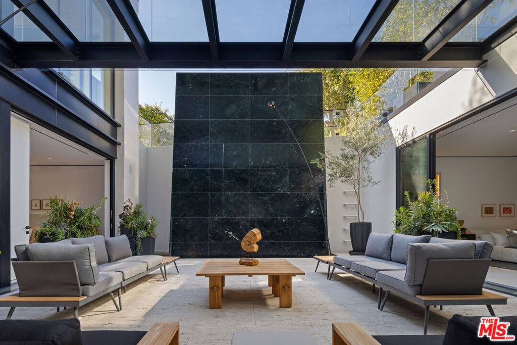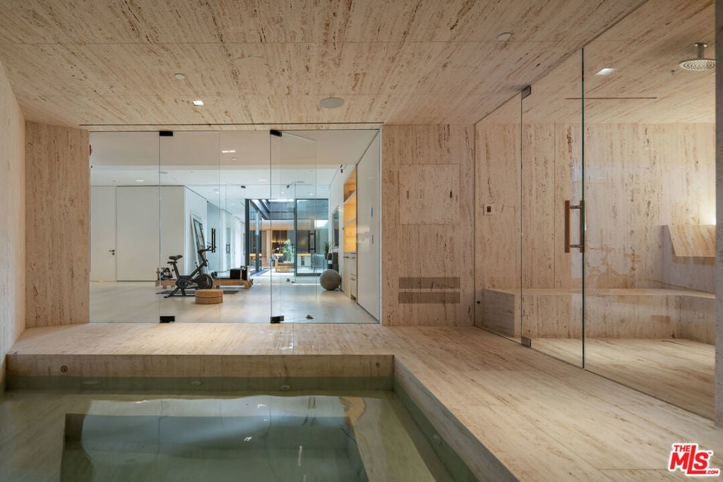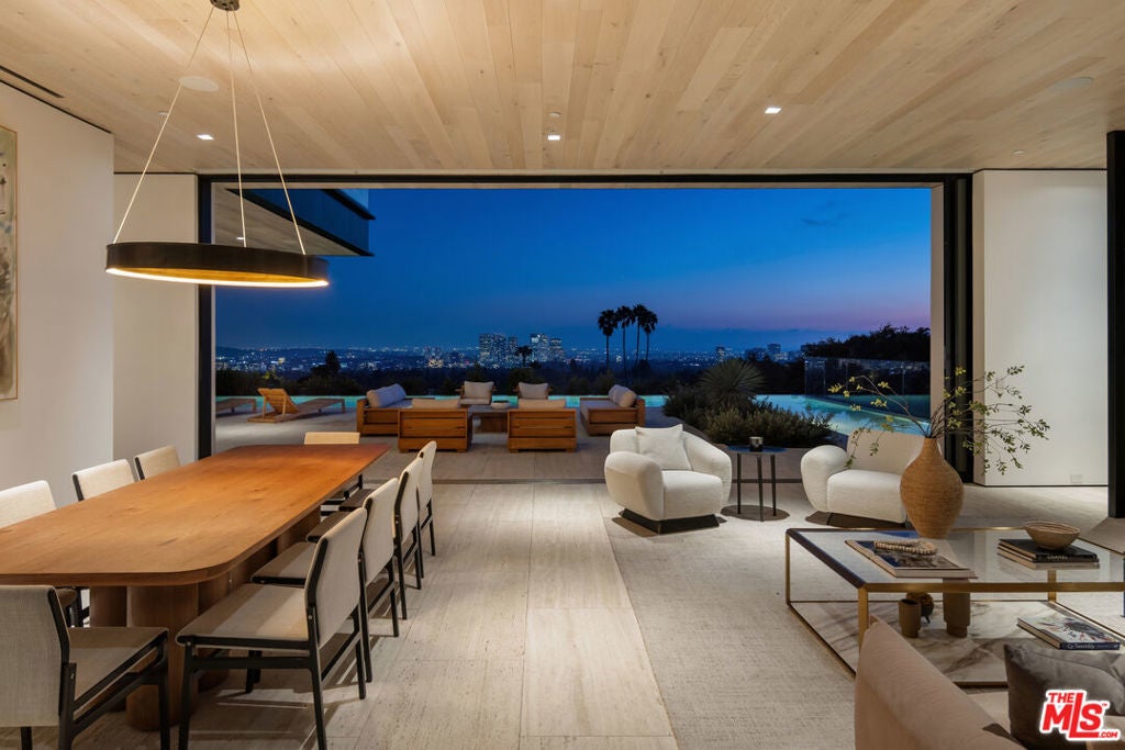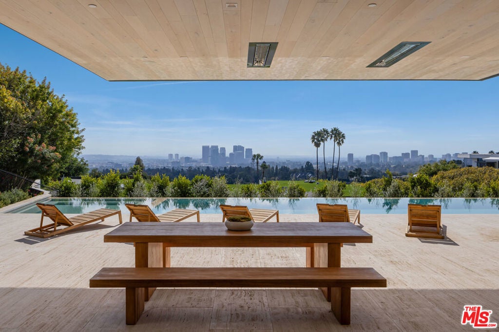 A stunning brand-new Beverly Hills architectural triumph comprised of steel, glass, & stone in an unparalleled location overlooking spectacular city to ocean views. A collaboration of world class visionaries modernist Paul McClean and AD100 interior designer Waldo Fernandez. Situated on a private promontory behind gates, follow the steel and glass catwalk into a grand entryway, living/dining/great room, gourmet kitchen with separate chef's kitchen, family/media room, office, separate professional theater & incredible onyx bar and game room, resort-like spa, gym & wellness center and much more. Spectacular primary suite with head-on views and light imported stone bath and large walk-in closet. Walls of glass and great walls for art intersect incredible outdoor areas, infinity pool, and courtyard garden with a cascading waterfall. An incredible value that can't be replicated. Shown to pre-qualified clients.