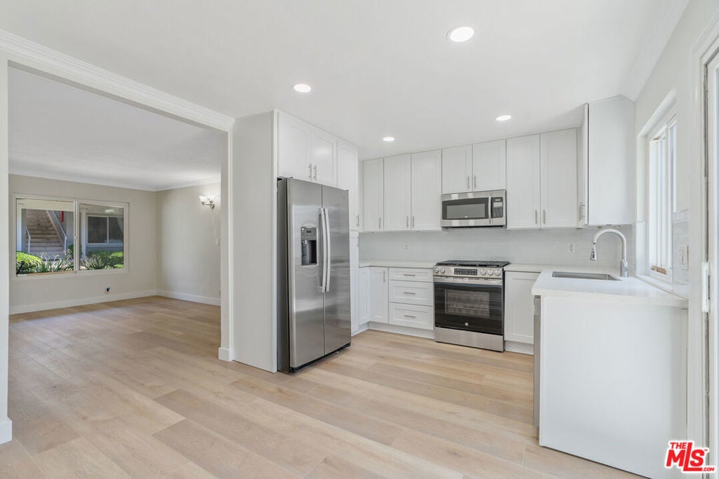 Irvine Perfection! Welcome to 46 Eagle Point, a beautifully remodeled expansive three-bedroom, two-bath first floor condo nestled in one of Irvine's most coveted neighborhoods. From the moment you pass the charming front garden and step inside, you're welcomed by an abundance of natural light and thoughtfully curated spaces that instantly feel like home. Designed for effortless living, the open floor plan flows from a sunlit living area to an updated chef's kitchen featuring custom cabinetry and countertops, new stainless steel appliances and a dining area perfect for everyday meals or special gatherings. Just beyond the sliding doors, a generous private patio with lush landscaping and a trellis invites al fresco dining and outdoor relaxation. The serene primary suite offers a spa-like experience with dual vanities and a shower over tub. Two additional spacious bedrooms provide room for guests, work or creative space. The updated hall bath includes an open entry shower and the convenience of an in-unit laundry room adds to the ease of daily living. Luxury vinyl flooring, designer lighting, crown molding and high-end finishes throughout elevate the space, while the well-maintained community features exceptional amenities including a sparkling pool, spa, sports courts, and nearby parks. Located close to top-rated schools, IVC College, UCI and a few blocks to the serene North Lake, trendy shops and vibrant dining options, offering the perfect blend of comfort, style, and convenience. Whether you're looking for your forever residence or a low-maintenance retreat, this is a rare opportunity to own a slice of Irvine living at its best. This property is ready to welcome you!