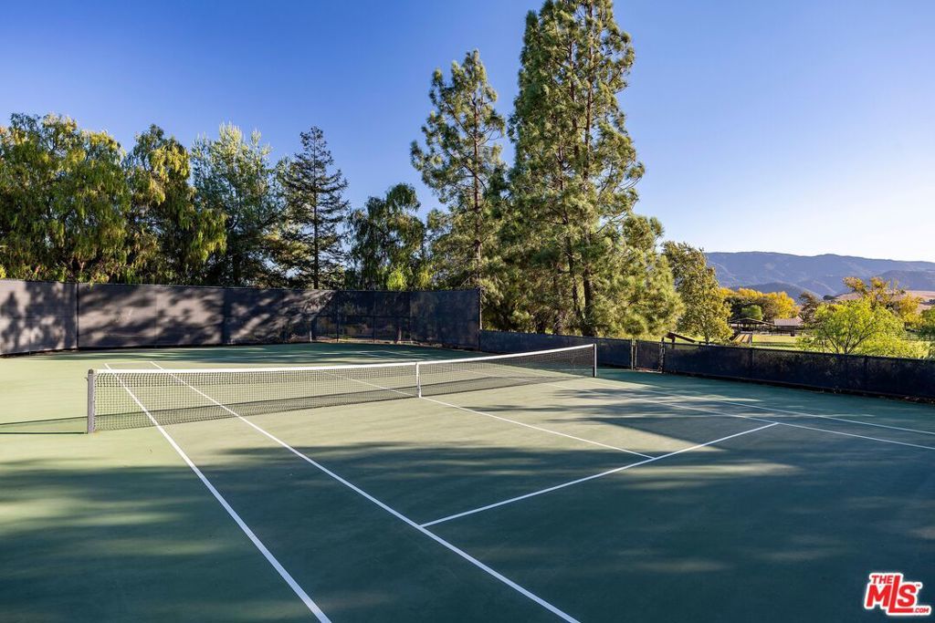 Welcome to Travelers' Farm - a rare and remarkable 116-acre estate in the prestigious Happy Canyon AVA, where world-class vineyards converge with equestrian tradition and timeless design in one unforgettable setting. At the heart of the property sits a gracious approximately 6900 square foot main residence, blending classic proportions with refined finishes: French oak floors, Calcutta Gold marble, a custom ordered La Cornue Chateau French Oven, custom cabinetry throughout, a gorgeous walk-in pantry, and spacious kitchen with an unmatched view of the Santa Ynez Mountains. A richly paneled office or study makes working from home easy and a well-appointed wine cellar awaits the wine enthusiast. Thoughtful extras like a dedicated gym and four-car garage enhance day-to-day living. Surrounding the home, a full outdoor lifestyle unfolds. A sparkling pool and spa, chef- worthy outdoor kitchen, championship-sized tennis court, and beautifully manicured landscaping offer resort-style living, all framed by sweeping mountain views and complete privacy. For equestrian enthusiasts, the property delivers on every front. From the impressive, gated entry, a drive passes through lush, irrigated pastures to high-level training and boarding facilities. These include a professional eight-stall barn with an office, employee lounge, one full bath, two half baths, kitchenette, wash racks, and tack rooms. Additional features include two barns (perfect for conversion to car storage or additional garage space), a 300 by 150 foot working arena with roping setup, covered round pen, hot walker, and expansive trailer parking. The charming manager's house has been fully renovated and offers a comfortable living area and kitchen plus four bedrooms, two and half baths, two-car garage and private setting near the equestrian center. For those dreaming of vines, approximately 40 plantable acres lie within one of California's most prestigious wine-growing regions known for its red and white Bordeaux varietals. Whether you envision creating a boutique label or simply enjoying the potential of the land, the opportunity is both rare and compelling. Located in the scenic Santa Ynez Valley, just a short drive from Los Olivos and Santa Barbara Airport, Traveler's Farm offers the perfect balance of seclusion and accessibility. Surrounded by vineyards, ranches, and picturesque towns known for their fine dining and charm, this is a place to breathe deeply, live fully, and plant roots for generations to come.