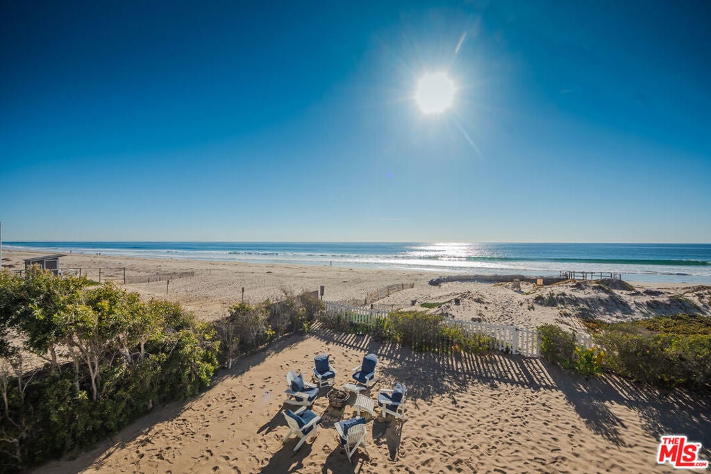 Situated on a rare 80-foot beachfront lot on Malibu's exclusive Broad Beach, this Cape Cod-style estate offers expansive ocean views and seamless indoor-outdoor living. The main residence features six bedrooms plus an office, with soaring 20-foot open-beamed ceilings, abundant natural light from skylights throughout and ocean views from most rooms. The kitchen is the centerpiece of the home, flowing into the family and dining rooms and opens to a large private ocean-view deck. The kitchen is outfitted with granite countertops, Viking appliances, three ovens, two dishwashers, and generous custom cabinetry ideal for entertaining or catering large gatherings. The house boasts two primary suites, one on each level. The main level suite includes a private oceanfront deck with an outdoor fireplace. The grand primary suite offers two custom walk-in closets and two bathrooms, one of which features a spa-like ambiance with a steam shower and a stand-alone soaking tub. Other bedrooms in the main house include an ensuite that opens to a grassy courtyard, a bedroom that opens to the beach and a full ensuite bedroom great for guests or staff. Additional amenities include a private sauna, outdoor spa, and large detached guesthouse with a full kitchen, bedroom, and 1.5 bathrooms perfect for guests and extended stays. The property also features an outdoor shower, a three-car garage, and easy access to Trancas Country Market, just a short walk away, offering dining, shopping, and more.