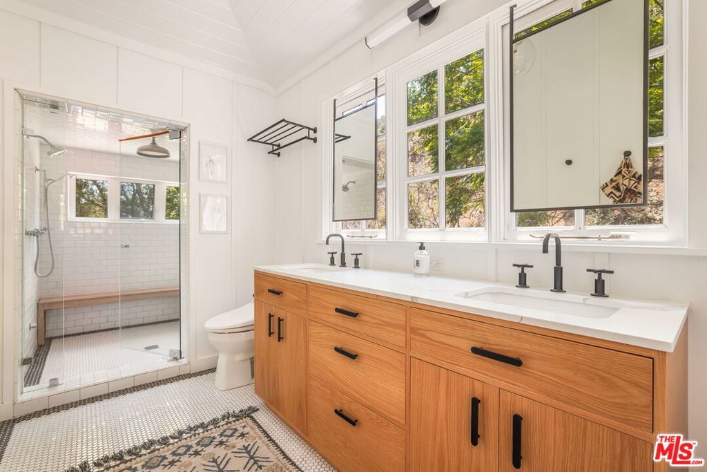 Tucked into the hills of Nichols Canyon just minutes from the Sunset Strip, this gated and fully reimagined estate offers a private, resort-style living experience in the heart of the city. Surrounded by lush gardens and mature landscaping, the home features a formal living room with fireplace, a fully renovated chef's kitchen with custom built-in banquette, and an oversized media room with theater-style surround sound. Perfect for entertaining, the living and dining areas open directly to an expansive outdoor retreat with a newly remodeled pool, spa, and curated landscaping by Studio John Sharp. The main level also includes a spacious guest suite with pool views, plus two additional rooms ideal for guests or home offices. Occupying the entire upper floor, the primary suite offers a fireplace, private patio, and a spa-inspired bath with a steam room, triple rain-head shower, and double vanity. With thoughtful design and indoor-outdoor flow throughout, 2015 Nichols Canyon is a rare, turnkey escape just moments from the best of Los Angeles.