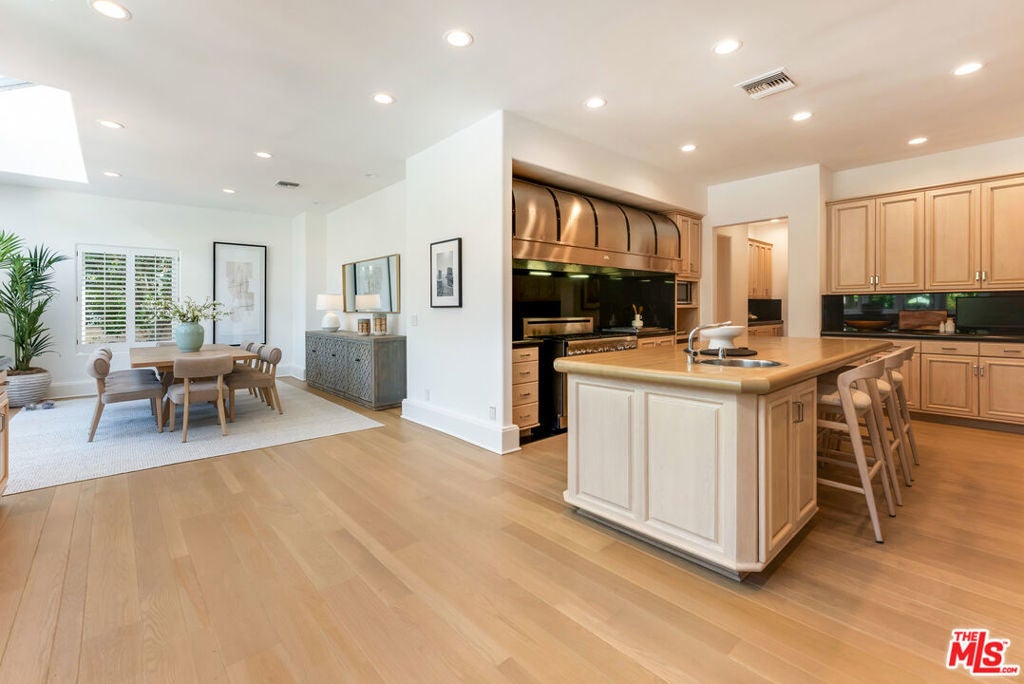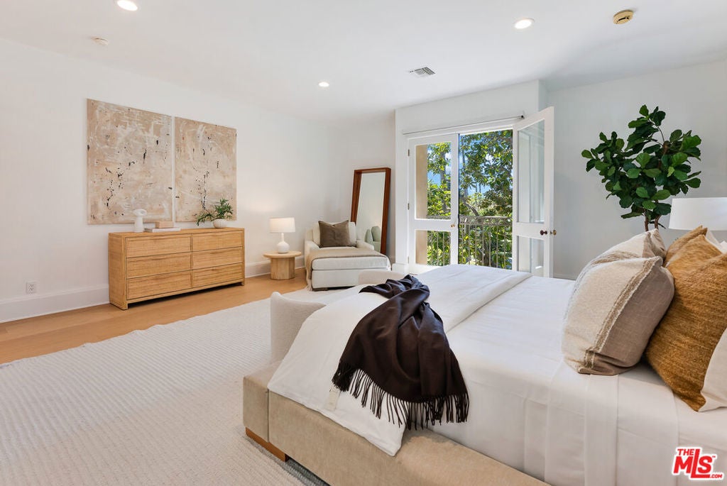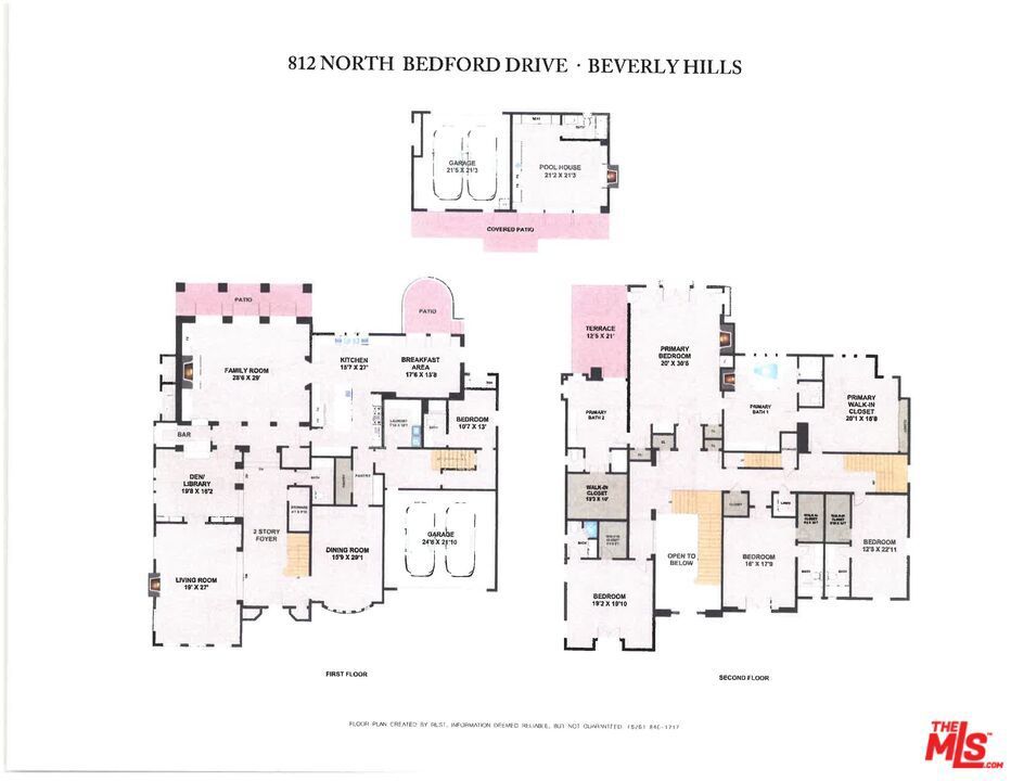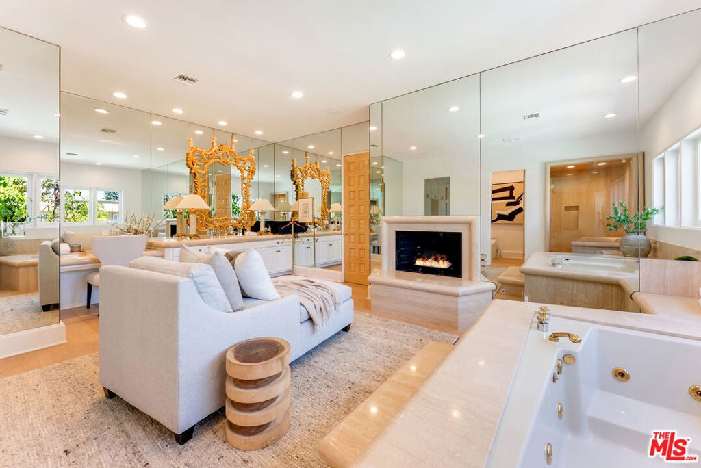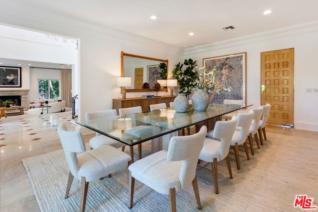 Presenting The Bedford Estate, a newly refreshed Mediterranean masterpiece in the coveted Flats of Beverly Hills. Gated and private, the striking white exterior with black trim is framed by a circular driveway, leading to an elegantly designed two-story residence of approximately 11,000 square feet on a half-acre of pristine grounds. A dramatic two-story foyer with a sweeping staircase introduces the formal living room, dining room, office, and an exceptional family room with floor-to-ceiling French doors that open seamlessly to the backyard. Wide-plank white oak floors, soaring ceilings, expansive windows, multiple fireplaces, and abundant natural light create a warm yet grand atmosphere. The chef's kitchen is a culinary dream, featuring skylights, a large center island, and an expansive informal dining area that also opens to the outdoors. The backyard is a private oasis, offering multiple seating and lounging areas, an inviting pool, and a beautifully landscaped grassy yard. A separate pool house complete with a bath provides the perfect retreat or entertainment space. Upstairs, the primary suite is truly exceptional, showcasing vaulted beamed ceilings, floor-to-ceiling windows, a fireplace, and two luxurious spa-style bathrooms each with a seating area and boutique-sized closets. Three additional upstairs ensuite bedrooms offer generous proportions, high ceilings, and refined finishes. A service bedroom is conveniently located downstairs near the back staircase. Completing the estate are two attached garages plus two additional garages accessed from the alley. This is truly a one-of-a-kind home in a one-of-a-kind Beverly Hills location.