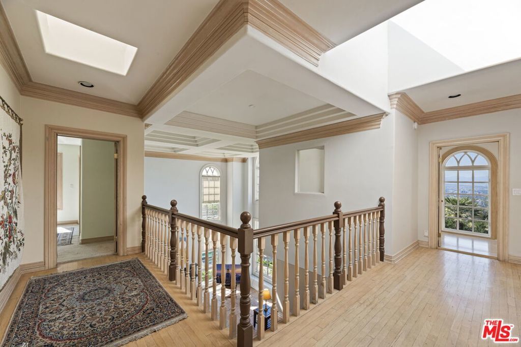 Perched on a private promontory above Mulholland Drive in prestigious Bel Air, this gated estate offers sweeping city and mountain views. Ideally located near elite private schools, the Beverly Glen Center, and providing effortless access to both the Westside and the Valley, downtown LA, and major studios, this home is the epitome of convenience and luxury.Thoughtfully designed, the spacious floor plan features 5 bedrooms and 5 bathrooms, including an extraordinary primary suite with oversized closets. Highlights include a dramatic two-story foyer, a gourmet chef's kitchen, a generous family room, a dedicated office, and refined finishes throughout.Perfect for both intimate gatherings and grand entertaining, the expansive outdoor space boasts a sparkling pool and lush, flat lawn set against the backdrop of panoramic vistas. This exceptional Bel Air retreat blends privacy, elegance, and location in one of Los Angeles' most coveted neighborhoods.