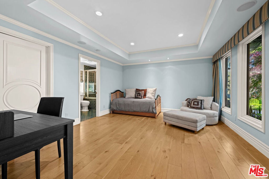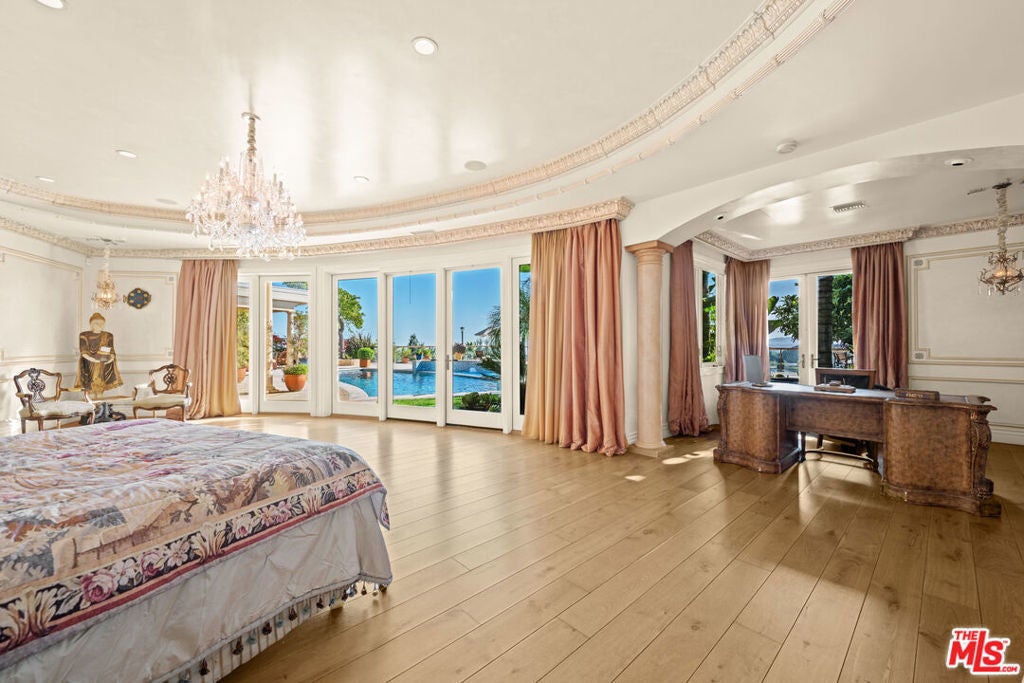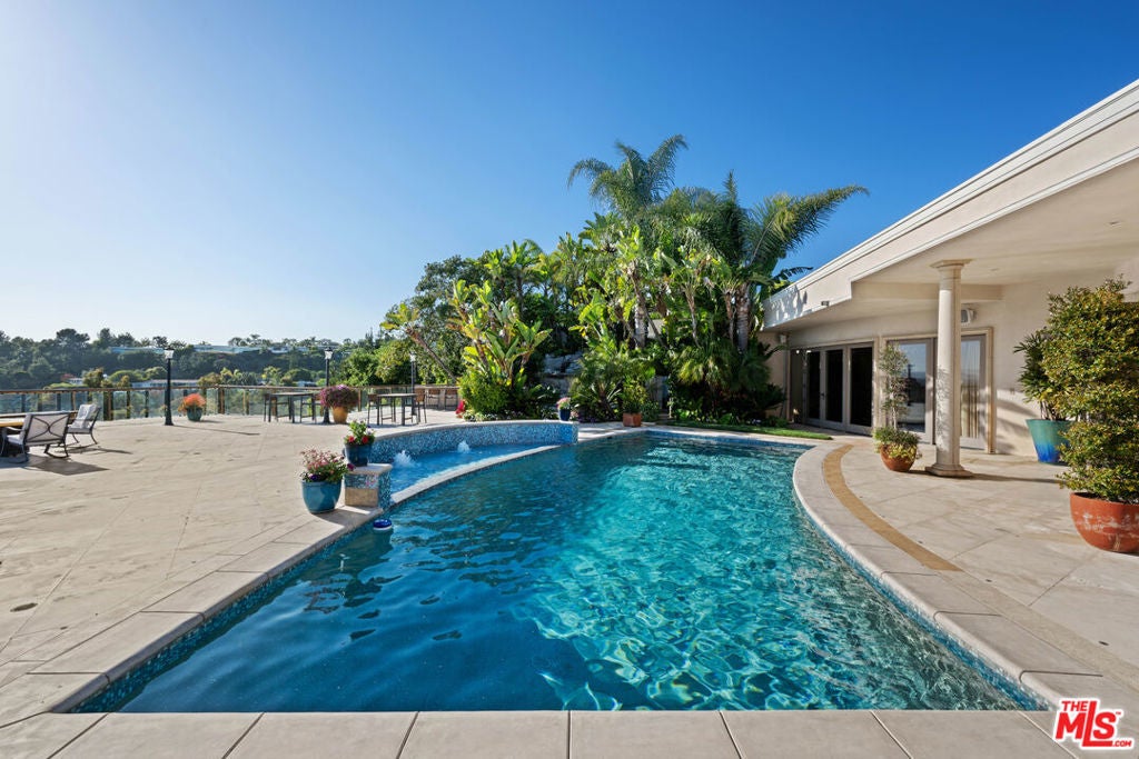 Experience luxury living in this recently renovated 5-bedroom, 5 bathroom gated Mid-Century Modern contemporary home, ideally located in prestigious Beverly Hills at Trousdale Estates. Featuring an open floor plan and soaring ceilings, the home offers breathtaking jetliner views from the city to the ocean with privacy and serenity. A formal entry leads to a spacious living room with multiple sitting areas, a sleek marble fireplace, and a stylish bar. The formal dining room and gourmet kitchen equipped with top-tier appliances and a large center island are perfect for entertaining. A bright breakfast area overlooks the pool and beautifully landscaped outdoor spaces. The home also includes expansive patios, a large entertainer's deck, an attached guest suite, and a separate lower-level 2-bedroom, 2-bath guest house ideal for guests, staff, or home office use. This one-of-a-kind lease opportunity is perfect for the most discerning tenants seeking elegance, privacy, and unmatched views.