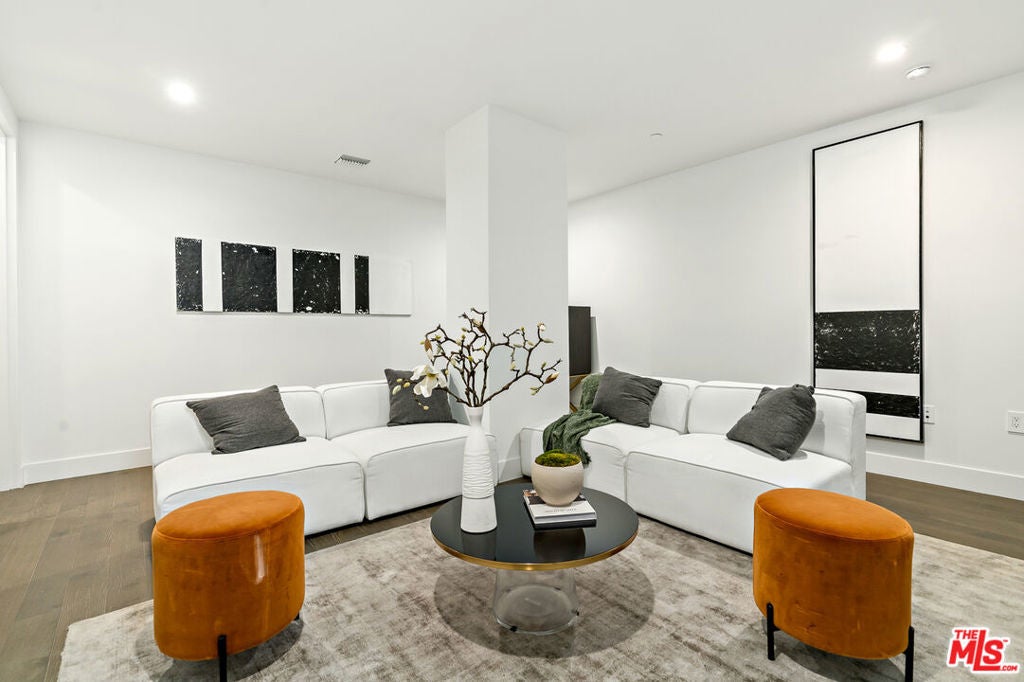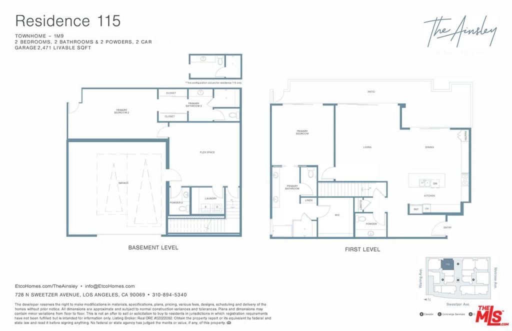 One-of-a-kind dual-level corner townhome with oversized 2-car private garage offering direct access into your residence. Spanning 2,471 livable SF with 546 exterior SF, this home features 2 bedrooms, 2 baths, 2 powders, a dedicated laundry room, and flexible lower-level space ideal for an office, gym, or media room. The expansive kitchen with island includes Snaidero Italian cabinetry and Sub-Zero/Wolf appliances, opening to a dedicated dining and living room. A large outdoor patio and formal entry create a lifestyle that feels more like a private home than a condo. Upscale, sustainable finishes include Caesarstone countertops, Italian Gessi fixtures, and Hydro Systems soaking tubs. Set on a walkable tree-lined street steps from Melrose. The Ainsley offers boutique living with concierge service, resident lounge, fitness center, yoga room, and more. Only two townhomes remain at The Ainsley.