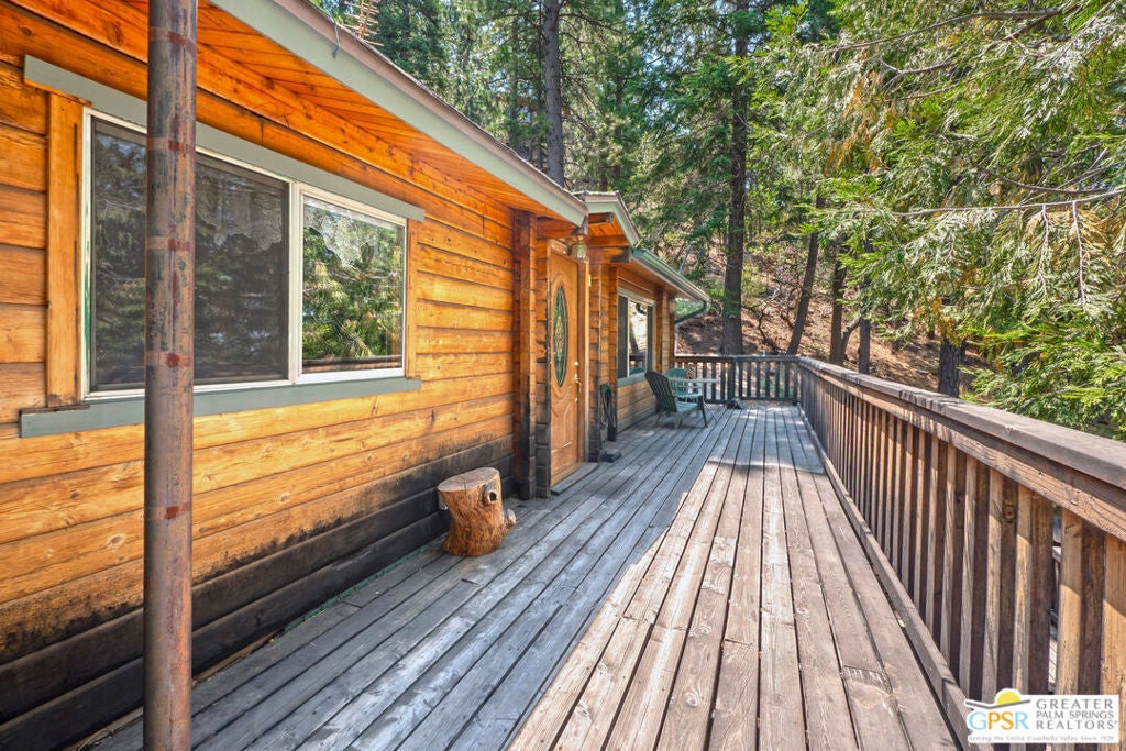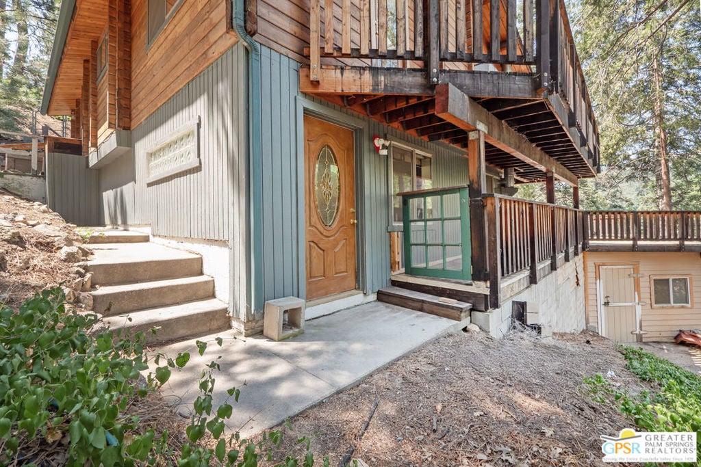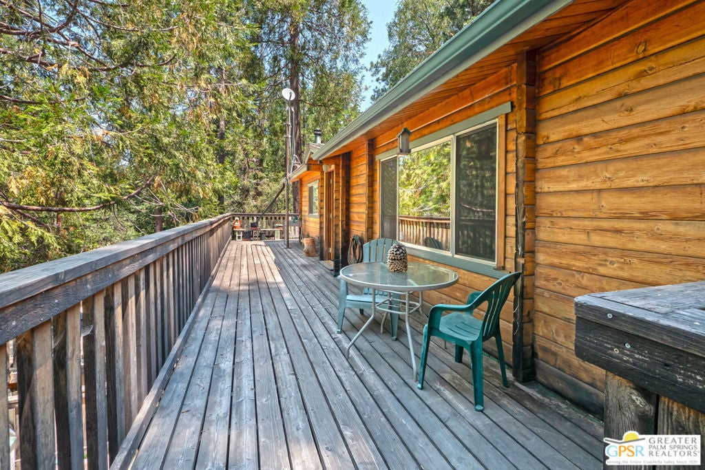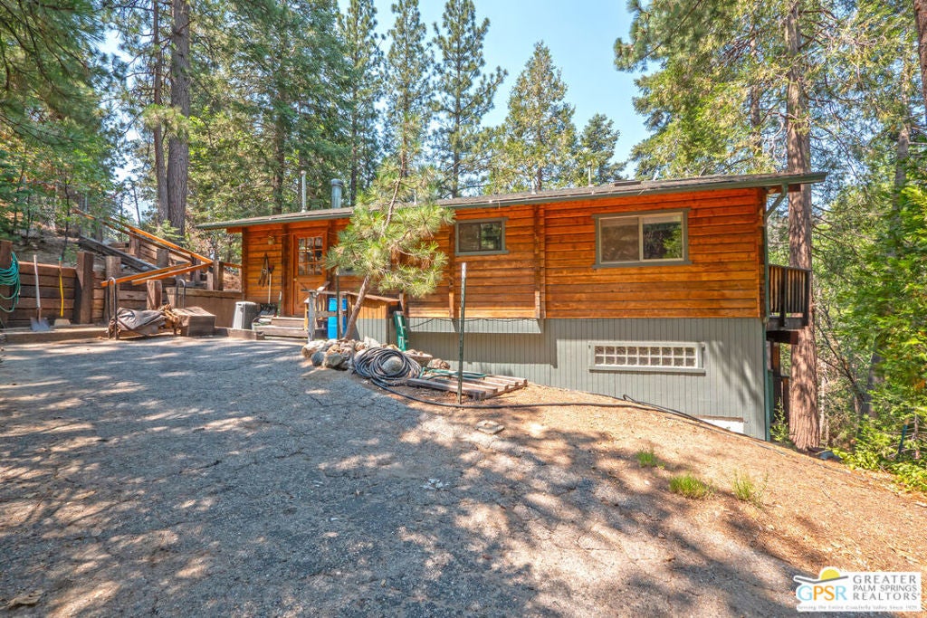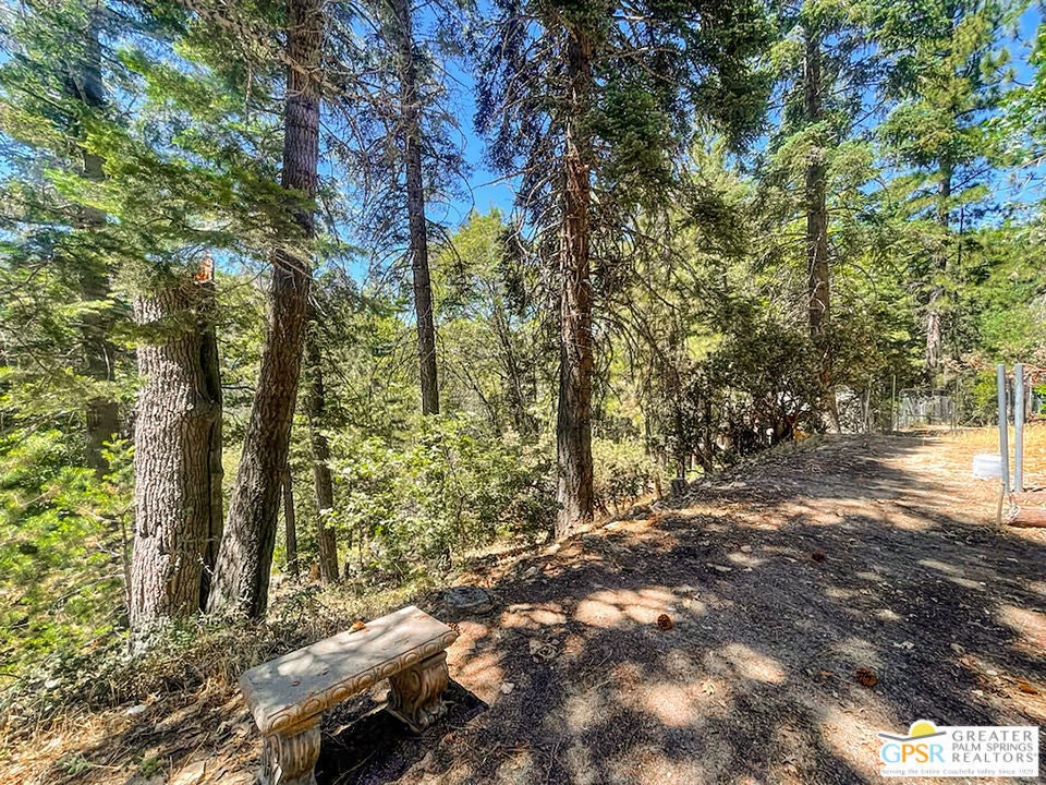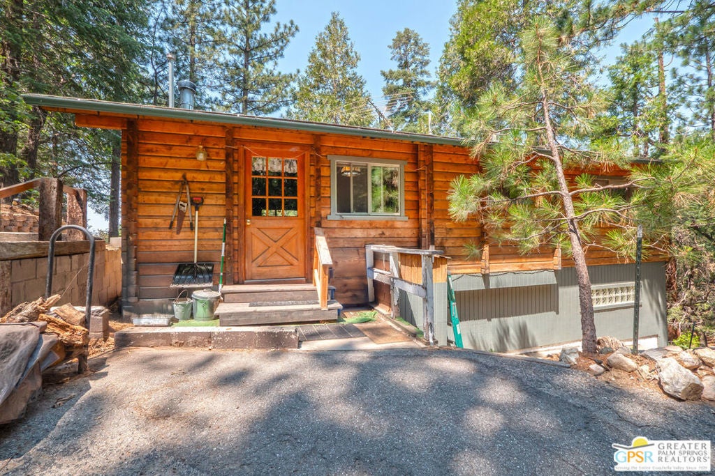 Welcome to your dream mountain home in beautiful Angelus Oaks, where you can experience all four seasons on a sprawling 42,080 sq ft lot! Nestled at the end of a cul-de-sac with two of its long driveways, this charming cabin-style home offers endless possibilities. This two-level cabin is full of character and comfort. The main level features a wrap-around upper deck perfect for enjoying the crisp mountain breeze. Imagine stepping into an inviting open floor plan, starting with a cozy living room that includes a cobblestone wood-burning fireplace, vaulted ceilings with a ceiling fan, and a kitchen area with ample cabinet space. Featuring two bedrooms with glass-mirror closets and built-in shelves, one of the bedrooms offers a skylight for additional lighting. The home also features one upgraded, beautiful marble bathroom, a tall cabinet for extra storage, and a pantry situated just off the hallway. Downstairs is a converted space, serving as a spacious 3rd bedroom, also perfect for use as a primary suite, guest room, or extra living space, complete with a walk-in closet, an additional storage closet with built-in shelves, a free-standing wood-burning stove, a ceiling fan, and tons of natural lighting. The laundry closet is also located on the lower level. Two separate entry points lead to a large lower deck ideal for entertaining or relaxing under the pines. There's even a jacuzzi hook-up ready for your future spa. Outside, you'll find a dog run and a spacious attached workshop/storage area, offering both functionality and flexibility. Enjoy the comfort of peaceful sitting areas throughout the property perfect for unwinding and soaking in the surrounding natural beauty. Ideally located just minutes from The Oaks Restaurant, The Country Store, Jenks Lake, and scenic hiking trails, with convenient access to Big Bear ski resorts and nearby towns like Redlands and Yucaipa, this mountain haven offers the perfect blend of serenity and accessibility.