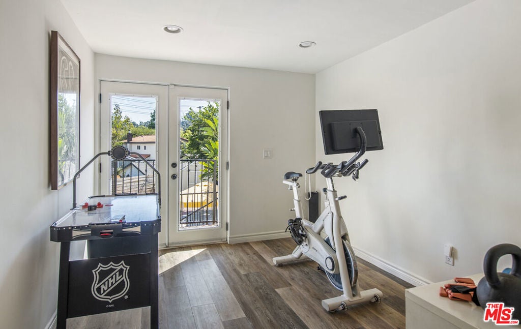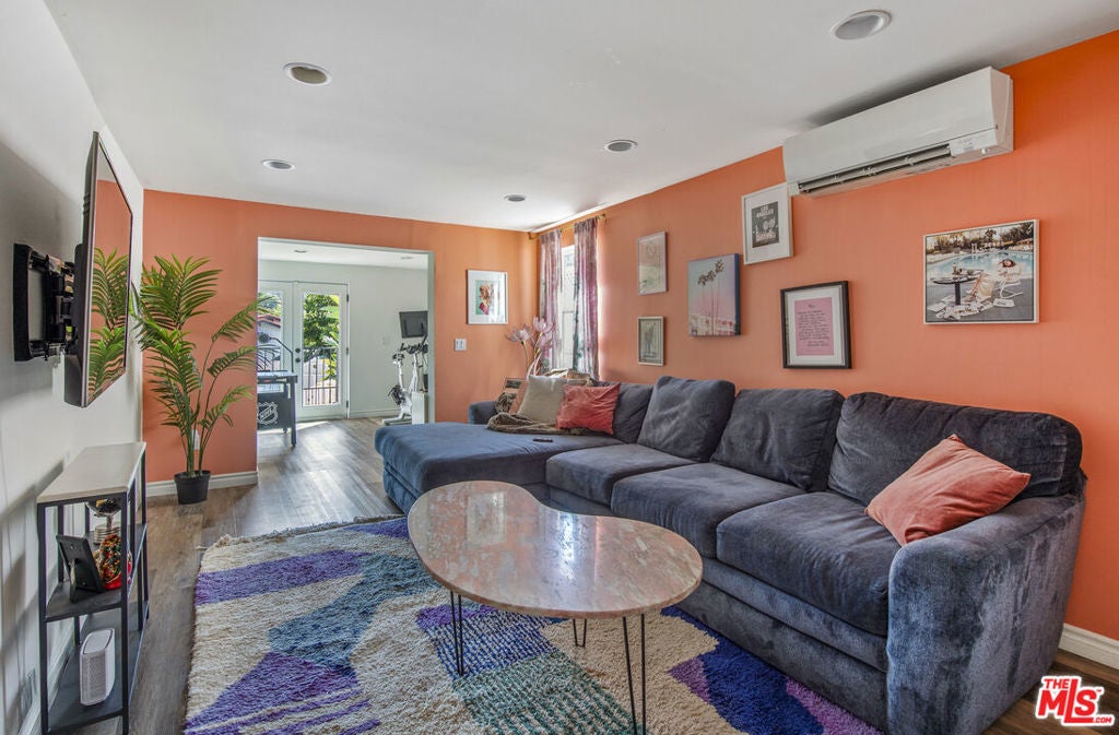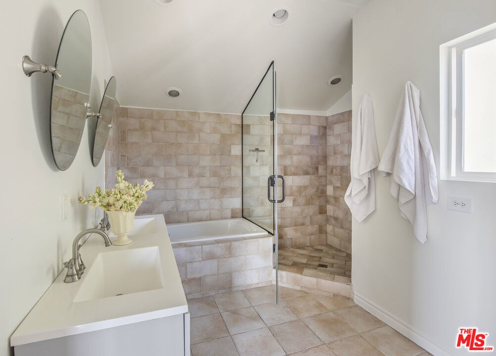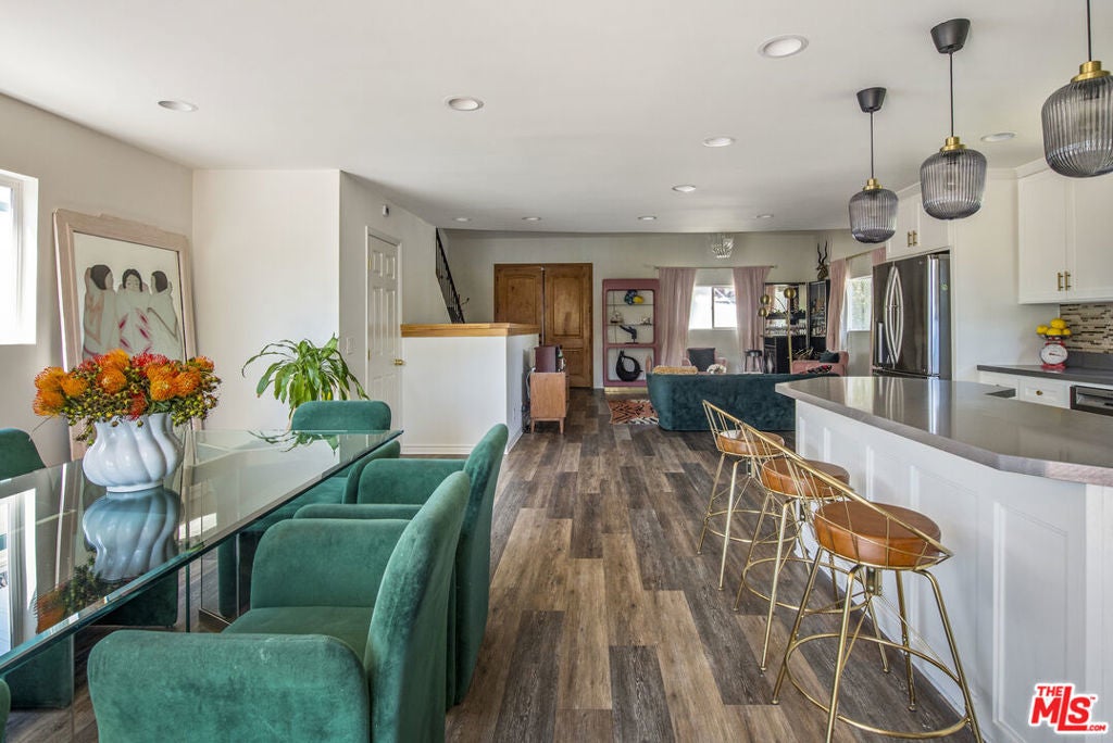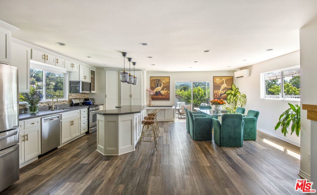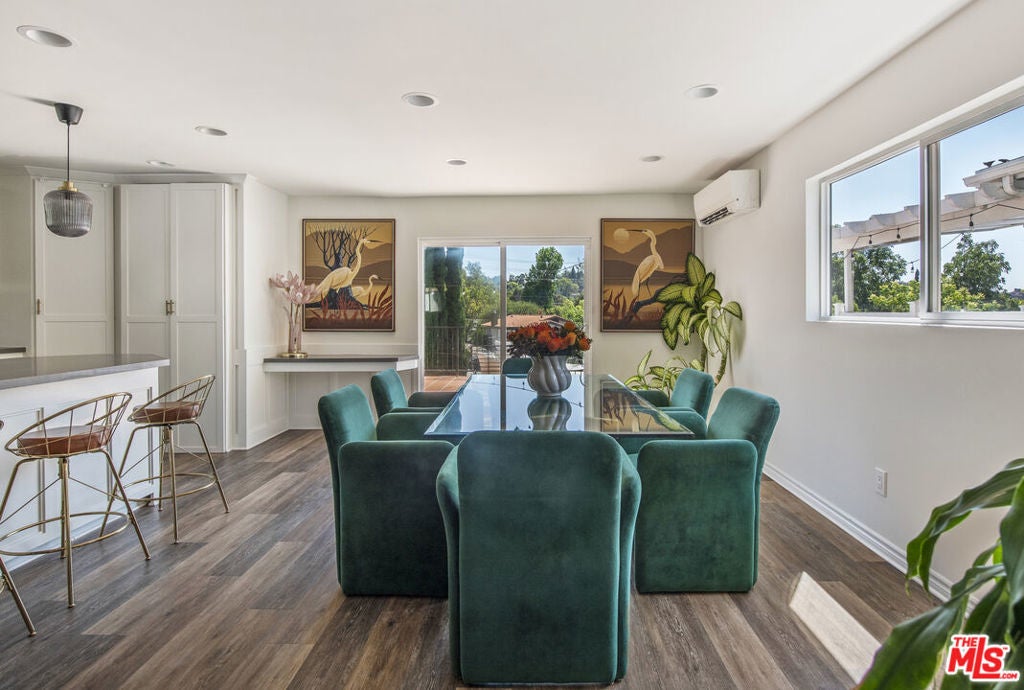 Perched high in the coveted hills of Eagle Rock, this sophisticated tri-level residence delivers privacy, drama, and sweeping skyline views. A drought-tolerant front garden leads to a shaded double-door entry, opening to soaring ceilings and a sun-drenched living room with built-ins and powder room. The newly reimagined kitchen dazzles with quartz counters, a generous island, and top-tier stainless appliances, flowing seamlessly to the dining area and expansive balcony for al fresco evenings with the city lights as your backdrop.Upstairs, the primary suite is a true retreat with its own balcony, walk-in closet, and spa-style bath featuring dual sinks, soaking tub, and glass-enclosed shower. A versatile bonus room nearby is ideal as a nursery or office. The lower level offers two additional bedrooms, a sleekly remodeled bath, and a spacious bonus room ready for a home gym, media lounge, or creative studio.Out back, an entertainer's playground awaits a sparkling pool with cabana, shaded terrace, and a lush collection of fruit trees. Multiple balconies capture the magic of indoor-outdoor California living. Just moments to Eagle Rock's prized schools, Trader Joe's, trendy cafes, and parks, this turnkey home embodies style, serenity, and location all in one.