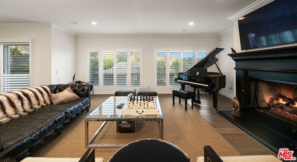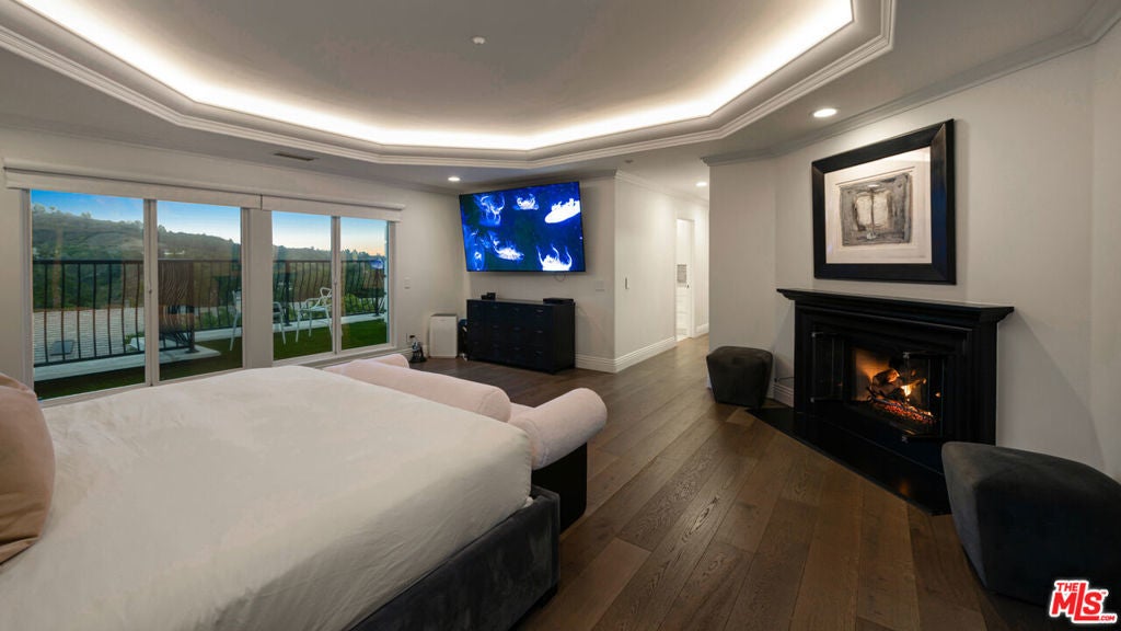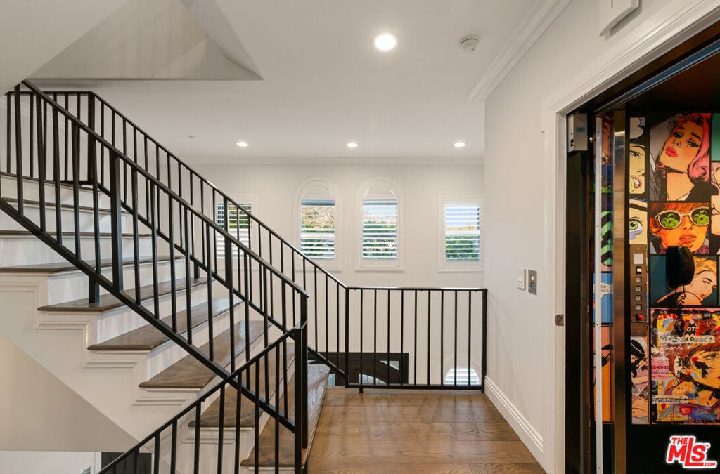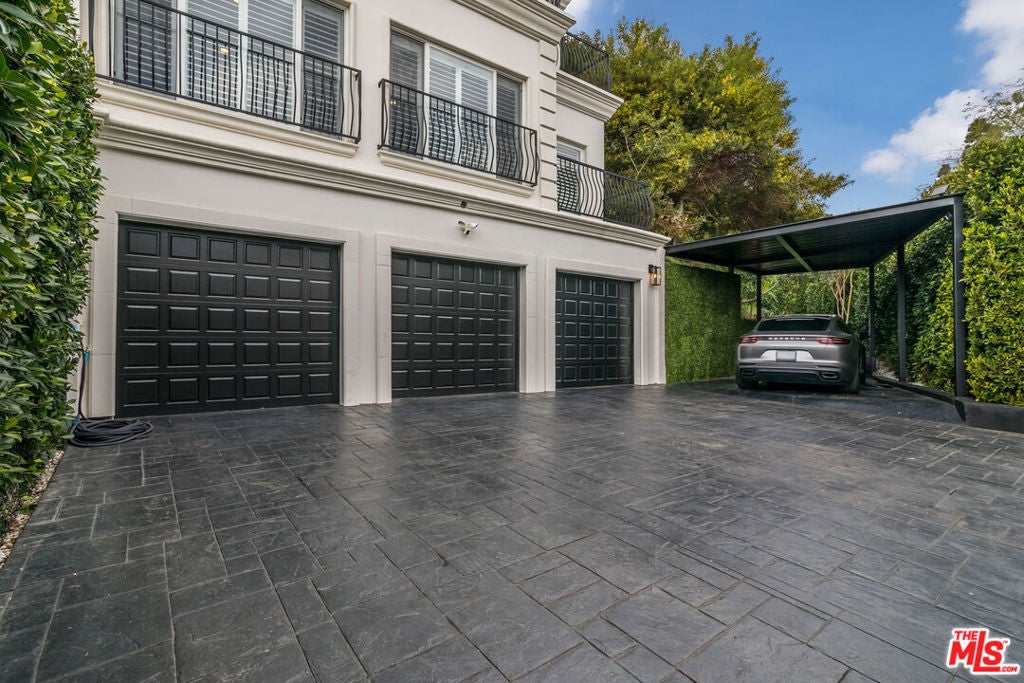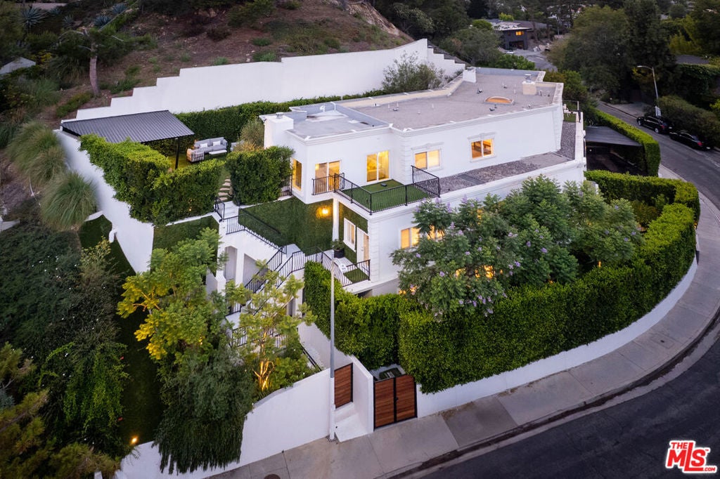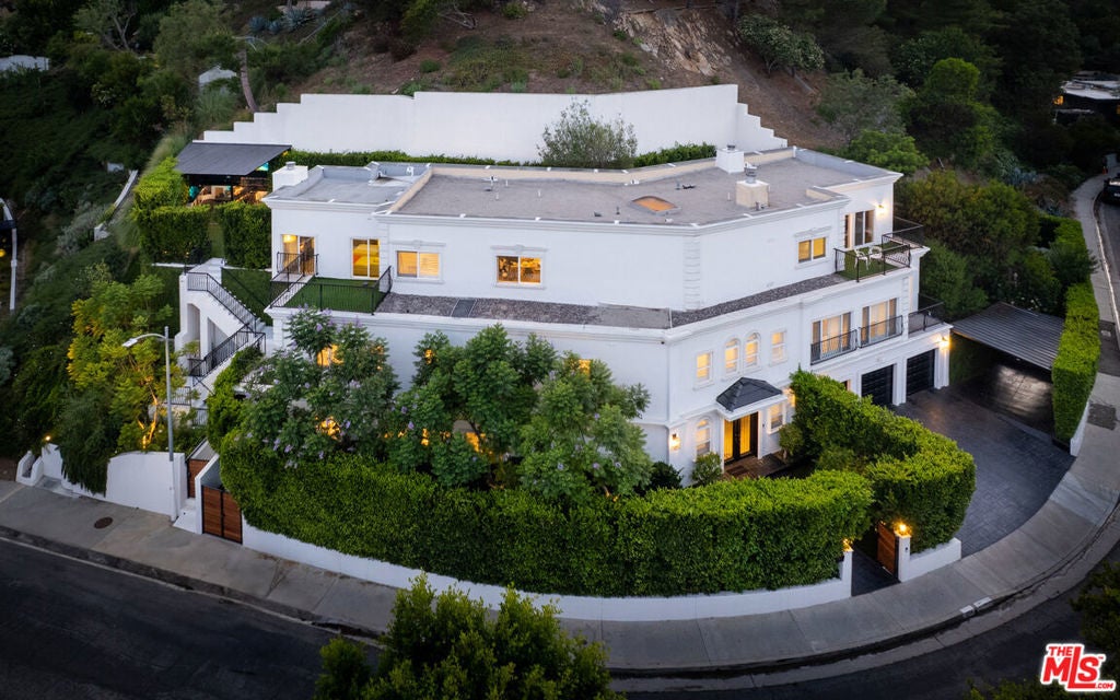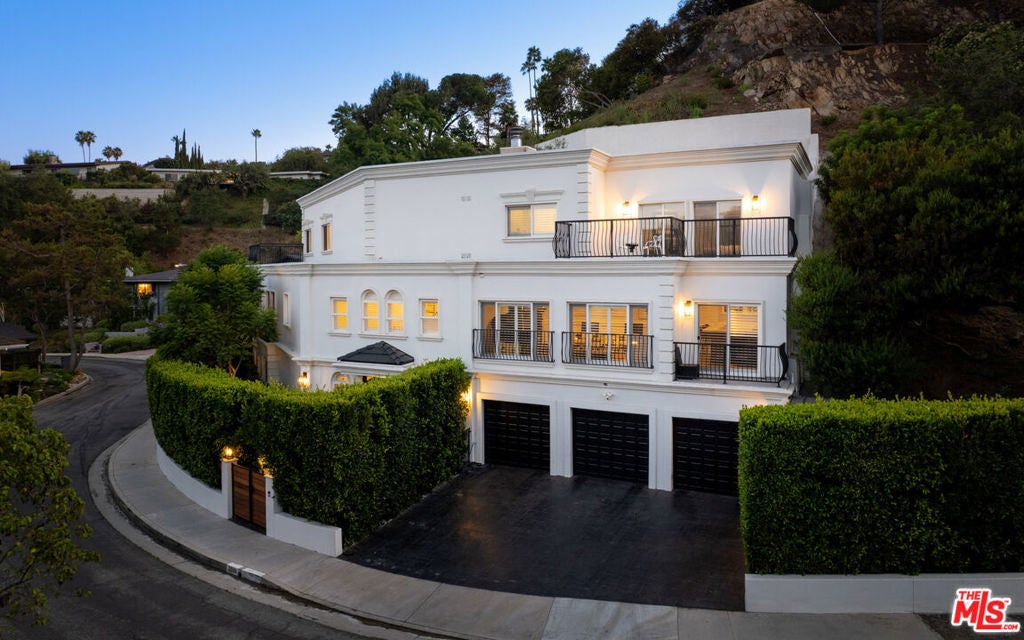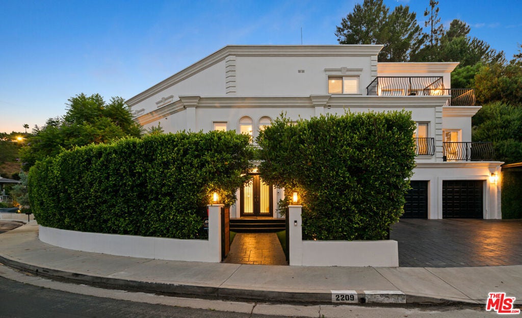 Wonderfully expansive Mediterranean-style home uniquely sited at an east-west curve on Banyan Drive in Mandeville Canyon. Three stories, with a double-height entry, 2209 Banyan boasts vast entertainment spaces, many with grand ebony-colored fireplaces, the formal living room is host to a custom-built marble-topped wet bar, elegant coving, wainscoting, and banks of modern bespoke shuttered windows. The family room with tray ceiling leads to a beautifully appointed chef's kitchen with 60" dual oven range, wine cooler, generous pull-up island, and access to outside. This bright 5-bedroom, 5-bathroom home has undergone a comprehensive list of renovations and upgrades with unmatched quality throughout; no corner of this stand-out property or grounds has been left untouched. Many of the bedrooms feature fireplaces, large closets, detailed ceilings, and walk-out balconies, some with city or mountain views. En-suite features include marble floors and vanities, as well as a combination of stand-alone bathtubs and walk-in showers. Privacy abounds in the unique tiered gardens, with vignettes that house a hot tub, red-light sauna, sheltered seating, and an outstanding pavilion over an outdoor kitchen with counter-height dining for eight and wall-mounted TV, perfect for viewing parties and sports events. Other standout features include an elevatorrecently serviced and wallpaperedan Lutron Smart lighting system (app-controlled), electronic blinds in the primary suite, and a three-car garage with Tesla charging station. This home is close to the Westridge Trailhead, a paradise for hikers and bikers alike, and is situated in a quiet, notable neighborhood of Brentwood