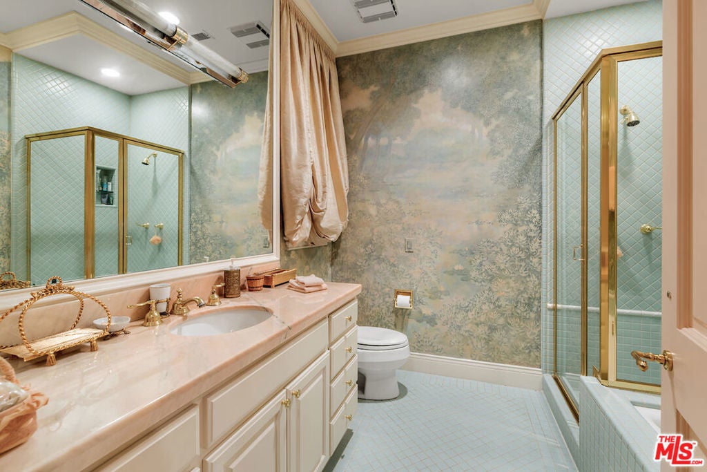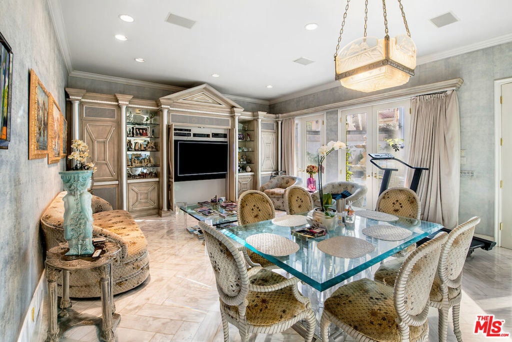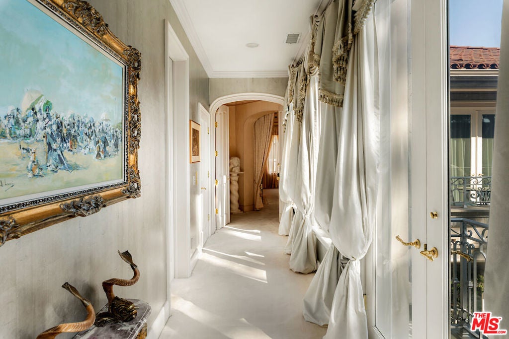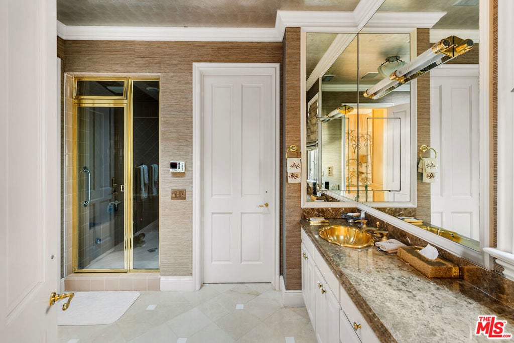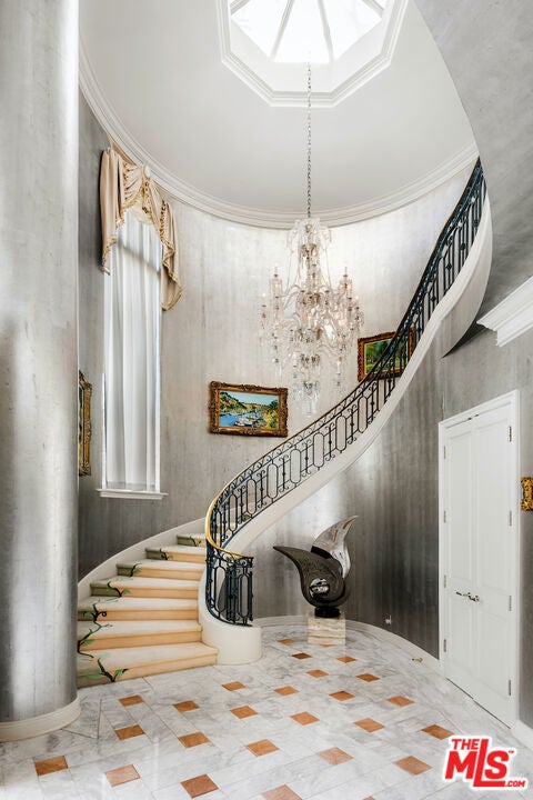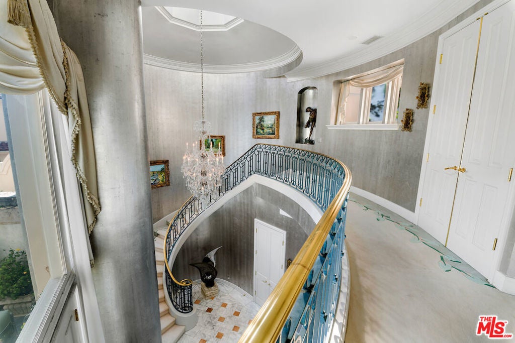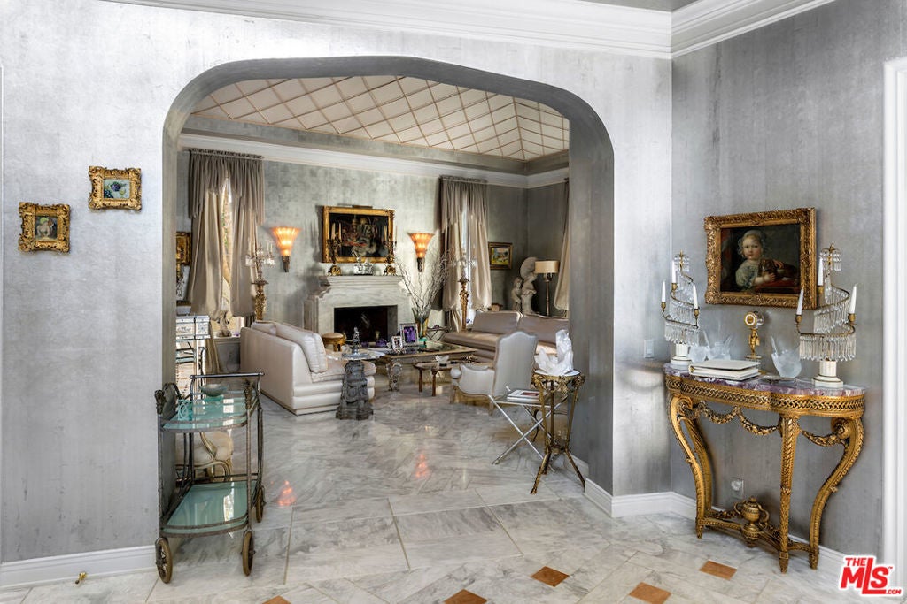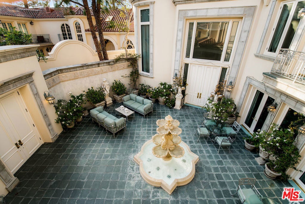 A rare offering in the prestigious, guard gated, Century Woods enclave in the heart of Century City. Spanning just over 5,600 square feet, this villa harmoniously blends traditional elegance with modern luxuries. A grand courtyard with a fountain and outdoor seating welcomes guests through double height entry doors into the formal entry with a dramatic spiral staircase as the focal point. Pristine marble floors and arched doorways are some of the many ornate designs carried throughout, displaying a fine attention to detail. A formal dining room, showcasing mirrored ceilings, and a separate den provide seamless flow into the courtyard, integrating indoor-outdoor living. The chef's kitchen is fully equipped with stainless steel appliances and an abundance of cabinetry. On the upper level, also accessible by elevator, is the primary suite complete with a balcony, marble fireplace, dual walk-in closets and dual bathrooms, including Sherle Wagner marble fixtures. Located on the other wing of the upper level are three additional guest bedrooms, all with en-suite baths plus a spacious office with its own bathroom. An attached three car garage ensures ample parking and storage. Century Woods provides all of the amenities of a five star resort including a community pool, tennis courts, a fitness center and 24 hour security while being minutes away from renowned dining and entertainment.