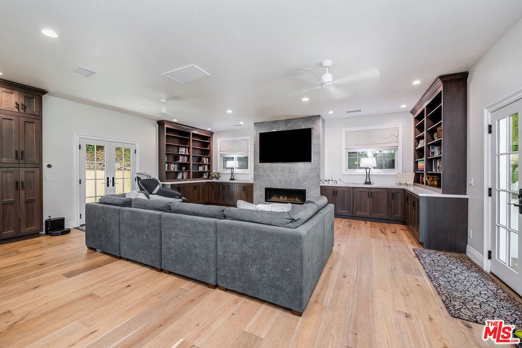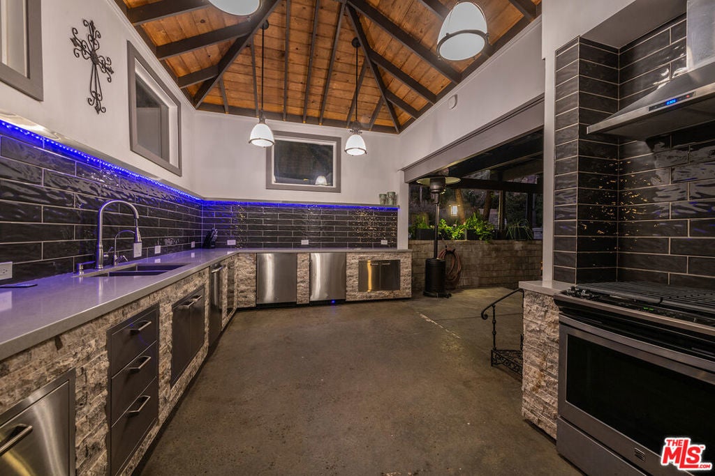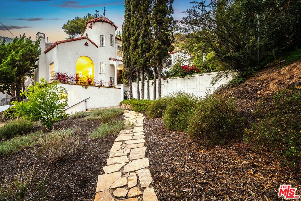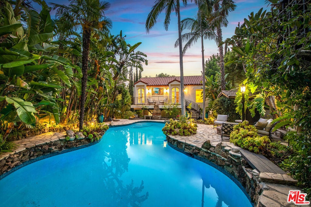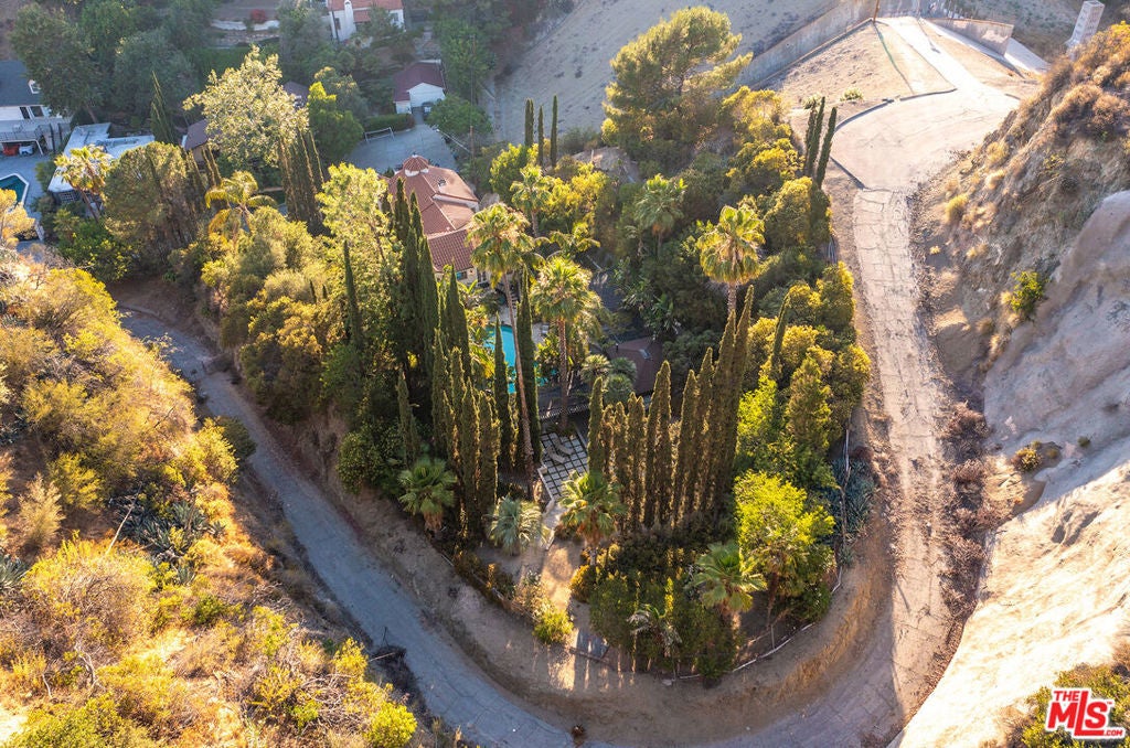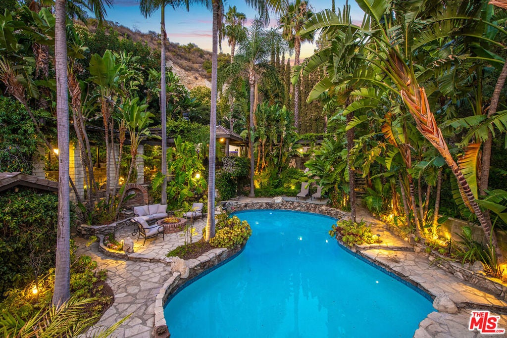 Discover your very own 1-acre private resort with this exquisite fully remodeled Mills Act 1920s Spanish-Mediterranean estate nestled at the end of a secluded cul-de-sac above Sunset Canyon. Situated on an expansive one-acre lot equipped with full acre fire shield and offering over 4,467 sq ft of elegant living space, this Mills Act-designated historical property combines timeless architectural beauty with significant property tax savings. Step inside to find grand interiors featuring an open two-story formal entry with dramatic staircase, a step-down formal living room with a soaring barrel ceiling, a large fireplace, crown molding, and wrought iron accents throughout. Natural light floods the gourmet chef's kitchen and great room, outfitted with Viking appliances, a pro-style 6-burner range PLUS 2 built-in ovens, quartz countertops, a massive island, and rich hardwood flooring. With 5 spacious bedrooms and 4 bathrooms, the layout suits both relaxing and entertaining. The romantic primary suite is a true retreat, complete with a steam shower, an oversized soaking tub, built-in cabinetry, and French doors that open to a wrought iron balcony overlooking your lush backyard. Outside, paradise awaits. Tropical, luau-inspired landscaping surrounds a sparkling pool with serene waterfalls, a fire pit, an outdoor kitchen and a covered patio, and multiple living and dining spaces all illuminated at night to create a magical private oasis. The expansive grounds include a sundeck, sports area, a three-quarter pool bath, and a large flat pad with permitted plans for an 800 sq ft ADU. Smart home upgrades, full 1 acre property fire protection shield that can be controlled remotely, full house back-up generator, 3 combined lots, and rare privacy make this an entertainer's dream and a one-of-a-kind opportunity. Located in the top-rated Burbank School District, with easy access to the 5 and 134 Freeways, this is more than a home it's a lifestyle. Come experience the rare beauty, charm, and serenity this estate offers!