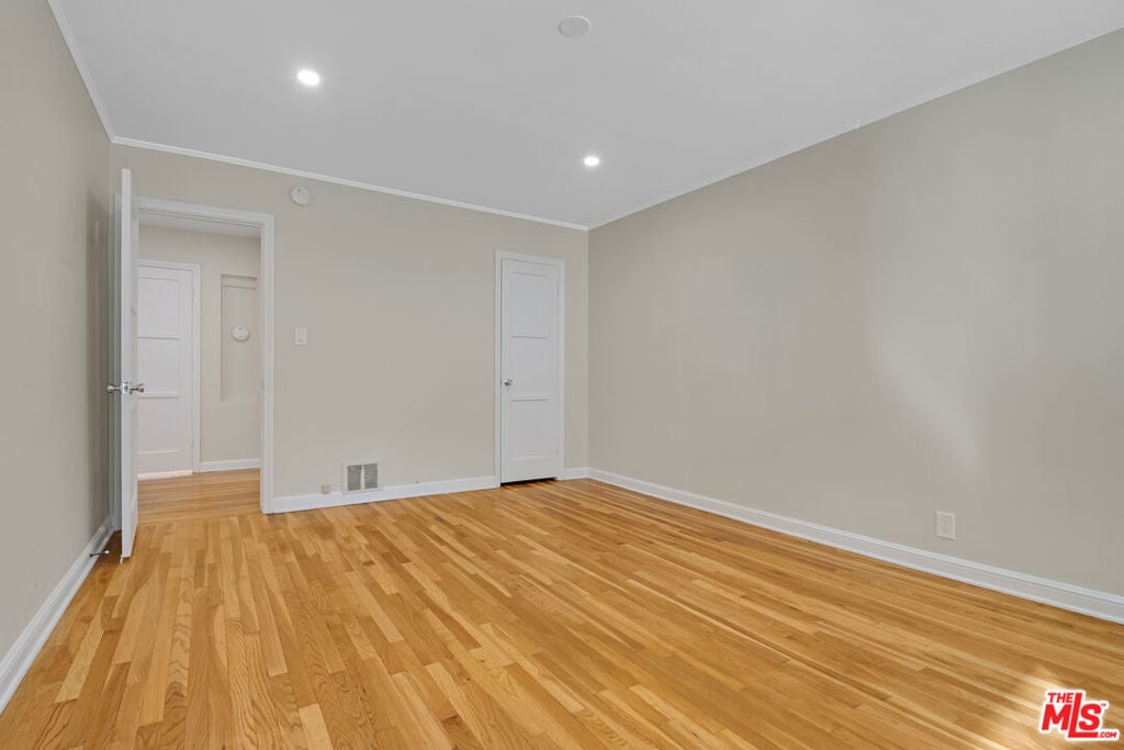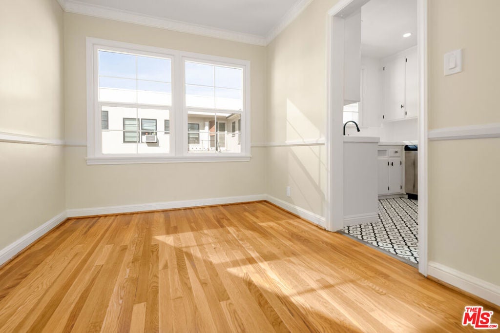 This top floor large, bright, and open 2 bedroom/ 2 bathroom unit has been newly renovated, kitchen, bathrooms, hardwood floors and three new wall unit A/C systems. Unit features ample storage and additional closet spaces! 1 car parking off the alley in carport and additional street parking by city permit. Water included in rent. Charming chateau style building, with original details inside and out, and a leafy brick gated courtyard. Laundry machines on site. Moments from Beverly Hills shopping and dining, walking distance to Century City, Westfield Mall, Beverly Hills High School and just blocks from Roxbury Park.