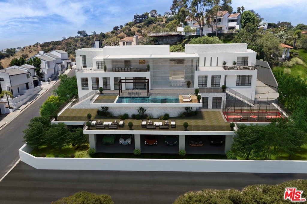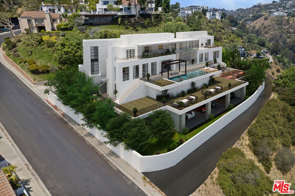 An Unmatched Opportunity to Create a Legacy Estate with Sweeping Iconic Views in the Hollywood Hills. Perched atop one of the most coveted private promontories in Los Angeles, this extraordinary 1.2-acre offering comprised of three oversized, contiguous parcels presents a truly once-in-a-generation opportunity in the heart of the Hollywood Hills. Boasting over 233 feet of street frontage and uninterrupted jetliner views stretching from Downtown Los Angeles to Catalina Island and the Pacific Ocean, this property delivers a rare combination of scale, privacy, and world-class vistas. The site is currently an expansive single-story mid-century residence offering approximately 2950 square feet of living space. Walls of glass frame breathtaking views from nearly every room, while generous interiors, a large motor court, and a resort-style pool and spa provide immediate livability and timeless architectural appeal. Whether, reimagined, or expanded, the existing home offers exceptional bones and serves as an ideal foundation for a remarkable transformation. For developers and visionaries alike, the potential is extraordinary. New construction possibilities exceed 15,000 square feet, with a rare flat pad, gentle slope, and expansive lot dimensions allowing for endless configurations ranging from a singular architectural masterpiece to a multi-structure compound complete with guest residences, entertainment pavilion, wellness retreat, and more. The wide, sidewalk-lined street is fully paved and features underground power lines, ensuring unobstructed skyline views for generations to come. Within the ultra-exclusive 90069 zip code, only 25 properties offer lots of this magnitude and none combine this level of frontage, infrastructure, privacy, and panoramic exposure. With neighboring estates already rebuilt or extensively renovated, long-term value is firmly established, positioning this property as the undeniable crown jewel of the block. Just moments above the Sunset Strip yet worlds away from the energy below, this offering is more than land it's an opportunity to create an architectural legacy. Whether restoring mid-century elegance or crafting a bold new statement, the canvas is limitless, and the views are simply unforgettable.