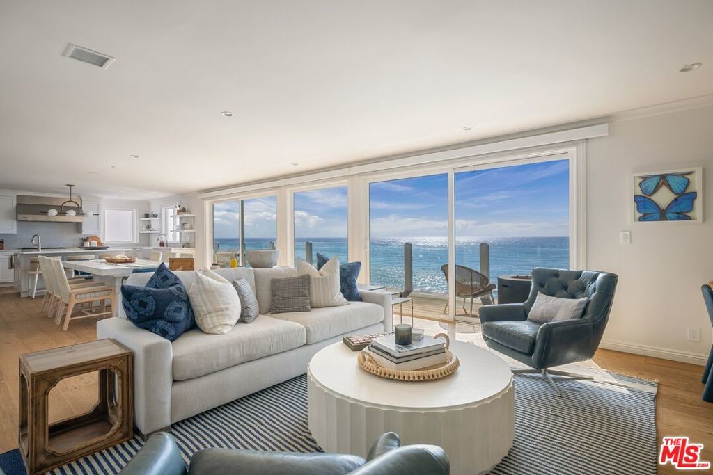 This picture-perfect, East Coast-style oceanfront estate in the prestigious guard-gated Malibu Cove Colony offers large, light-filled rooms and an impeccable floor plan designed for both comfort and elegance. A true turnkey residence, it blends timeless Cape Cod charm with the ease of Malibu beach living. Featuring 4 spacious bedrooms | 5 bathrooms, nearly every room captures panoramic Pacific Ocean views. Interiors are fully furnished with designer-selected pieces, curated artwork, and high-end finishes. Expansive glass doors create seamless indoor-outdoor living, opening to sun-drenched decks and direct beach access. Recently renovated by a renowned Los Angeles construction team, with interiors by celebrated design firm Brown Design, every detail has been elevated to the highest standard. Located within one of Malibu's most coveted 24/7 guard-gated enclaves, this rare offering combines privacy, security, and the ultimate in turnkey coastal luxury.