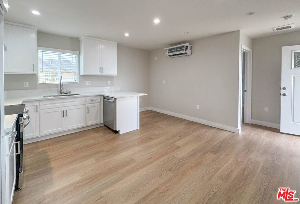 Brand-new construction upper unit featuring 2 bedrooms and 2 bathrooms, complete with in-unit washer and dryer. The open-concept layout centers around a spacious main living area, highlighted by a modern kitchen with stainless steel appliances including a stove and dishwasher a striking granite peninsula creating a seamless flow and an enhanced sense of space. Recessed lighting throughout ensures bright, consistent illumination. The hallway includes a stacked washer and dryer, as well as a full bathroom with a shower/tub combination, conveniently located near the first bedroom. A wall-mounted HVAC unit provides efficient, year-round climate control. The primary bedroom offers generous space and includes a private en-suite bathroom with a walk-in shower. All Utilities are paid by the tenant except water, 1 parking space, Pet-friendly with additional monthly pet rent.