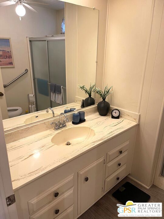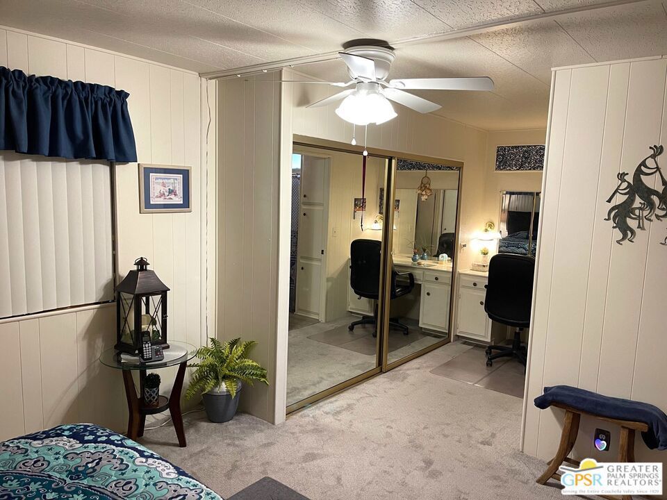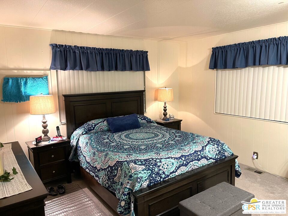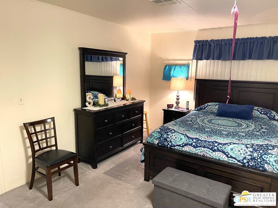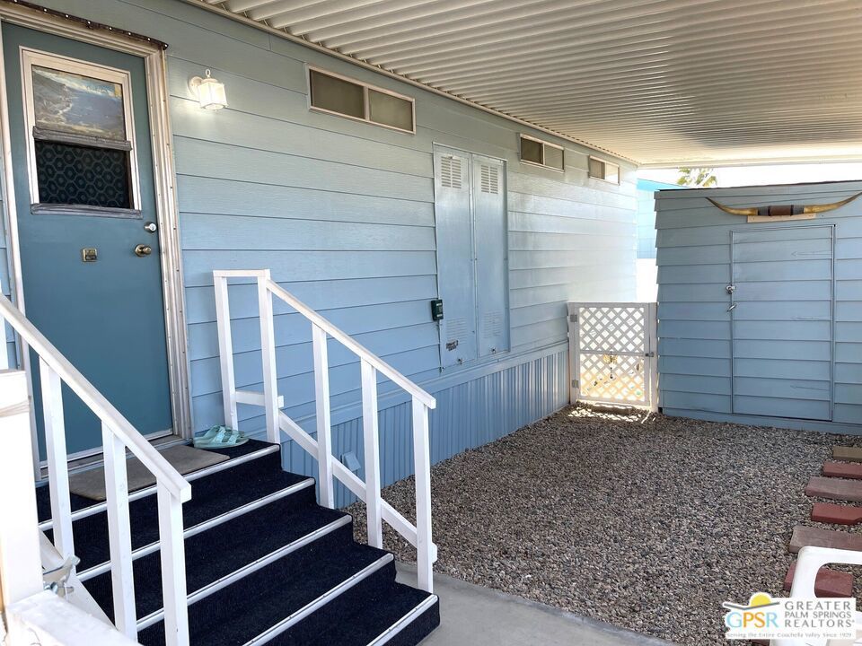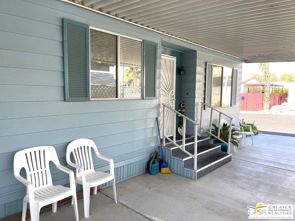 Welcome to the beautiful quaint 55+ community of Corkill Palms. This home is a beauty with several updates and it comes mostly furnished with newer quality furniture. It features 2 bedrooms and 2 baths. Both baths have newer toilets, hand rails and sink faucets. The master bedroom is quite large with attached ensuite. The kitchen features a deeper than normal sink with newer faucet making it easy for washing large items as well as a dishwasher and the gas range and refrigerator are only one year old. The living room is very spacious and wraps around to the dining area with built in China Cabinet. All windows have been tinted to help keep the summer heat out. Ceiling fans are in all rooms as well to circulate air. Several renovations have been done in the past few years. The high efficient HVAC system and Water Heater and Washer and Dryer are only 3 years old. A new fire protected foam roof with a 20 year warranty was installed a little over a year ago which will also help with energy saving. Newer carpeting in bedrooms and attractive wood laminate flooring throughout the rest of the home. There are 2 covered carports with fenced areas for your pet if you have one or for you to relax plus 2 sheds as well as a backyard area. Although this home is on fee land the land it is owed by the park owners and home owners only rent the space the home is on. Space rent is approximately $540 per month and park approval is needed before opening escrow. Buyer to verify with park manager space rent amount and any utility charge amounts passed on to home owners. Relax in the Therapeutic Natural Mineral Springs at the Clubhouse or have some fun on the putting green or in the billiard room located very close by This home is very clean and move in ready. Contact us today to set up and appointment to see this wonderful home!