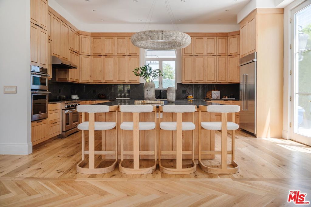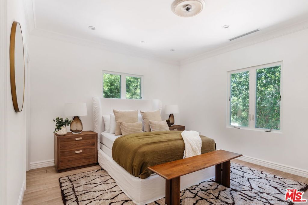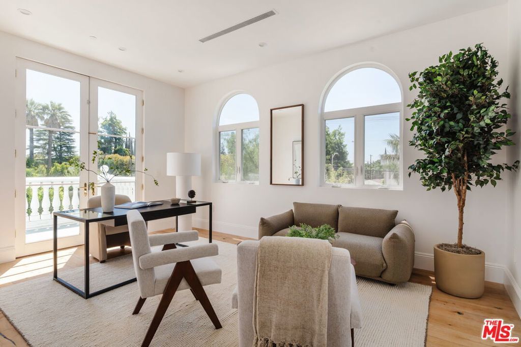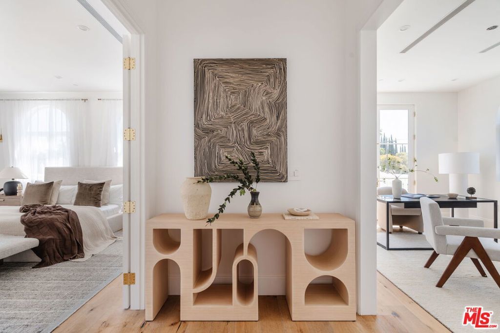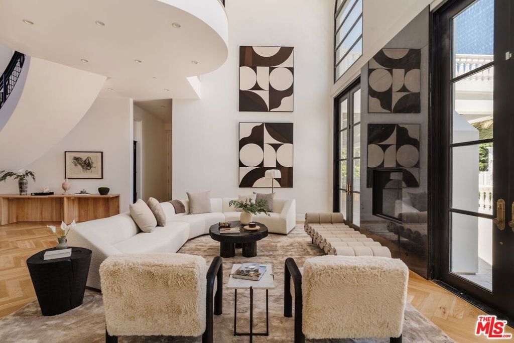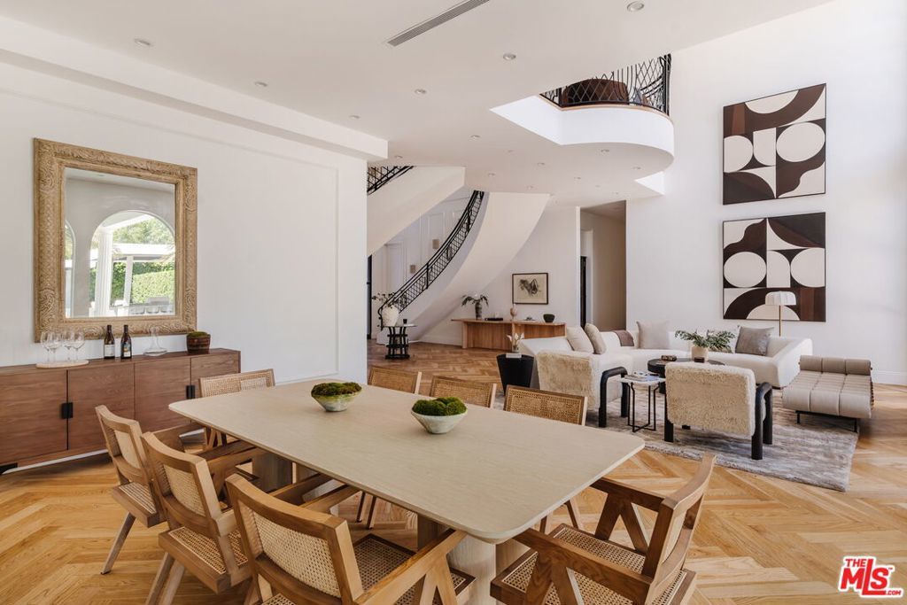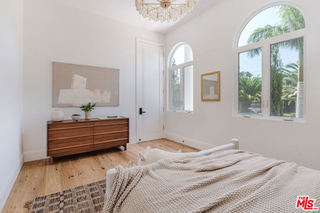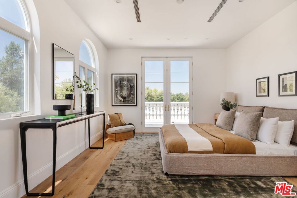 Behind double gates on nearly a flat acre, this stunning 2019-built Modern Mediterranean estate offers the scale, privacy, and elegance typically reserved for the Beverly Hills flats. With over 7,400 square feet of total living space including a detached ADU this turnkey compound was designed for luxurious living, grand-scale entertaining, and has been a highly sought-after location for film, television, and commercial shoots, generating approximately $300,000 in annual production income. From the moment you arrive, the estate impresses: a circular motor court with a stately fountain sets the stage for the dramatic double-door entry. Inside, a soaring 23-foot foyer and sweeping dual staircase create an unforgettable sense of arrival. Herringbone-patterned oak hardwood floors run throughout the main level, adding warmth and refinement. The open-concept layout includes formal living and dining rooms, a spacious great room, and a custom chef's kitchen with an oversized 8x11 island, high-end finishes, and views out to the terrace.Upstairs features three en-suite bedrooms, including a luxurious primary suite privately located in its own wing. This retreat offers a spacious bedroom, his and hers baths, dual walk-in closets, a private balcony, and an adjoining sitting room or home office ideal for relaxation, remote work, or creative pursuits. The main level also includes a guest suite, powder room, and laundry room, with a second laundry conveniently located upstairs. Step outside to a true backyard oasis designed for year-round enjoyment. A sparkling pool and spa are anchored by a full outdoor kitchen, cabana, covered dining area, fire features, and a full-size basketball/sports court. Surrounded by mature palms and lush landscaping, the outdoor areas offer privacy, scale, and the perfect setting for both entertaining and everyday living.The detached 1,190 sq ft ADU with its own address includes two bedrooms, two bathrooms, a full kitchen, living room, and private yard. Whether for guests, extended family, staff, or rental income, it adds tremendous versatility to the property. A finished four-car garage and gated driveway provide ample parking for multiple vehicles, RV, boat, or production crews.Located just minutes from Encino and the 405, this rare offering combines designer-level detail, resort-style amenities, flexible living, and substantial income potential all on a grand scale. It's not just a home it's a private compound ready to live, host, or create in.
