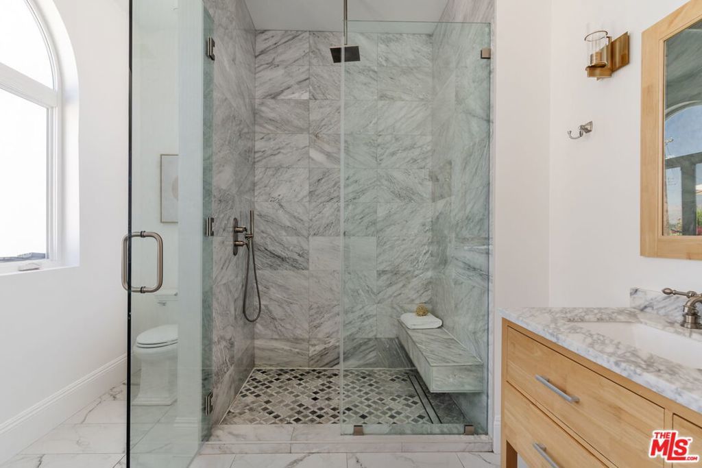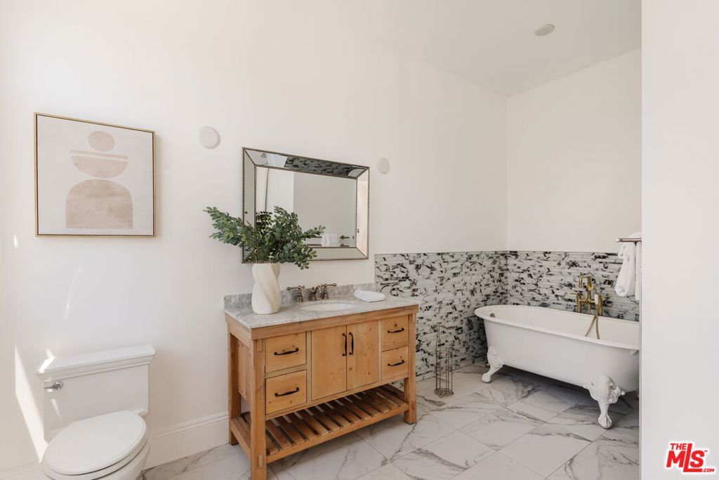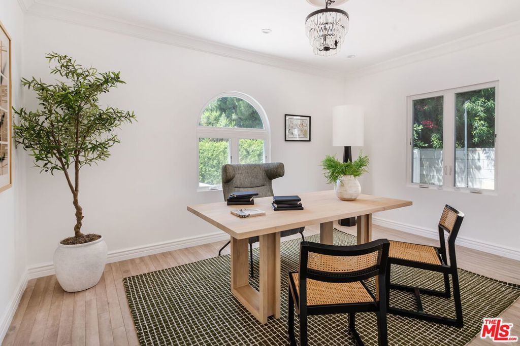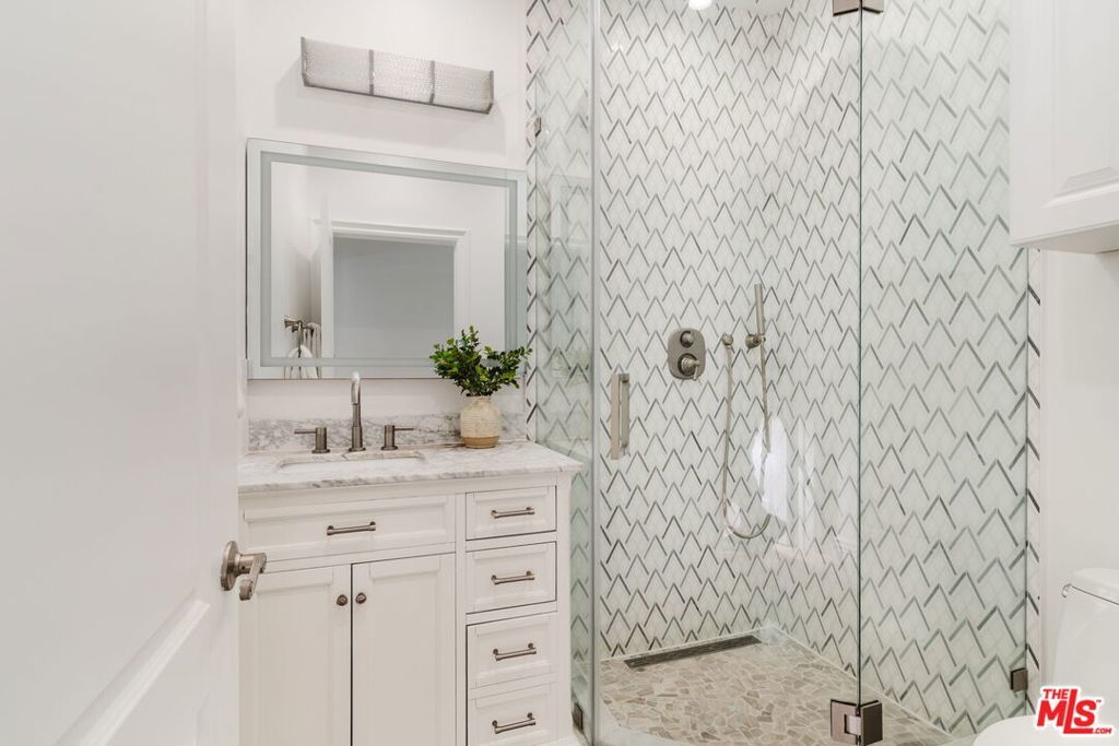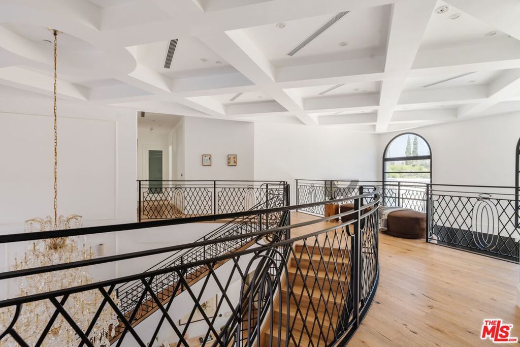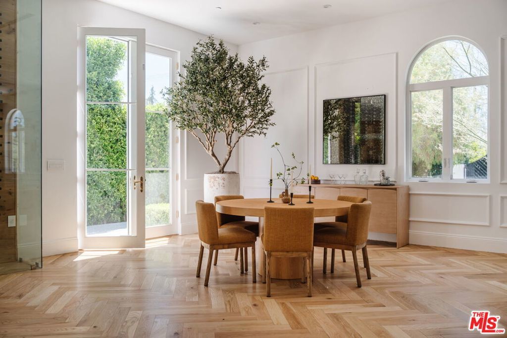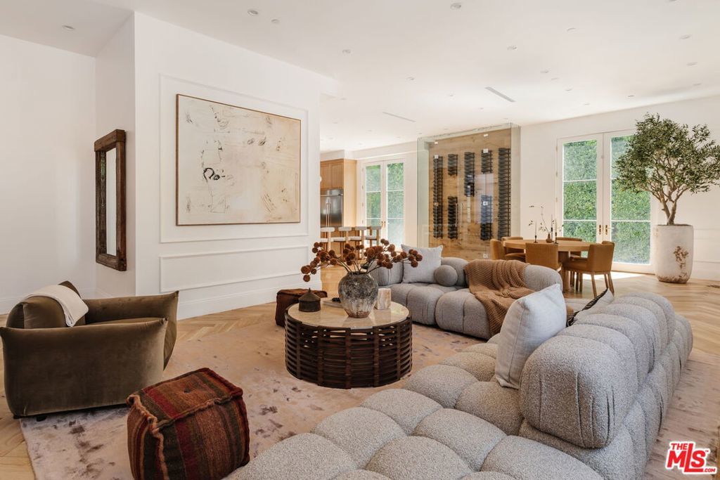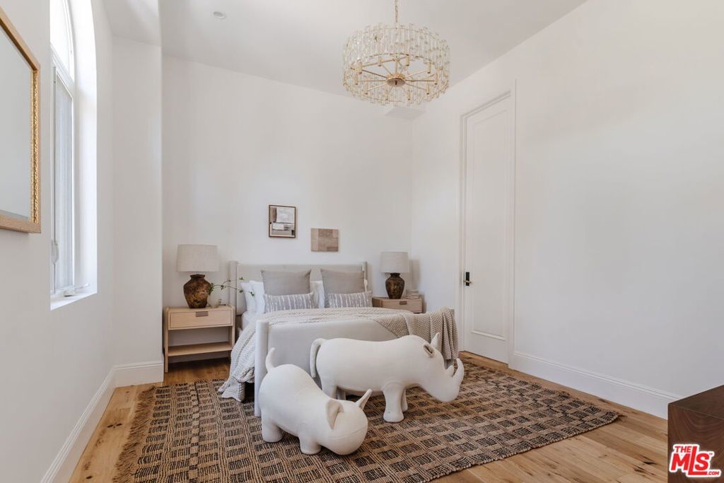 Behind double gates on nearly a flat acre, this stunning 2019-built Modern Mediterranean estate offers the scale, privacy, and elegance typically reserved for the Beverly Hills flats. With over 7,400 square feet of total living space including a detached ADU this turnkey compound was designed for luxurious living, grand-scale entertaining, and has been a highly sought-after location for film, television, and commercial shoots, generating approximately $300,000 in annual production income. From the moment you arrive, the estate impresses: a circular motor court with a stately fountain sets the stage for the dramatic double-door entry. Inside, a soaring 23-foot foyer and sweeping dual staircase create an unforgettable sense of arrival. Herringbone-patterned oak hardwood floors run throughout the main level, adding warmth and refinement. The open-concept layout includes formal living and dining rooms, a spacious great room, and a custom chef's kitchen with an oversized 8x11 island, high-end finishes, and views out to the terrace.Upstairs features three en-suite bedrooms, including a luxurious primary suite privately located in its own wing. This retreat offers a spacious bedroom, his and hers baths, dual walk-in closets, a private balcony, and an adjoining sitting room or home office ideal for relaxation, remote work, or creative pursuits. The main level also includes a guest suite, powder room, and laundry room, with a second laundry conveniently located upstairs. Step outside to a true backyard oasis designed for year-round enjoyment. A sparkling pool and spa are anchored by a full outdoor kitchen, cabana, covered dining area, fire features, and a full-size basketball/sports court. Surrounded by mature palms and lush landscaping, the outdoor areas offer privacy, scale, and the perfect setting for both entertaining and everyday living.The detached 1,190 sq ft ADU with its own address includes two bedrooms, two bathrooms, a full kitchen, living room, and private yard. Whether for guests, extended family, staff, or rental income, it adds tremendous versatility to the property. A finished four-car garage and gated driveway provide ample parking for multiple vehicles, RV, boat, or production crews.Located just minutes from Encino and the 405, this rare offering combines designer-level detail, resort-style amenities, flexible living, and substantial income potential all on a grand scale. It's not just a home it's a private compound ready to live, host, or create in.