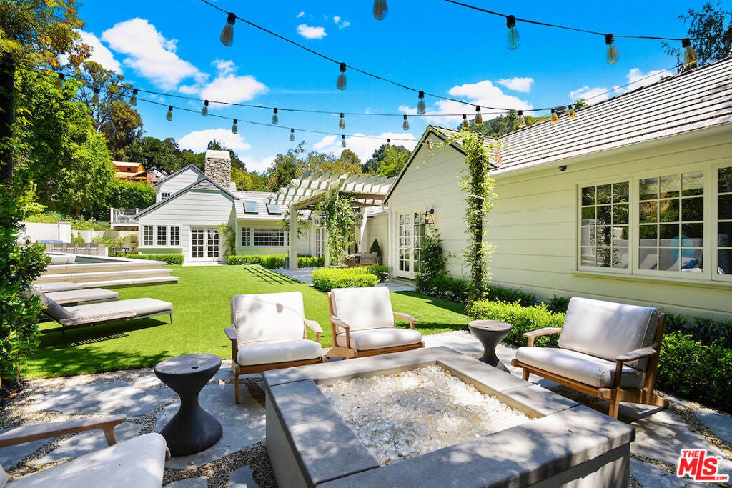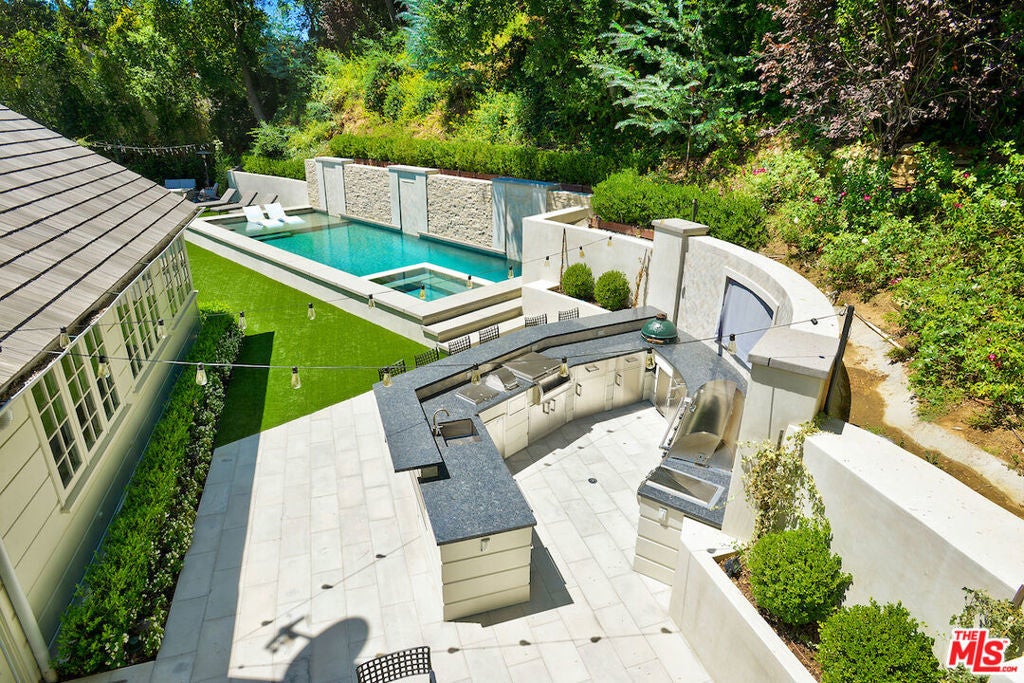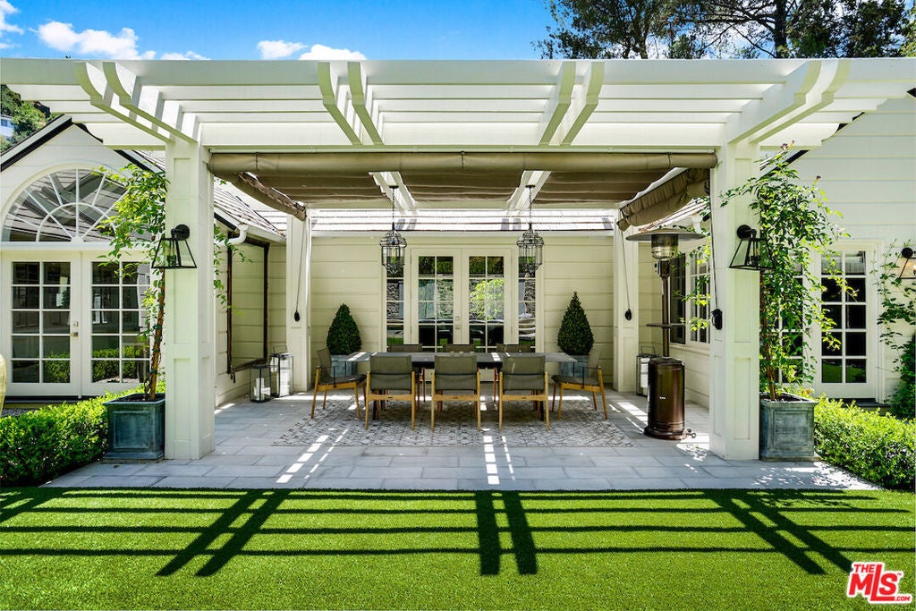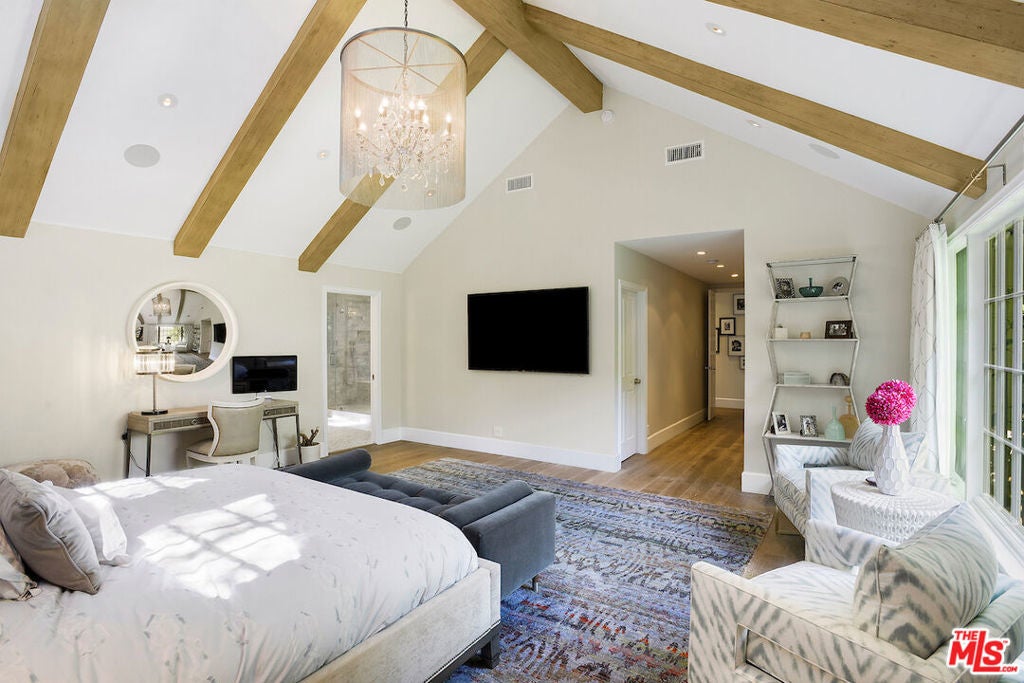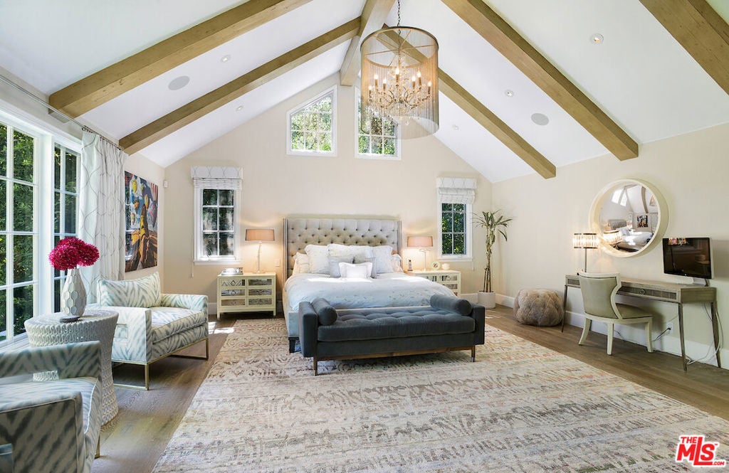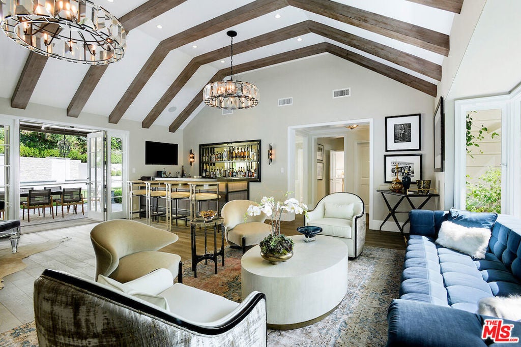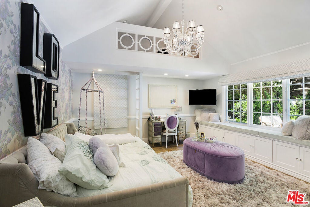 This magnificent, gated, and exceptionally rare single-story Traditional estate is nestled in the prestigious Old Hutton Drive enclave. Impeccably and tastefully remodeled throughout, the home offers total privacy completely hidden from the street by mature trees, lush landscaping, and secure gates. Designed for modern living and effortless entertaining, the open-concept floor plan features soaring pitched ceilings in the elegant living room, which includes a stylish bar and flows seamlessly to a stunning backyard oasisideal for daytime barbecues or elegant evening gatherings. Five generously sized, beautifully appointed bedrooms complement the home's spacious layout, enhanced by rich hardwood floors and abundant natural light. The luxurious primary suite features vaulted, beamed ceilings, an oversized walk-in closet an additional walk-in, and a spa-like bath. Additional highlights include a private theater, expansive yard, in-ground trampoline, sparkling pool, and multiple play areas. Located within the highly sought-after Warner Avenue Elementary School District.