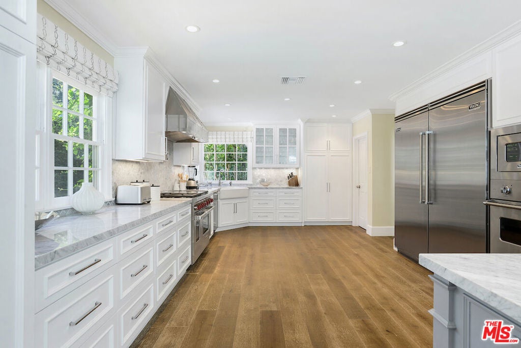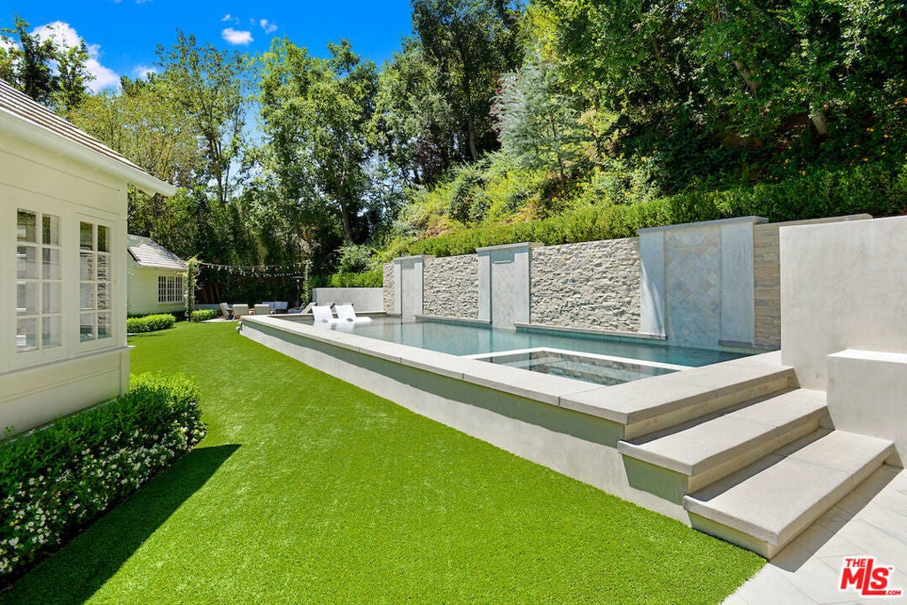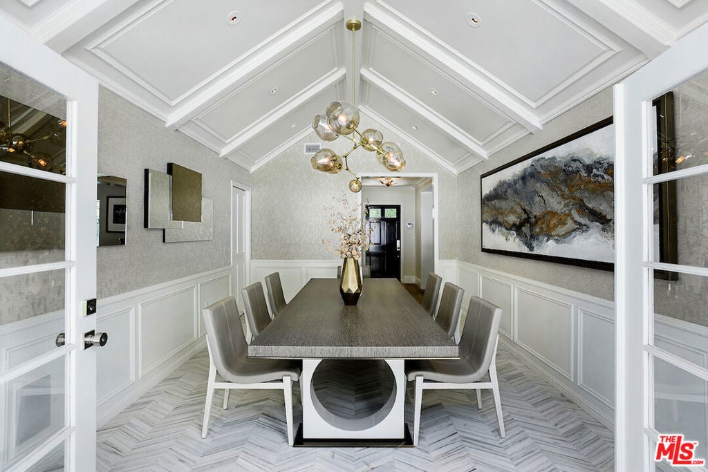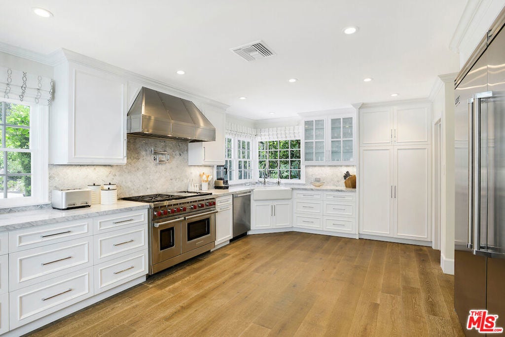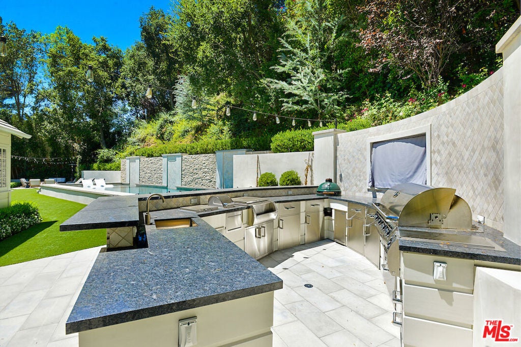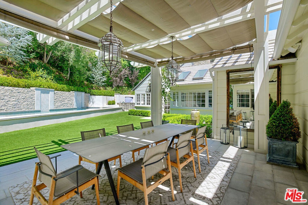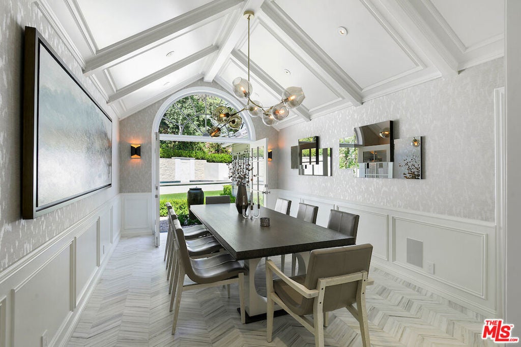 This magnificent, gated, and exceptionally rare single-story Traditional estate is nestled in the prestigious Old Hutton Drive enclave. Impeccably and tastefully remodeled throughout, the home offers total privacy completely hidden from the street by mature trees, lush landscaping, and secure gates. Designed for modern living and effortless entertaining, the open-concept floor plan features soaring pitched ceilings in the elegant living room, which includes a stylish bar and flows seamlessly to a stunning backyard oasisideal for daytime barbecues or elegant evening gatherings. Five generously sized, beautifully appointed bedrooms complement the home's spacious layout, enhanced by rich hardwood floors and abundant natural light. The luxurious primary suite features vaulted, beamed ceilings, an oversized walk-in closet an additional walk-in, and a spa-like bath. Additional highlights include a private theater, expansive yard, in-ground trampoline, sparkling pool, and multiple play areas. Located within the highly sought-after Warner Avenue Elementary School District.