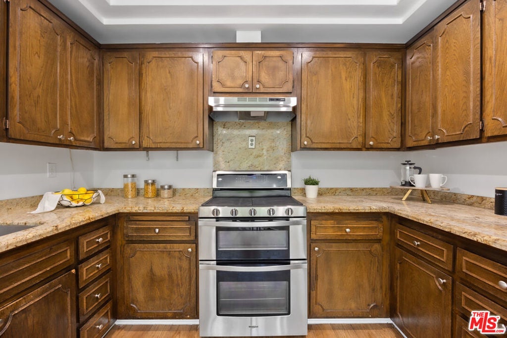 Welcome to 5432 Fulton Avenue a meticulously updated single-level home nestled on an expansive 12,555 sq ft corner lot, just minutes from the best of Sherman Oaks. Spanning approximately 2,000 sq ft, this light-filled residence seamlessly blends timeless charm with contemporary style, offering the perfect canvas for modern family living and entertaining. Step inside to discover three spacious bedrooms, including two primary suites one featuring a walk-in closet and a luxurious ensuite bathroom. The inviting floor plan showcases multiple living and dining areas, hardwood floors, recessed lighting, and an abundance of natural light through oversized windows and French doors. The kitchen features a sunlit breakfast nook, ample storage, and direct flow into the main living spaces, ideal for gatherings both big and small. Dual fireplaces provide cozy focal points in both the living and dining rooms, adding warmth and architectural interest. Outdoors, the magic continues with a lushly landscaped backyard that offers a full-size sport court, built-in trampoline, and a generous lawn perfect for play, pets, or entertaining under the California sun. This turnkey gem offers a rare opportunity to own a fully usable lot in one of the Valley's most desirable neighborhoods. Whether you're upsizing, relocating, or planting roots, 5432 Fulton Ave is ready to welcome you home.