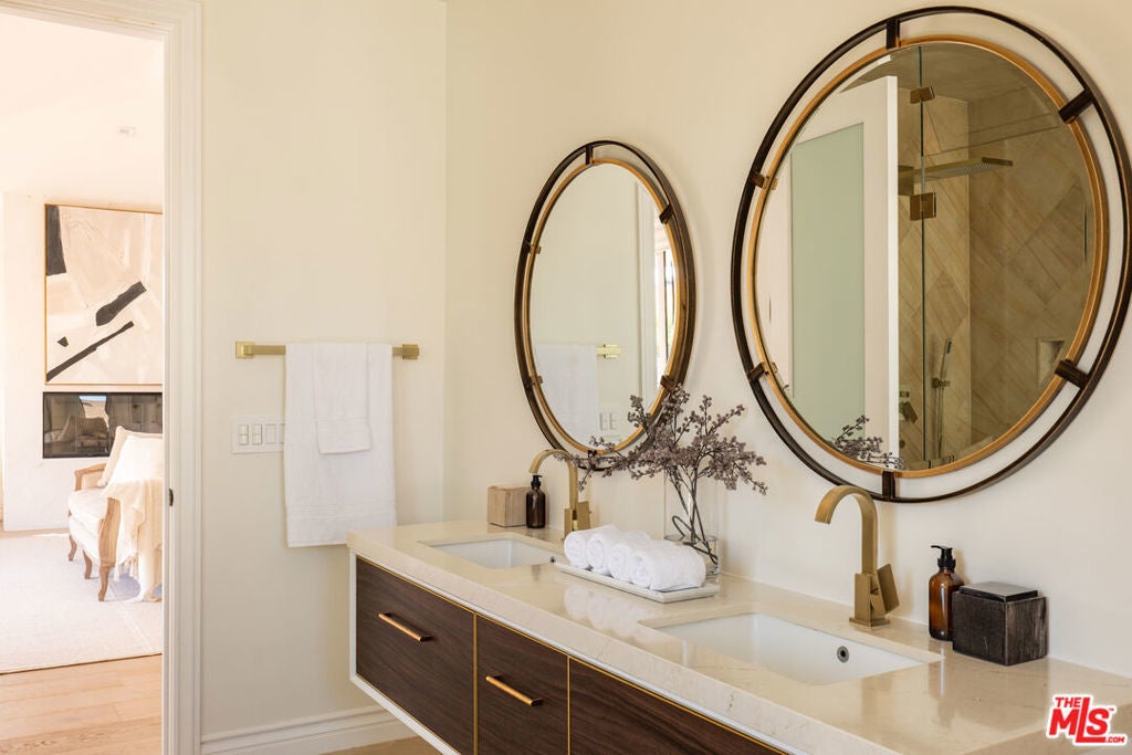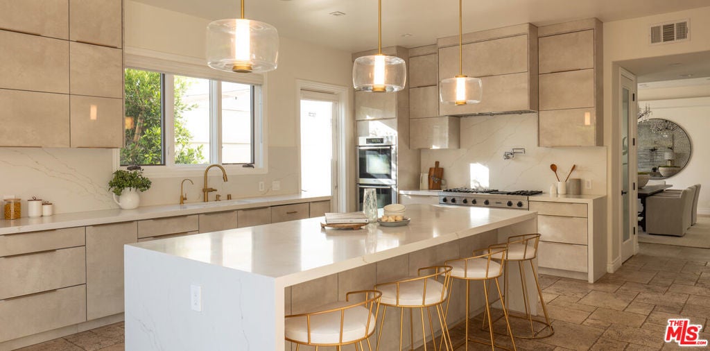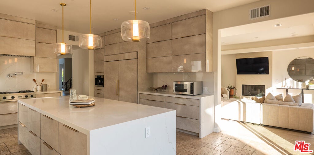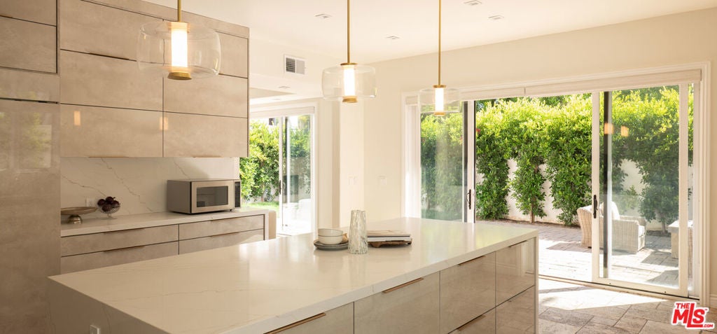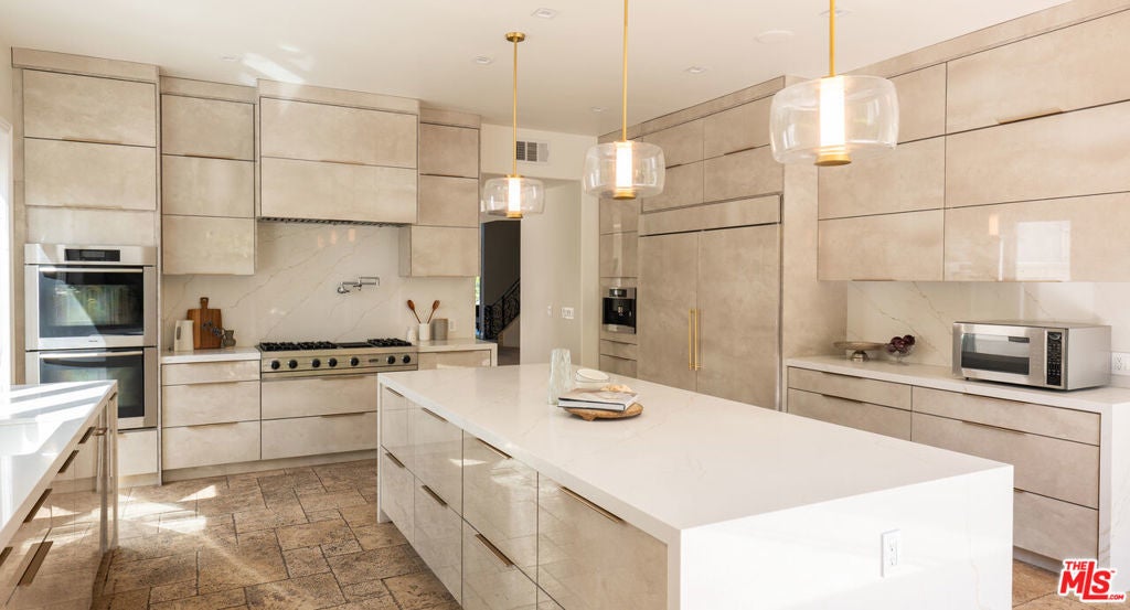 Located in prime Brentwood north of Wilshire, 1113 Amherst Avenue is a turnkey luxury home offering exceptional scale, style, accessibility, and walkability. Nearly 5,000 sq ft and fully remodeled in 2024, it feels even larger thanks to soaring ceilings, natural light, and a modern, thoughtful layout. Upstairs are four spacious, well-appointed bedrooms, including two oversized suites that function as dual primaries. One offers a balcony, a seating area, its own laundry room, and a walk-in closet. The other features a fireplace and a spa-inspired bath with upgraded finishes. On the main level, a versatile bedroom with a full bath is ideal for guests, a home office, a gym, or a playroom. The chef's kitchenwith Sub-Zero, Wolf, and Miele appliances, quartz countertops, travertine floors, a center island, and a walk-in pantryopens seamlessly to the dining, living, and outdoor spaces for effortless indoor/outdoor living. Modern upgrades include Sonos sound, a security system, smart climate controls, and a two-car garage.Located in one of Brentwood's most walkable pockets, in proximity to the Brentwood Country Mart, Erewhon, the Sunday Farmers Market, Montana Avenue shops, world renowned restaurants, Santa Monica beaches, and top-rated schools, this home offers exceptional value for buyers seeking luxury, convenience, and a turnkey lifestyle in one of the Westside of L.A.'s most coveted neighborhoods.