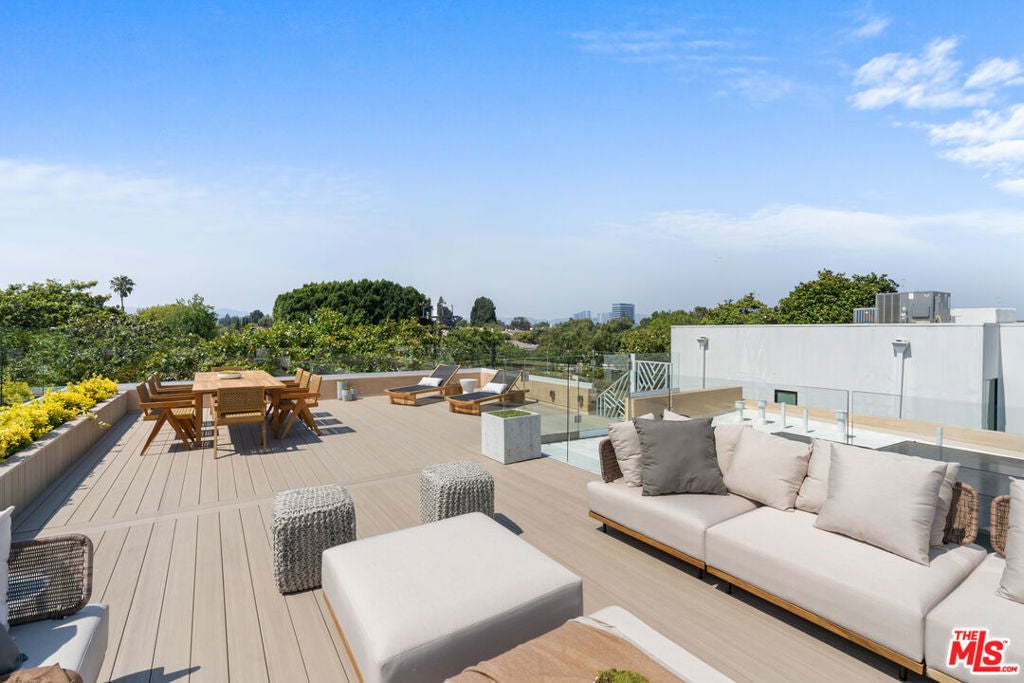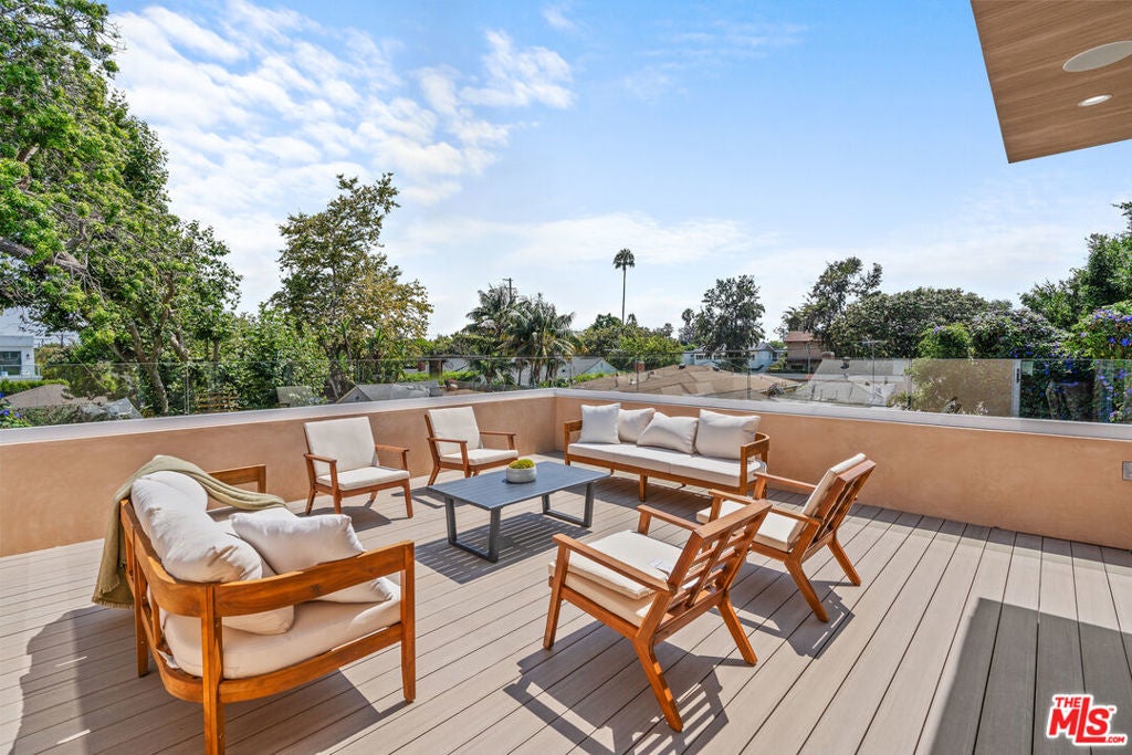Experience the epitome of modern luxury living in this newly constructed smart home in the heart of Mar Vista. This stunning 4-bedroom, 4.5-bath residence boasts all en-suite bathrooms, plus an additional 1,500 sq ft of outdoor living space including a primary bedroom balcony and an expansive rooftop deck with breathtaking 360-degree views. Designed with an emphasis on light, space, and contemporary sophistication, the home features a dramatic glass-encased foyer staircase and an airy open-concept floor plan framed by expansive windows for abundant natural light. The chef's caliber kitchen impresses with custom cabinetry, striking quartzite countertops, a large entertaining island, and a full suite of Thermador appliances. Enjoy stylish comfort in the sun-filled family room with a sleek Dimplex LED fireplace set in marble design porcelain. The spacious primary suite offers dual walk-in closets and spa-like bath with large shower, soaking tub, and elevated designer finishes. Nothing has been spared, this residence is thoughtfully curated with high-end amenities including solar panels, pre-wiring for home stereo and electric shades, an EV charger, and smart systems as well as extensive safety features with eight exterior security cameras and an automatic driveway gate. Located moments from Mar Vista's beloved farmers market, trendy dining, and premier local shopping, this home blends uncompromising luxury with effortless convenience.