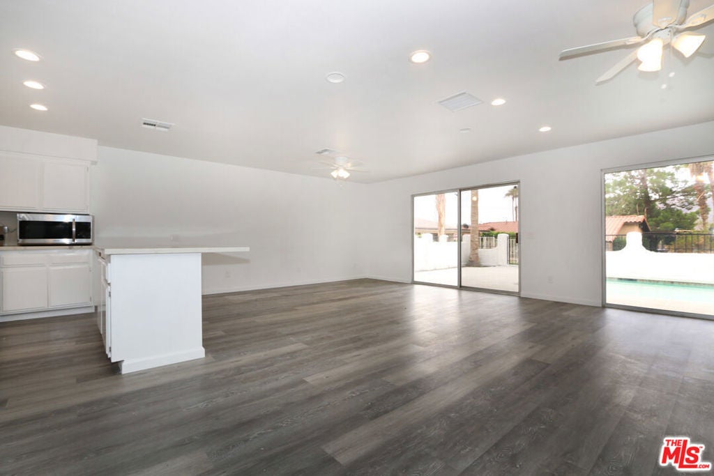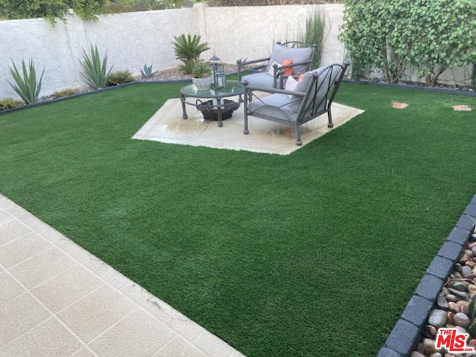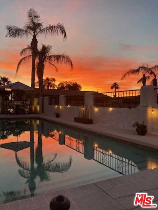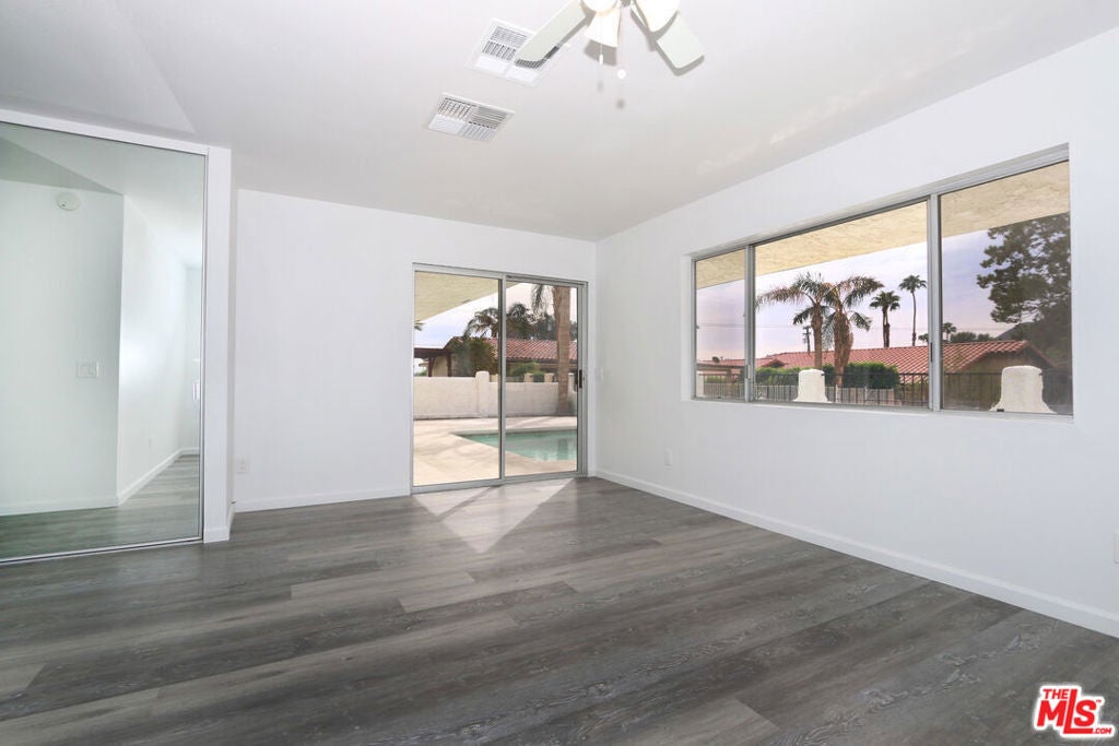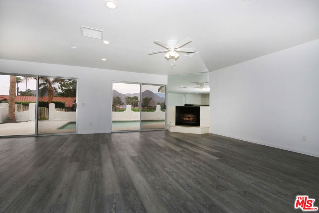 GREAT LOCATION! Beautifully remodeled and upkept, south facing home with private, heated pool. No neighbors in the back, it has that peaceful, tranquil, open & airy feel. New, waterproof, vinyl flooring in all rooms. 2 bedrooms on separate sides. Master/Primary bedroom has a balcony with direct access to private heated pool and gorgeous views of the mountains and golf course. Privacy in the Backyard with No neighbors. New quartz countertops in all rooms. Newer appliances. Open style, oversized living room with fireplace and open kitchen with an island. Recessed lights, beautiful ceiling fans, newer Ac & water heater. Separate laundry room and lots of closet space. Community offers 2 additional heated pools, jacuzzi/spa, tennis courts, basketball court, playground, rose garden, clubhouse/rec room available for special events with full kitchen, meeting room, free golf and more (might be a fee). 5 mins away from El Paseo, Wholefoods & Olympic size swimming pool aquatic center with waterslides. Live like you are on vacation in Paradise!! Price maybe different if rented furnished.
