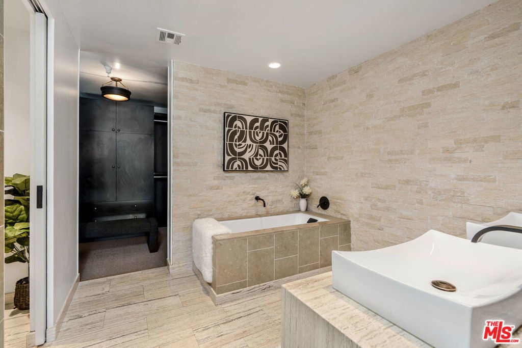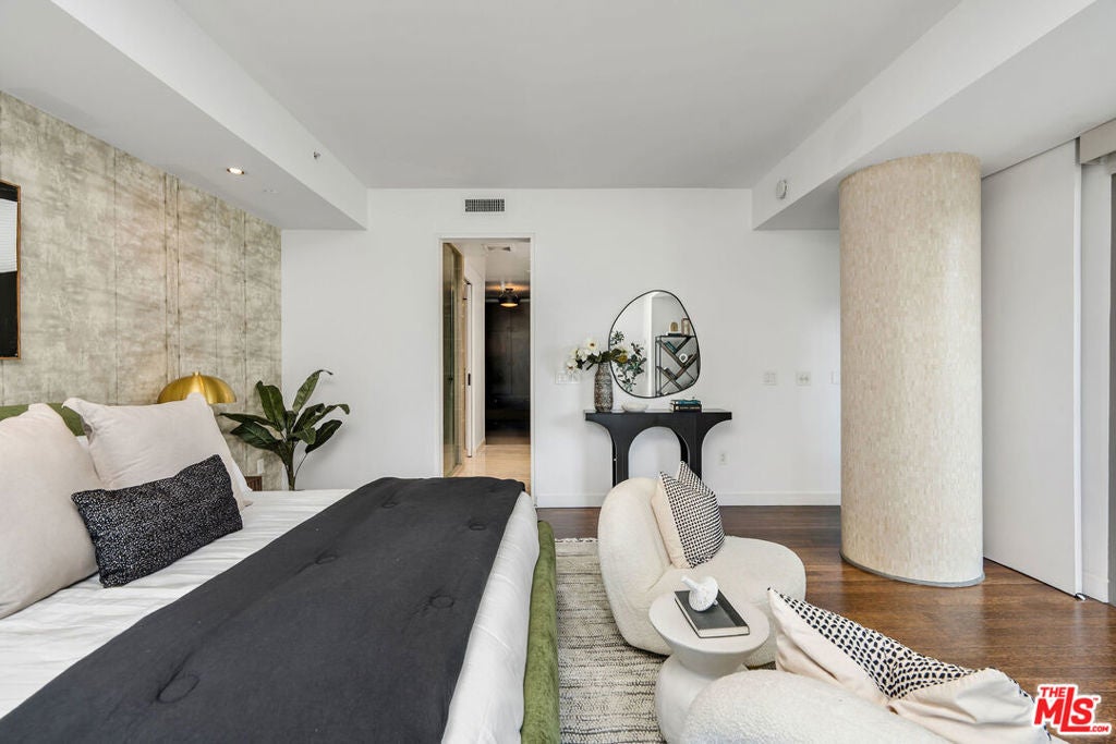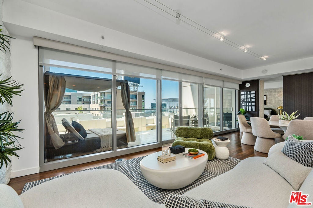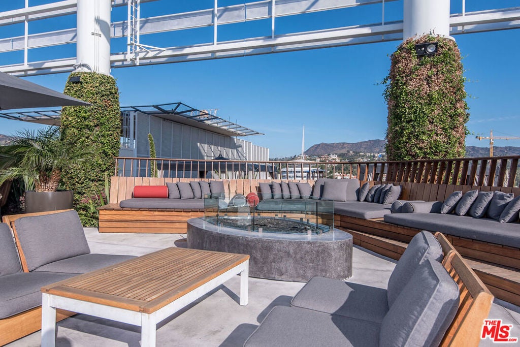 Luxury Living at the 10th floor of the W Residences Hollywood Designer 1BD + 2BA with a 200 Square 200-square-foot balcony. Experience world-class living in this impeccably remodeled and fully upgraded residence at the iconic W Residences Hollywood. Spanning nearly 1,400 square feet of interior space plus a rare 200-square-foot private terrace, this one-of-a-kind, south-facing 1-bedroom, 2-bath condo offers the ultimate in comfort, style, and modern convenience. Bathed in natural light, the open-concept living space is an entertainer's dream, featuring custom tilework, sleek sliding doors, an integrated sound system, and floor-to-ceiling windows with sunset and Century City views. The chef's kitchen is outfitted with top-of-the-line appliances, including a Sub-Zero refrigerator, wine cooler, Kuppersbusch range and dishwasher, and a premium Japanese water purification system. The expansive primary suite includes direct terrace access, a luxurious spa-style bathroom with dual vanities, a soaking tub, a separate walk-in shower, and a massive built-out walk-in closet. Enjoy unparalleled, resort-style amenities including a private rooftop with a 1/2-acre sky deck featuring a lap pool, spa, fire pits, BBQ areas, wet bars, and 360 views of the Hollywood Sign, Griffith Observatory, and the LA skyline. Additional features include a state-of-the-art fitness center, screening room, dog park, and access to 24-hour valet, concierge, room service, housekeeping, and security. Residents receive exclusive 20% discounts on W Hotel services, including dining, and more. Ideally located just steps from the Pantages Theatre, Trader Joe's, Equinox, and Hollywood's best dining and entertainment. Includes one parking space