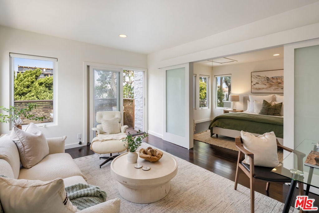 This one is all about living the actual dream. On a beach walk street, just steps to the sand sits this gated architectural duplex where all you really need is your toothbrush and maybe a surfboard. The stunning front unit has two bedrooms (the 2nd bedroom is currently used as an office/extension of the primary, with its own balcony), two and a half baths, and a fantastic floor with a free-flowing kitchen/living/dining room that opens onto the spacious and gracious patio, with room for more cooking, eating, and living. The upstairs back unit, with 2 bedrooms of its own, could be used as an extension of the home, a sort of built-in guest house, or as an income producer. And this location! You're in the middle of it all, but it still feels like a vacation. If you're exhausted from all of the entertaining you'll do because you've become the hub of your social circle with this swank pad, just pop around the corner and grab a bite at any of the fantastic restaurants on Washington Boulevard. You're close enough to stroll the Venice Canals and do some world-class shopping on Abbot Kinney. And the beach! You can catch the sunset every single evening. This one is more than a home, it's a lifestyle.