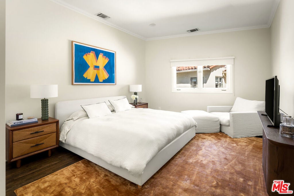 Nestled in Los Feliz' sought-after "Oak Streets," this reimagined 4-bed, 5-bath Contemporary Spanish estate seamlessly blends historic charm with modern luxury. From the gated drive and lush landscaping to arched windows and exposed beams, every detail feels curated and inviting. Perfectly positioned between Beachwood Canyon and Los Feliz, the home offers rare dual access ideal for those who love the Eastside's character yet want the convenience of an easy connection to Hollywood and beyond. The sunlit living and dining rooms flow into a soaring double-height family room, while the chef's kitchen overlooks a stunning oversized mosaic-tiled pool. Designed for entertaining, the backyard features a pergola lounge with fireplace, outdoor kitchen, and spa all framed by views of Griffith Observatory in total privacy. Upstairs, the primary suite offers dual walk-in closets, a spa-like bath, and a private fireplace. Three additional bedrooms provide easy access to updated bathrooms, custom built-ins, and flexible spaces for family, guests, or a home office. Offered fully furnished, this residence invites you to embrace elevated living where classic design meets modern convenience, just minutes from Griffith Park trails, the Trails Cafe, and the best of Los Feliz.