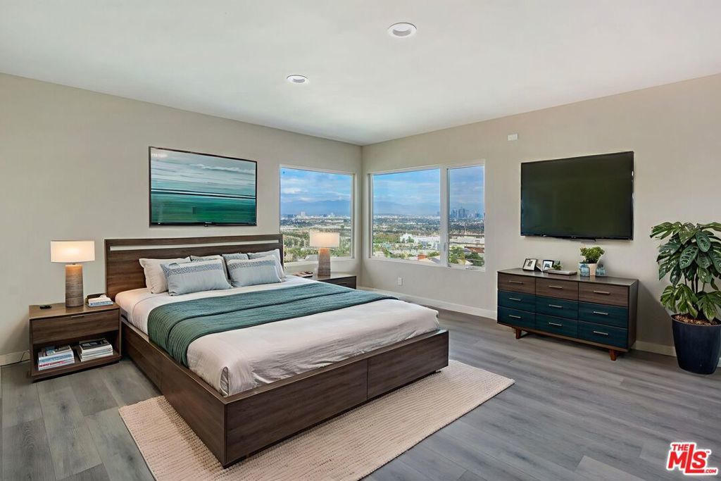 Experience rare elegance and versatility in this extraordinary hillside residence, offering breathtaking panoramic views from downtown to the Hollywood Hills. Fully remodeled with refined design and superior functionality, the home features seven bedrooms, six baths, and two complete kitchens across two spacious levels each with the flexibility to function as a full residence or connected retreat. The main level showcases a light-filled living room with sweeping city views, a formal dining room, and a gourmet kitchen with an eight-foot dining island, custom cabinetry, and top-tier stainless-steel appliances. Downstairs, a second great room with its own kitchen and laundry area provides exceptional adaptability for multi-generational living, creative pursuits, or home office configurations. Enjoy indoor-outdoor living at its best with a large, paved terrace overlooking a sparkling pool and expansive deck perfect for entertaining or quiet relaxation. Several bedrooms offer convertible potential for offices, studios, or wellness spaces. Virtually staged for inspiration; offered unfurnished. Written lease criteria include verification of income, credit, and references. No short-term rentals permitted. Contact the listing agent for details.