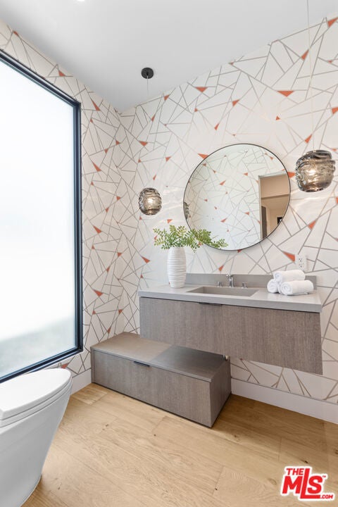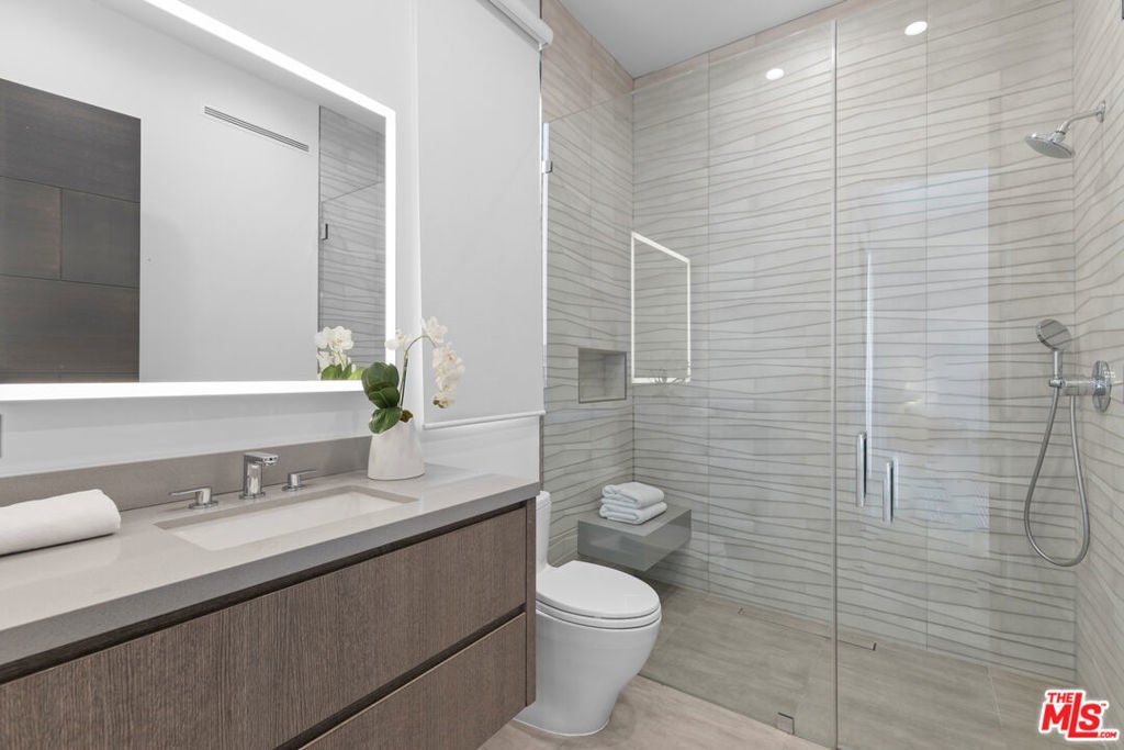 Ideally situated just off Ventura Boulevard, this striking modern residence blends transitional architecture with a flawless fusion of smooth stucco, rich exotic wood, and expansive glass walls all privately nestled behind lush hedges in a tranquil South of the Boulevard enclave. Step into a dramatic entryway with soaring ceilings, setting the tone for the thoughtfully curated interiors where open-concept living flows seamlessly into the outdoors. Beyond the foyer, a sophisticated formal living room with custom built-ins leads to a state-of-the-art home theater perfect for movie nights or game day gatherings. On the main level, a private guest or maid's suite with an en-suite bath adds flexibility, alongside a stylish powder room for visitors. The elegant formal dining room connects effortlessly to a warm and inviting family room, complete with designer built-ins, a 100-bottle wine bar, a contemporary wood-clad fireplace, and expansive glass pocket doors that disappear to reveal the breathtaking backyard oasis. The chef's kitchen is a showstopper, outfitted with a waterfall island, sleek lacquer cabinetry, premium built-in Miele appliances, a sunny breakfast nook overlooking the grounds, and a walk-in pantry. A butler's pantry provides convenient access to the dining room ideal for entertaining with ease. Upstairs, a versatile teen lounge or executive office opens to an extraordinary wraparound terrace with panoramic views of the Santa Susana Mountains. Four luxurious bedroom suites await, including a spectacular primary retreat featuring a fireplace, built-in bar and fridge, private lounge, oversized walk-in closet with island, and a spa-inspired bathroom with dual vanities, lighted mirror, soaking tub, and oversized shower. A private balcony overlooks the backyard the perfect spot to greet the morning or unwind at sunset. Designed for entertaining and everyday luxury, the backyard features a covered outdoor living area, sparkling pool and spa, glass-encased fire pit, and a sleek outdoor kitchen with built-in BBQ. A custom sports court invites friendly competition, while a newly updated ADU with a private entrance and en-suite bath provides ideal accommodations for guests, extended family, or use as an office, studio or even a gym. Smart home features include integrated sound, multi-zone Nest climate control, security cameras, electric blinds and curtains throughout the entire house and full home automation. Additional highlights include a large motor court with ample parking and a low-maintenance turf area perfect for soccer, mini golf, or outdoor relaxation. Don't miss the opportunity to experience the exceptional lifestyle offered at 4854 Alonzo Avenue where modern design, comfort, and convenience converge in one unforgettable home.