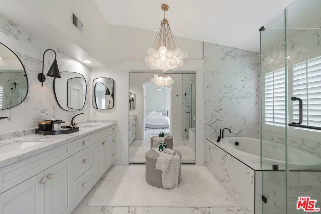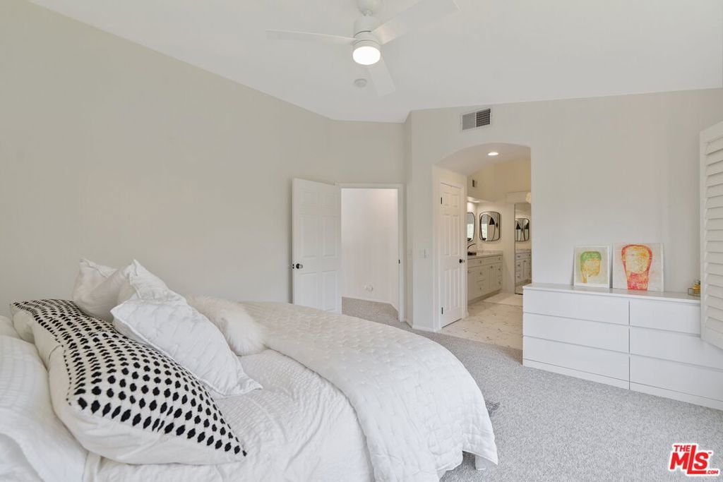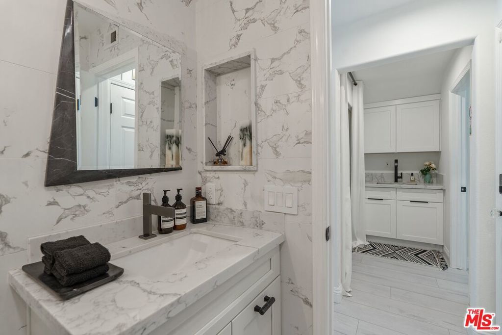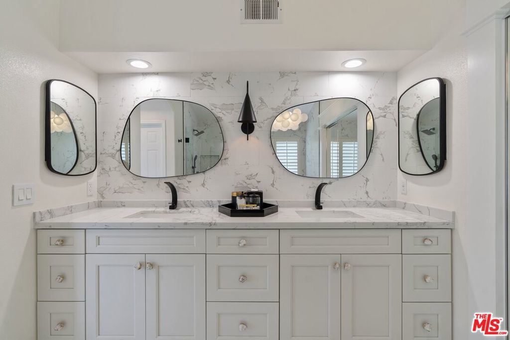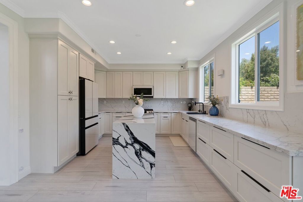 Welcome Home! This ultra-modern interior styled property within the established neighborhood of Stevenson Ranch offers an open floor plan, high-end black & white interior throughout the house gives clean, sleek, sophisticated vibe, with tons of natural light and warmth. Renovations completed in 2024, elegant hardwood flooring, new carpet with heavy padding for comfort and noise reduction, LED lights throughout the house, custom mini bar built-in with wine cooler and draft beer dispenser, all new kitchen appliances, double washer and double dryer, all counters throughout have the look of fine marble with durable ceramic material for easy usage and maintenance. House fan works to pull in air from outside to circulate inside air and cooking odors quickly. Custom audio system in the living room perfect for entertaining. The backyard has built-in bbq, with stunning mountain view for hours of enjoyment and relaxation.