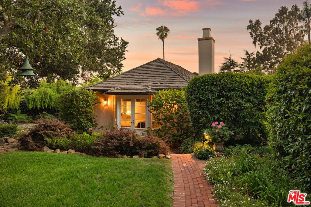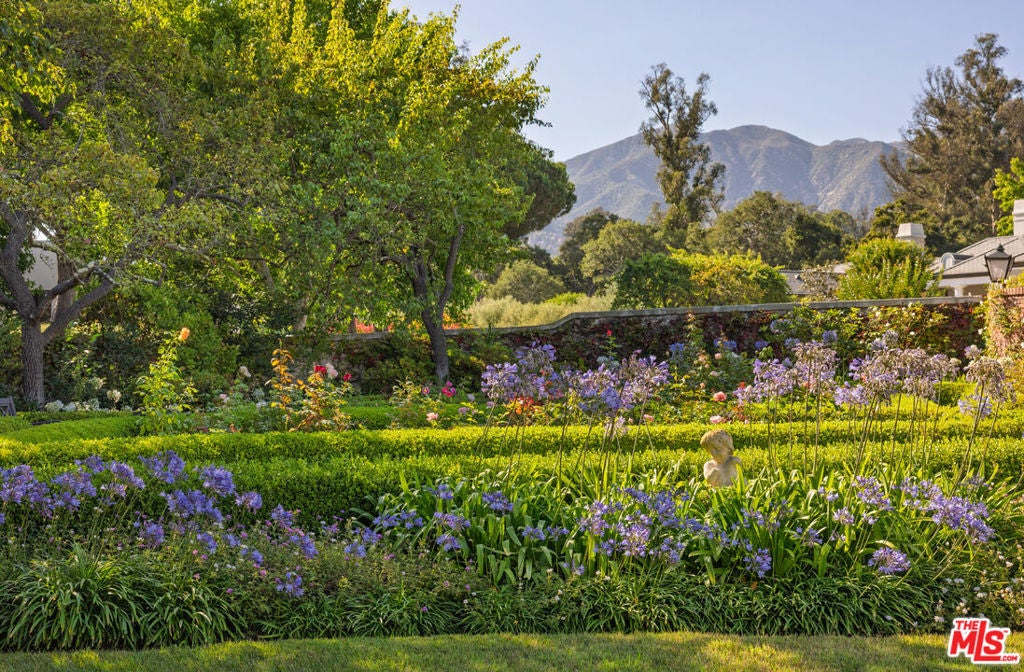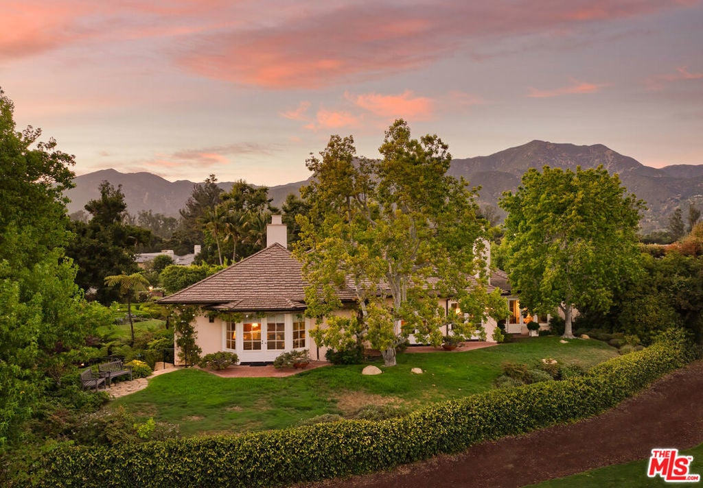 Tucked within the guarded gates of Montecito's prestigious Birnam Wood enclave, this timeless residence enjoys one of the community's most desirable locationsjust moments from the Birnam Wood Golf Club and surrounded by natural beauty. A separate one-bedroom, one-bath guest cottage with its own entrance offers private accommodations for visitors or extended family, complementing the main residence with comfort and versatility. The home's grounds evoke the charm of an English garden, with mature oaks, blooming roses, fruit trees, trimmed hedges, and other flora. Multiple seating areas create a serene, park-like ambiance, while sweeping views of the lake and Santa Ynez Mountains provide a dramatic backdrop. Classic details such as beautiful crown molding and luxuriously stained wood paneling create an air of Old-World sophistication within the residence. The living room features a cathedral ceiling, custom built-ins, and rich wood tones, while an adjoining enclosed porch bathes in sunlight and overlooks the golf course and its lake. A companion formal sitting room offers the same captivating views. The dramatic dining room invites formal repasts with its soaring ceiling, exquisite fabric-lined walls, a statement chandelier, and floor-to-ceiling windows. French doors open to a garden-view terrace. Nearby, the kitchen blends charisma and functionality with hand-stenciled cabinetry and a combination prep-and-serve island perfect for casual meals and relaxed conversation with the chef. A whimsical chandelier and custom range hood mural add a touch of personality, while large windows invite natural light and garden views. A large office provides a quiet retreat with its fireplace, built-in bookshelves, and cathedral ceilingan ideal space for working from home or enjoying privacy. The grand primary suite, a peaceful sanctuary, hosts French doors opening to the gardens, an exceptionally spacious closet, and a lavish bathroom with a large soaking tub swathed in Italian marble. The suite's built-in desk adds function and flexibility, creating a quiet space for reading or reflection. A spacious three-car garage adds convenience. This distinctive property pairs gracious indoor living with extraordinary outdoor spaces in one of Montecito's most exclusive enclaves, all while convenient to the singular amenities this special community offers.