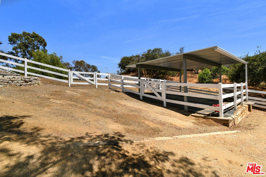 Welcome to 25700 Mulholland Highway, an extraordinary equestrian estate on nearly two acres along the iconic Mulholland Corridor in Calabasas, California. Set behind gates and surrounded by mature olive trees and sweeping views of the Santa Monica Mountains, this rare compound offers a seamless blend of luxury living and rural charm just minutes from both Calabasas and Malibu. The beautifully remodeled single-story home spans approx. 2,500 square feet and features Turkish limestone floors, soaring ceilings, and walls of glass that bring in natural light and frame panoramic views. Highlights include a formal living/media room with custom built-ins, a dramatic great room with fireplace, and a designer kitchen equipped with Sub-Zero, Wolf, and Miele appliances, granite counters, and book-matched custom cabinetry. The flexible floor plan includes two sleeping rooms on one side including a private primary retreat with walk-in closet, custom built-ins, spa bath and mountain views. Off the kitchen, an impressive executive office suite (3rd bedroom) has high ceilings, wet bar, spa bath, and its own entrance to the front courtyard. Outside, the property boasts a detached two-car garage with workshop and storage, a private state of the art movie trailer/theater, ample parking, and incredible equestrian amenities. A professionally graded riding arena, two-stall barn, and large tack room/lounge sit below the main house, connected by a private trail and peaceful waterfall feature. The property also offers a pad for an airstream, and direct access to scenic trails in the Santa Monica Mountainsperfect for morning rides. A true gentleman's ranch and one-of-a-kind offering for equestrian lovers, nature seekers, or anyone craving privacy, views, and elegant indoor-outdoor living.
