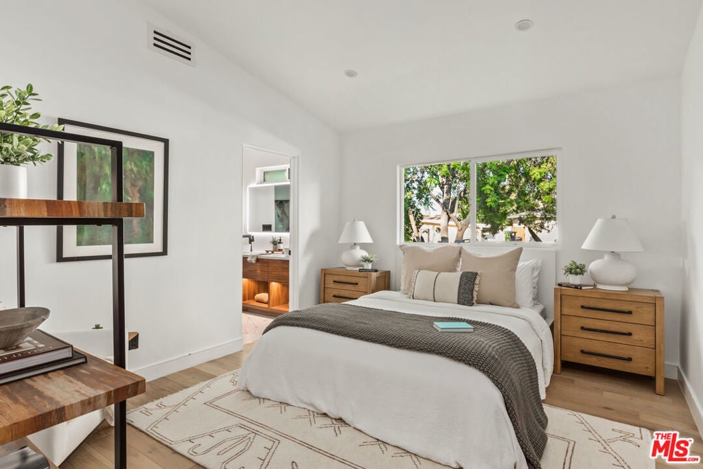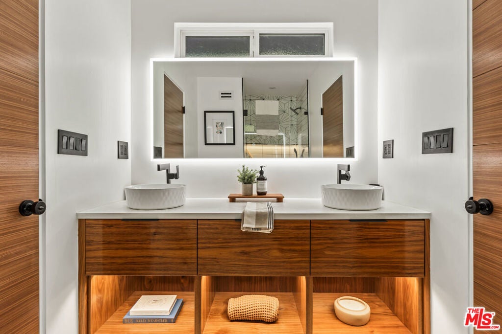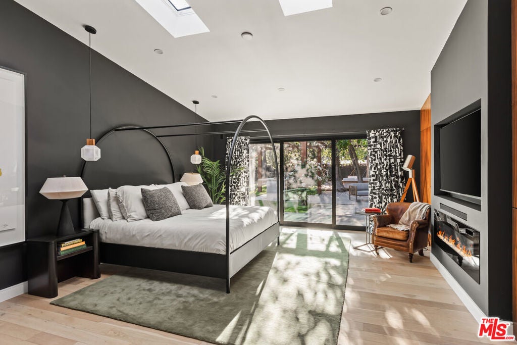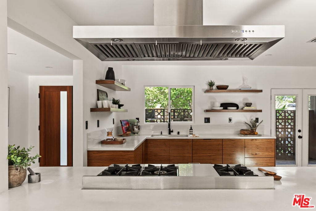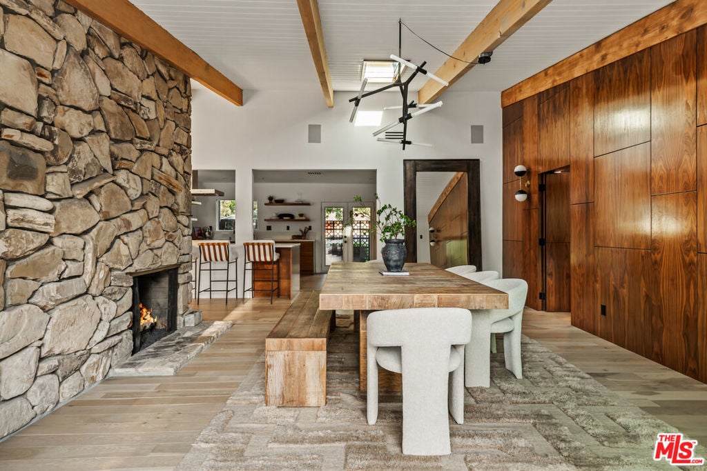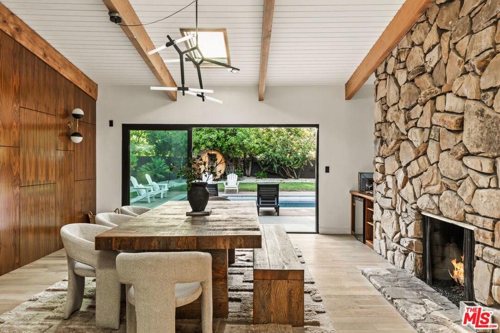 Tucked away on a tranquil, tree-lined cul-de-sac, this stunningly reimagined Charles Du Bois Mid-Century home offers an elevated living experience in one of Woodland Hills' most coveted pockets. Blending timeless mid-century architecture with modern luxury, the home has been thoughtfully updated with high-end finishes and inspired design choices throughout. Ideally located near top-rated schools, The Village, The Commons, and a vibrant collection of premier restaurants, this retreat places you in the heart of it all while still feeling worlds away. Inside, natural light pours into an expansive open-concept layout framed by dramatic glass walls and a striking double-sided fireplace. The living spaces flow effortlessly into the lush backyard, where a custom-designed pool and spa anchor a resort-style oasis, complete with a sleek gazebo, built-in BBQ, and deck with an outdoor fireplace, perfect for entertaining year-round. At the center of the home, the chef's kitchen stuns with walnut cabinetry, concrete slab countertops, and seamless integration into the dining area featuring a cozy fireplace, custom dry bar, and oversized sliders that open to the private yard.Hidden behind discreet paneling, a bespoke speakeasy offers the perfect spot for intimate evenings or spirited gatherings. The primary suite impresses with soaring ceilings, a fireplace, a boutique-inspired walk-in closet, and a spa-like bath that redefines relaxation. Step outside to a beautifully designed pergola and alfresco dining area creating a captivating backdrop for evenings under the stars. From its welcoming, tree-framed entry to the serene, Zen-style grounds, this property captures the essence of California indoor-outdoor living at it's finest.