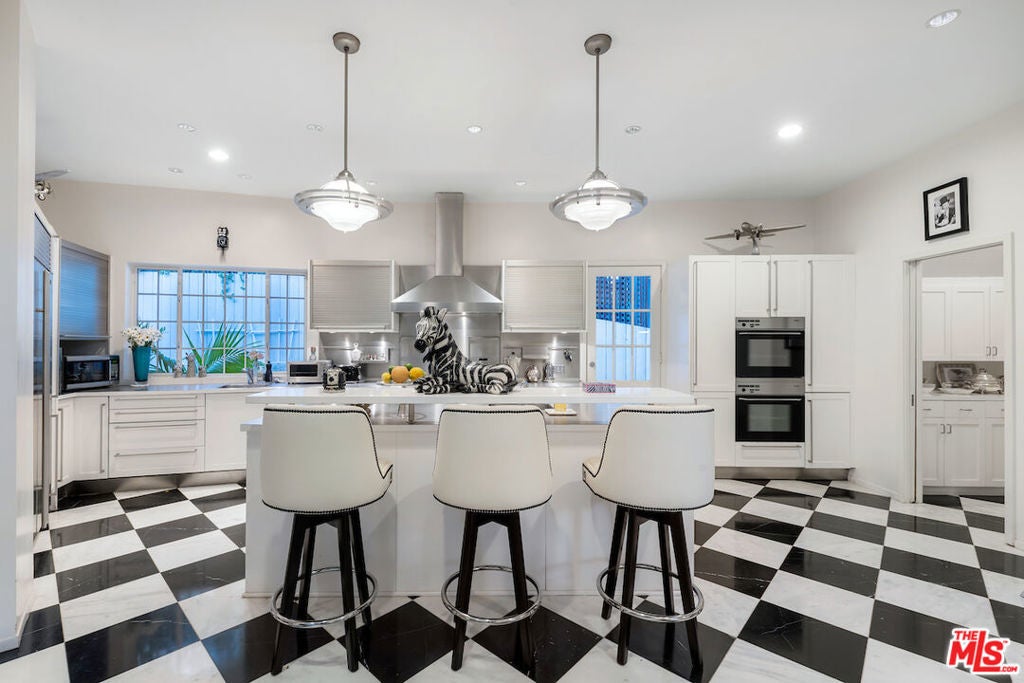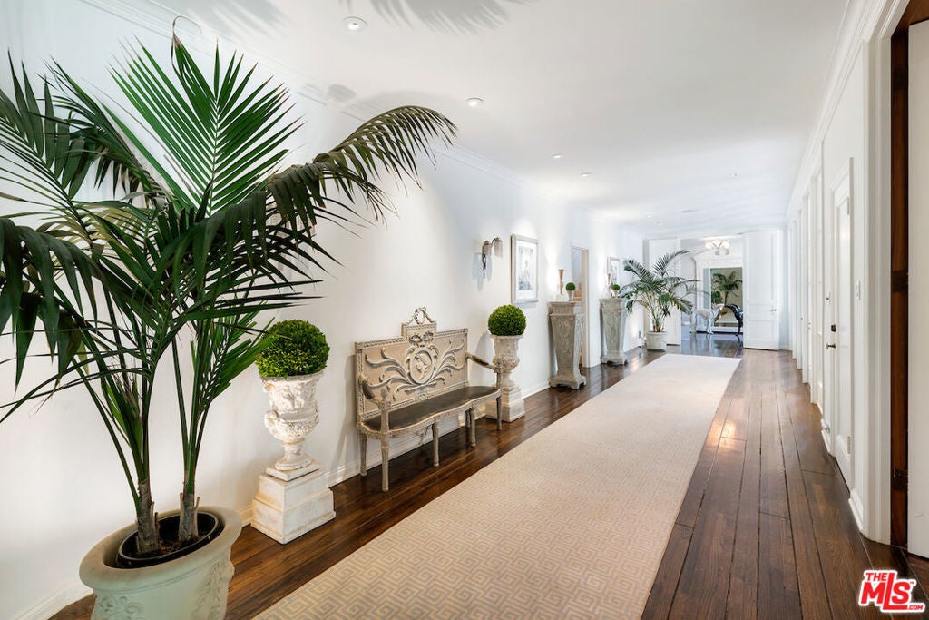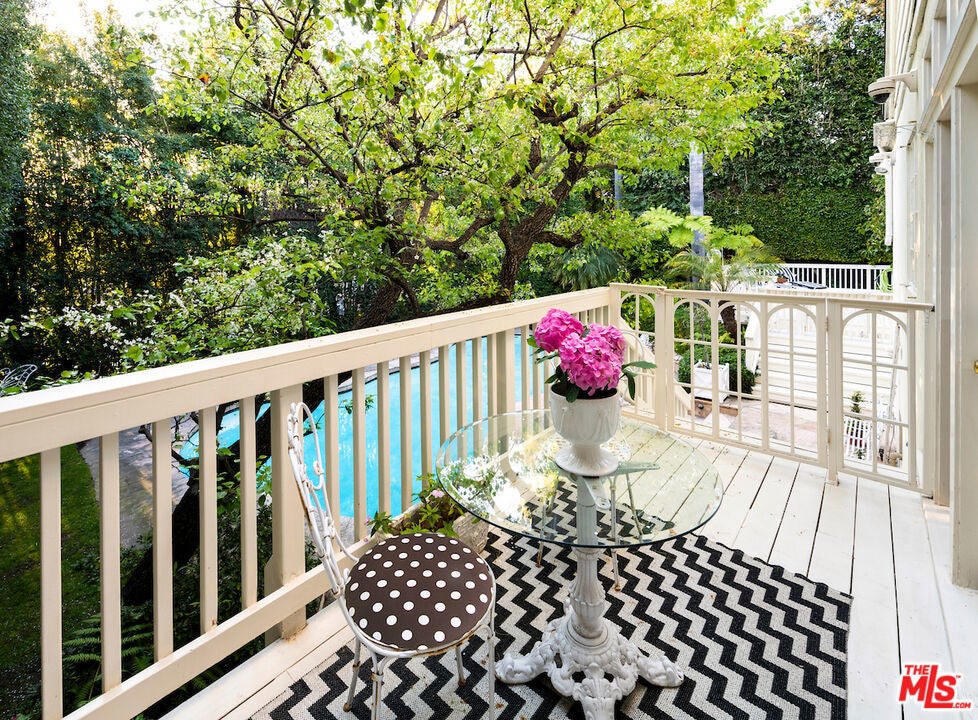 Stunning traditional residence privately tucked behind gates in the heart of Little Holmby. A dramatic stone pathway meticulously lined by greenery welcomes guests into the curved formal entry intricately adorned by hand painted walls. The formal living room, just off of the entry, showcases 10 Ft ceilings, a marble fireplace, and picture windows allowing in an abundance of natural light. On the other side of the formal entry is the formal dining room, with access to the yard, that seamlessly flows into the chef's kitchen. Black and white checkerboard marble floors perfectly compliment the stainless steel appliances, countertops, and island in addition to the cabinetry. A wood paneled den with a wet bar and fireplace provides an inviting yet polished space to entertain. The broad gallery hallway, lined by a wall of French doors, leads to the primary suite quietly tucked away in the far wing of the house. A considerable walk-in closet, spa like ensuite and a private balcony overlooking the backyard create the primary bedroom retreat. Two additional bedrooms on this level plus two bedrooms upstairs, each with its own bathroom, complete this highly functional floor plan. An expansive garden patio framed by lush greenery offers an outdoor grill and copious seating areas. An in-ground pool and spa are the finishing touches to this serene oasis in one of the most highly coveted neighborhoods in Los Angeles.