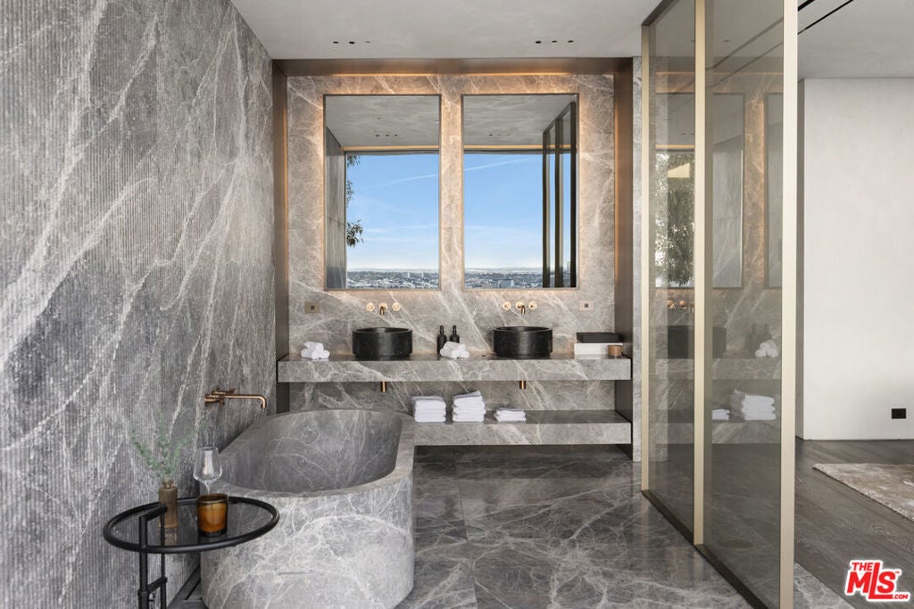 The most spectacular brand new view estate in the Birds Streets. An exquisite contemporary estate meticulously crafted by NOBEL Design and Architecture Studio for those with a taste for luxury and sophistication. Almost 14,000 sq ft home nestled at the end of a cul-de-sac on a sprawling one acre lot in the heart of West Hollywood. This magnificent residence epitomizes elegance and offers unparalleled panoramic views, including breathtaking city skylines and dazzling city lights. As you step inside, be welcomed by an expansive open floor plan with soaring ceilings and floor-to-ceiling windows that flood the interior with natural light, seamlessly blending indoor and outdoor living. The spacious living areas are perfect for entertaining, allowing guests to move effortlessly from room to room, including a grand living room and an intimate lounge area. This stunning residence features 5 bedrooms, 7 bathrooms, and 2 powder rooms, offering ample space and sophistication for discerning homeowners. The gourmet chef's kitchen is a culinary masterpiece, outfitted with top-of-the-line appliances, a large center island, and ample counter space for all your cooking needs. Whether hosting a dinner party or a casual gathering, this kitchen is sure to impress. Designed with health and wellness in mind, this home includes a dedicated wellness area to help you relax and rejuvenate. Experience the ultimate movie night in your private theater, and take advantage of the 10-car parking to host friends and family with ease. Relax in the luxurious primary suite, a serene retreat featuring a spacious walk-in closet and an opulent en-suite bath with dual vanities, a soaking tub, and a grand glass shower. Each of the additional four bedrooms is generously sized and boasts its own en-suite bath, providing privacy and comfort for all. Step outside to the ultimate entertaining oasis. The outdoor lounging area is complete with heated lounge chairs in the pool, ideal for soaking up the sun and enjoying the stunning horizon views. The meticulously landscaped grounds offer endless possibilities for alfresco dining and outdoor activities. The property is designed for those seeking a luxurious yet relaxing retreat, offering a unique combination of seclusion and proximity to the iconic Sunset Strip and prestigious Beverly Hills. Shown to pre-qualified clients only.