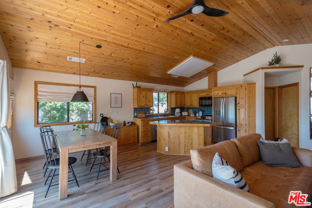 Investment Gem | First-Time Buyer Dream | Mountain Retreat 34075 Shaver Springs Rd, Auberry, CA 93602 (Fully Furnished | Turn-Key Home) Mountain Charm Meets Modern Comfort in Shaver Springs -- Step into this beautifully maintained single-level 3 bedroom, 2 bath furnished(with no warranty or guarantee)retreat tucked away in the peaceful community of Shaver Springs. From the moment you walk in, you'll be greeted by soaring knotty pine vaulted ceilings and a dramatic wall of windows that frame the majestic Burrough Mountain views with the added delight of peekaboo view of twinkling city lights at night.The open-concept living space flows seamlessly into a warm and inviting kitchen with newer kitchen appliances(per seller remarks only 2.5 years old)charming knotty pine cabinetry and a breakfast bar perfect for morning coffee, casual dining, or entertaining friends.Outdoors, a spacious deck invites family gatherings, summer barbecues, and evenings spent enjoying the cool mountain breeze. With a newer insulated garage door(late 2022), newer cement driveway(late 2022), and extra storage beneath the home, you'll appreciate both comfort and practicality.At an ideal elevation, enjoy cool summers with minimal winter snow, making this home perfect for year-round living, a vacation getaway, or a high-demand rental investment. Just 20 minutes from Shaver Lake, 45 minutes from China Peak Ski Resort, and under an hour to the valley adventure is always close by. Best of all, this quiet neighborhood offers access to a fishing pond and open space for residents to enjoy. With HOA dues at only $517/year, the lifestyle value is unmatched. This is more than a home it's a lifestyle. Don't miss your chance to own it. Schedule a private showing today!