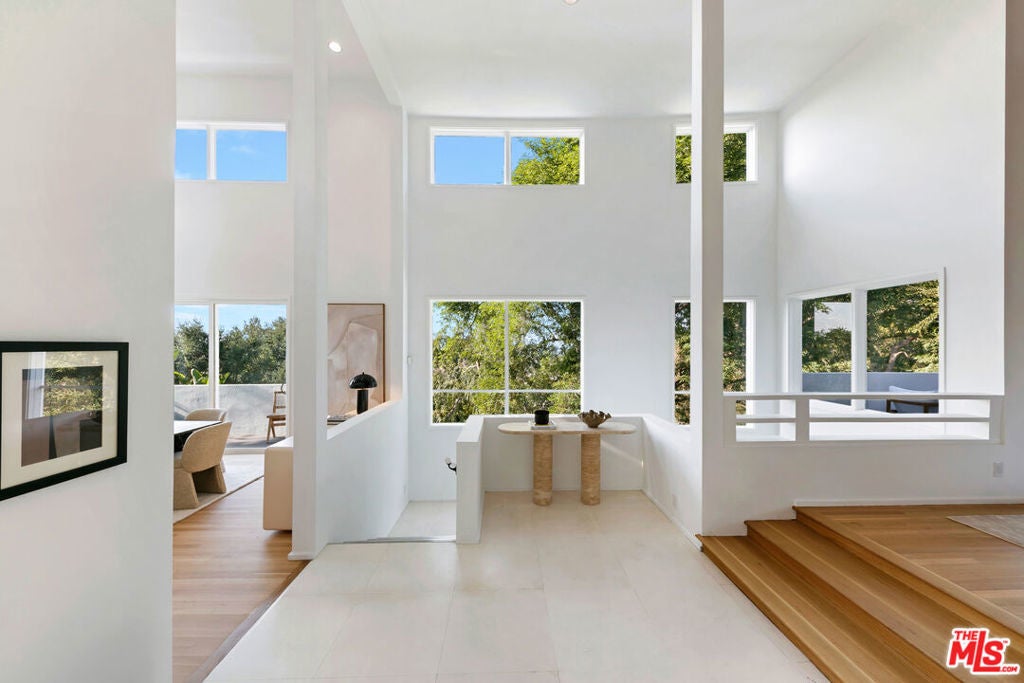 As the 1980s came to a close, this architectural home was built to capture the essence of the decade. Perched in the Hollywood Hills, 6969 Woodrow Wilson offers sweeping views of the San Fernando Valley while being just minutes from it all. Inside the nearly 3,500 sq ft home, the vast entry hall immediately conveys the magnitude of its soaring two-story-plus ceilings, creating a gallery-like space ideal for large-scale artwork. The cozy upper loft level, which includes an ensuite, is illuminated by clerestory windows that frame the distant Santa Mountains. The main level seamlessly combines a spacious living room, dining area, open kitchen, and intimate built-in nooks. Recently refinished solid oak floors bring warmth and complement the all-white walls. Designed for both entertaining and everyday living, the home boasts multiple outdoor decks, a spa, and lush landscaping. The lower level, including the oversized primary suite with sliding glass doors opening to the backyard, offers privacy and tranquility. With just two previous owners, the home remains a well-preserved example of its era, offering a timeless design.