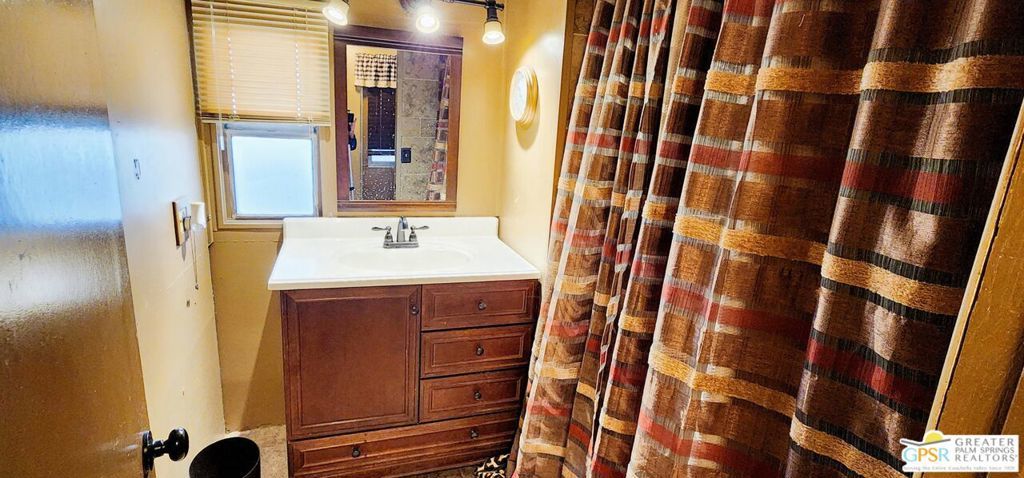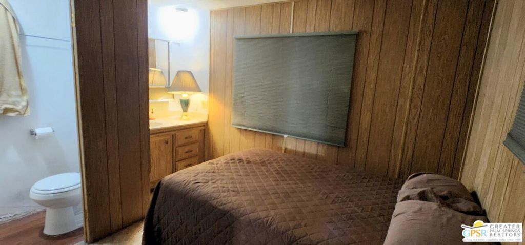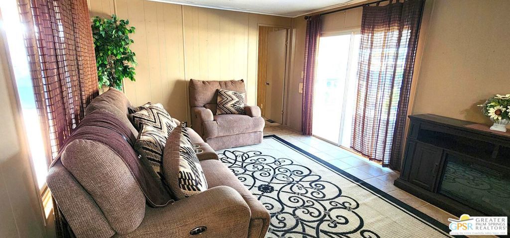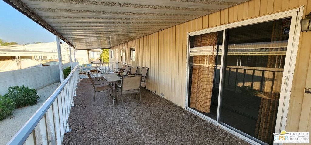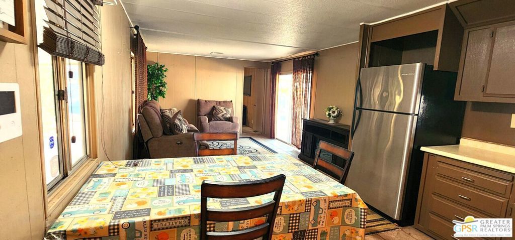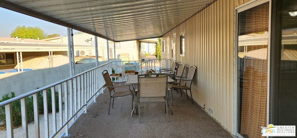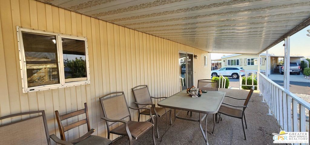 Discover an affordable gem in Desert Crest Country Club! This cozy and furnished 2-bedroom, 2-bath home offers 672sqft of easy-care living with peek-a-boo mountain views and a versatile covered patio for relaxing or entertaining. Enjoy the convenience of a covered carport and a handy washer/dryer located in the exterior shed. The home is move-in ready, yet offers plenty of potential to add your own personal touches. Ideal for buyers seeking value in an active 55+ community with resort-style amenities including a mineral spring pool, hot spas, golf course, and clubhouse. This inviting retreat won't last long!