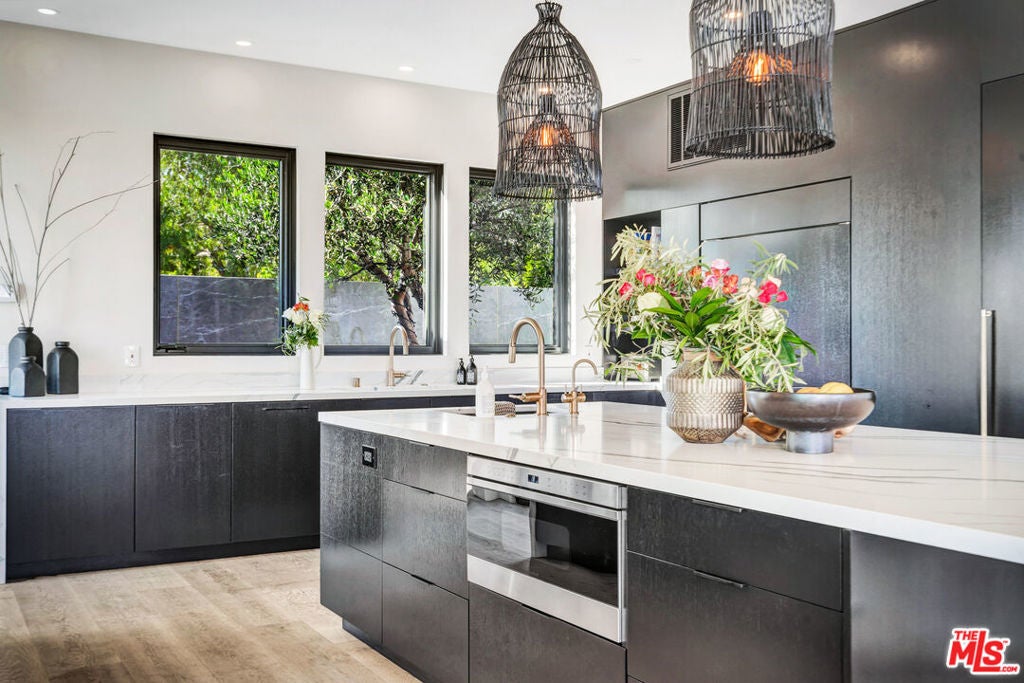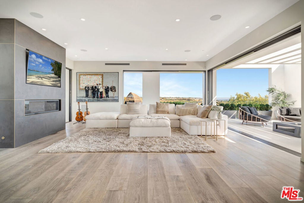 Perched above the Pacific with sweeping ocean views, this modern Malibu Park coastal estate offers a rare blend of architectural sophistication, resort-caliber amenities, and unparalleled privacy designed for effortless entertaining and inspired coastal living, from sunrise swims to sunset soirees. Behind secure gates, a dramatic motor court framed by mature trees and serene ponds sets the tone for this chic, sun-drenched sanctuary. Step inside to a vaulted entry with a floating staircase, gallery-like walls, and floor-to-ceiling glass that dissolves the boundary between indoors and out. The expansive great room flows seamlessly into the chef's kitchen, an entertainer's dream opening to a sun-soaked terrace with a sparkling pool, spa, fire pit lounge, and full outdoor kitchen. Every inch of the landscaped grounds is thoughtfully curated, from the lush fruit orchard to the organic vegetable garden, offering a true farm-to-table lifestyle in the heart of Malibu. Designed for both work and play, the home features a private ocean-view office, a custom-built cinema, an ocean-facing fitness studio, and a flexible lower-level suite. The primary bedroom is a masterclass in coastal luxury, with two private terraces and a spa-inspired bath anchored by a statement-making brass soaking tub by VAST. Sustainable drought-conscious landscaping, a whole-home water filtration system, and newly installed solar complement the property's effortless elegance. Move-in ready and moments from the beach, this estate is more than a home; it's an invitation to live the Malibu dream in its most refined form.