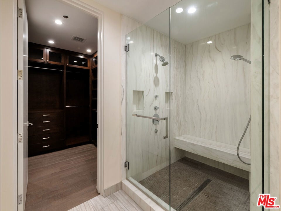 Penthouse 501 at 460 N Palm Drive delivers Beverly Hills luxury with unmatched style. This 3-bedroom, 4-bath residence offers direct elevator access, expansive living and dining areas, and a chef's kitchen with marble finishes and professional appliances. The primary suite features a spa-like bath, custom walk-in closet, and private terrace access. An exclusive spacious rooftop crowns the home, complete with multiple lounges, a fire feature, outdoor kitchen, dining space, and spa - set against sweeping city and hillside views. Additional features include en-suite bedrooms, laundry room, smart home integration, three secure side by side parking spaces, private storage, and access to a fitness center and 24-hour concierge.