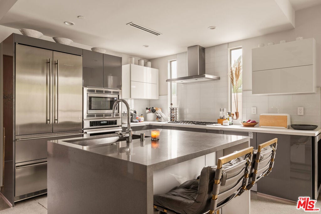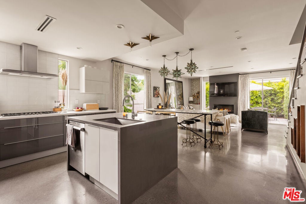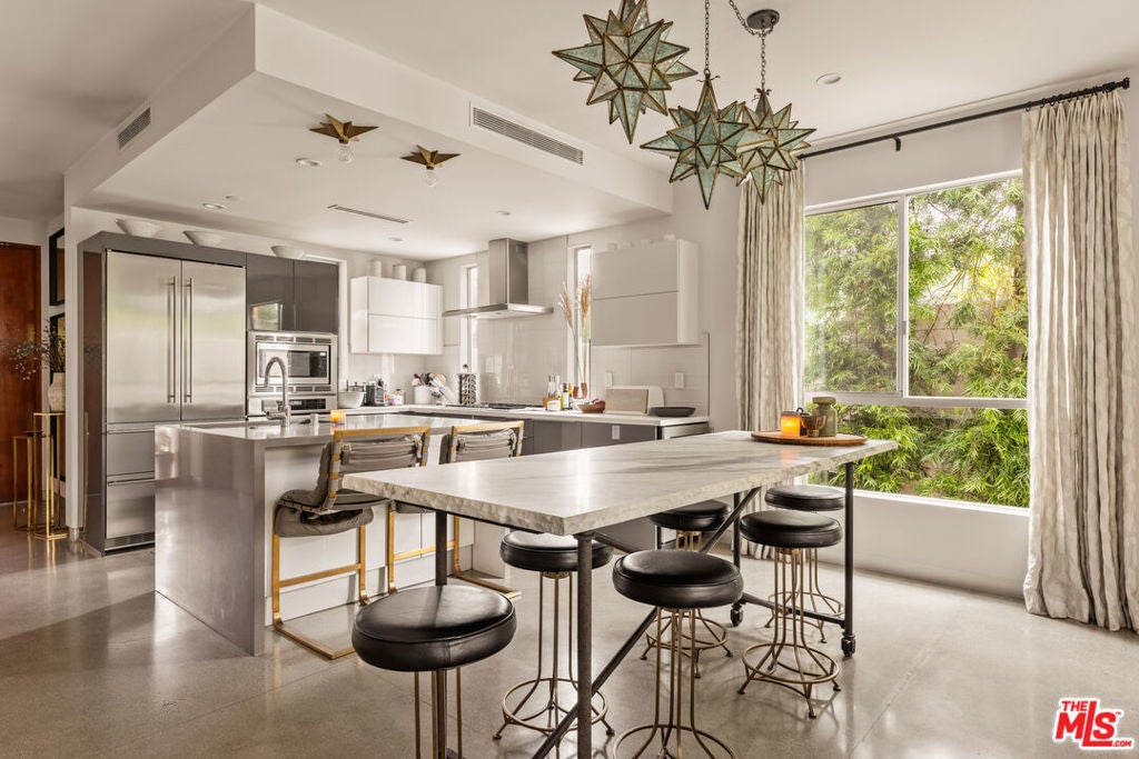 This is the home you fall in LOVE with the moment you walk through the door! Fresh, stylish and move-in ready, this 3 bedroom, 2.5 bathroom gem blends designer flair with everyday comfort in one of LA's most walkable neighborhoods.Owned by just one proud homeowner, the property is spotless and beautifully maintained. Reimagined by acclaimed designer Jeff Andrews, the open floor plan showcases polished concrete floors, bold custom finishes and statement lighting that create a modern yet inviting feel. The sleek kitchen with bar seating flows seamlessly into the dining and living areas, and a built-in bar under the stairs adds a touch of fun for entertaining.Upstairs, the primary suite offers a walk-in closet, a spa-inspired bathroom and access to a private rooftop retreat. Two additional bedrooms work beautifully for guests, a home office or a nursery.Outside, a private hedged patio sets the scene for weekend brunches or quiet evenings. From here you can walk to Whole Foods, the Metro and nearby parks like Kenneth Hahn, or explore the Culver City Stairs and top employers such as HBO, Apple and Amazon just minutes away.Beverlywood adjacent and central to the Westside, this home offers the perfect mix of design, location and lifestyle.