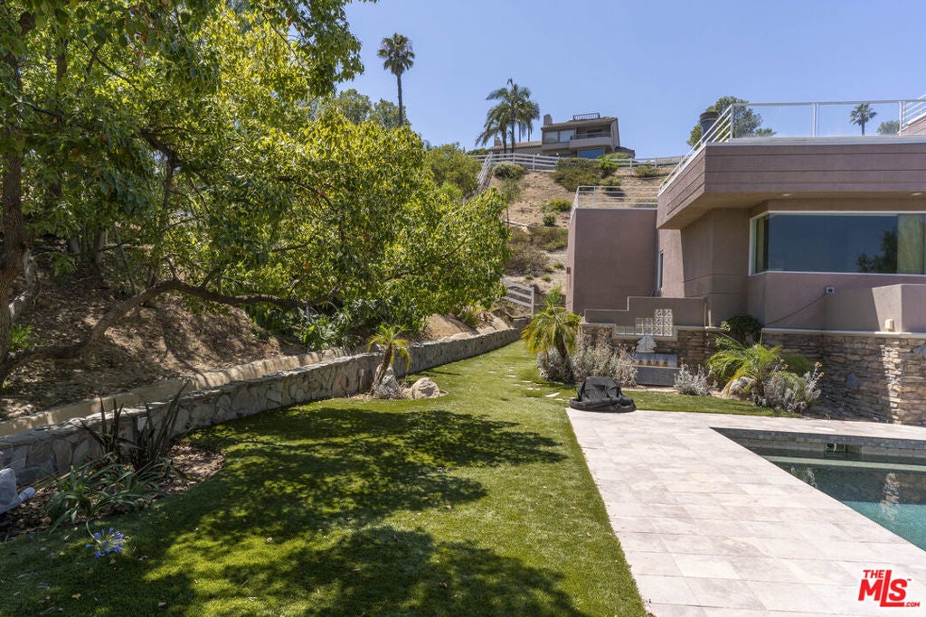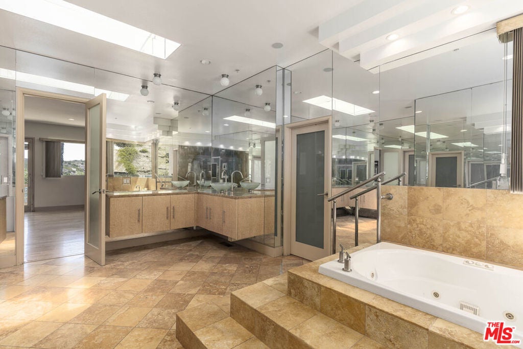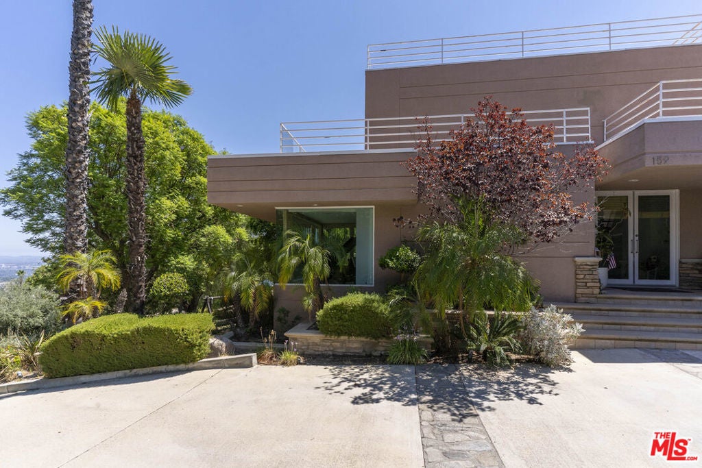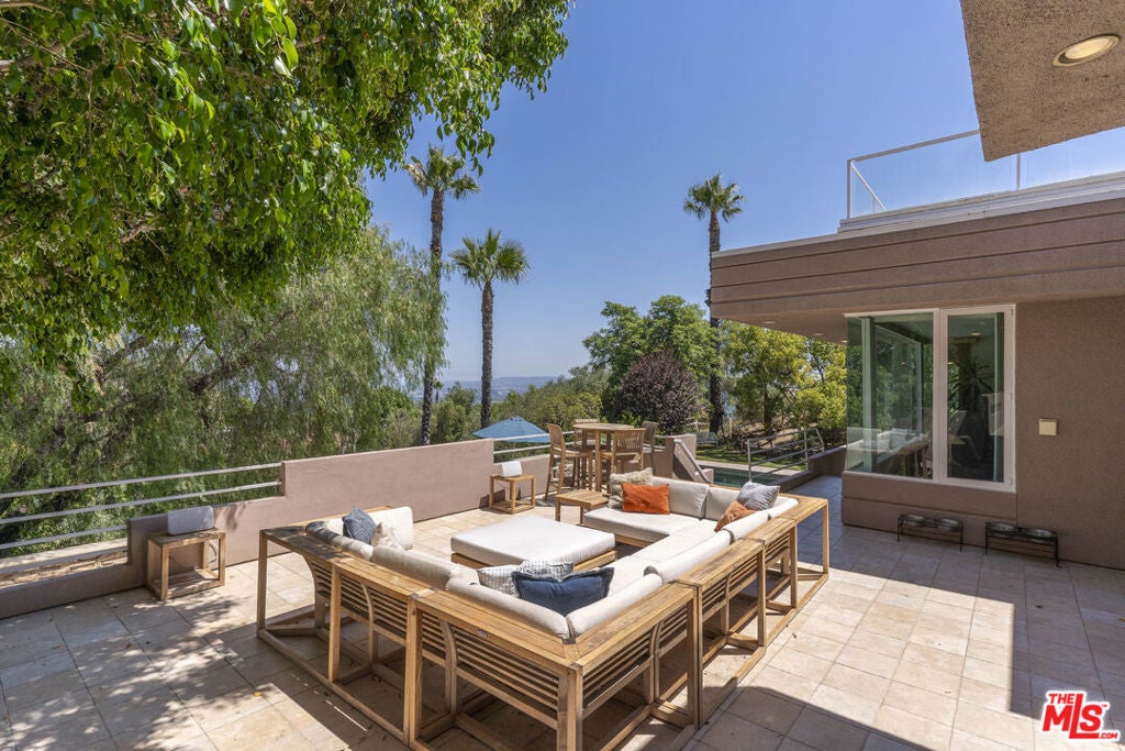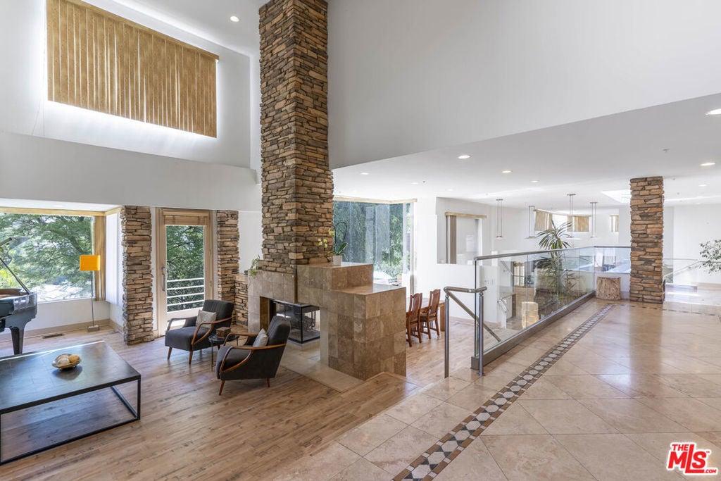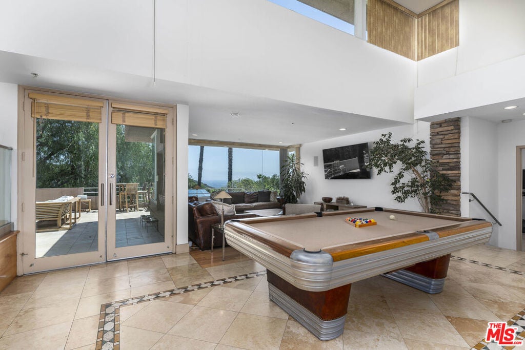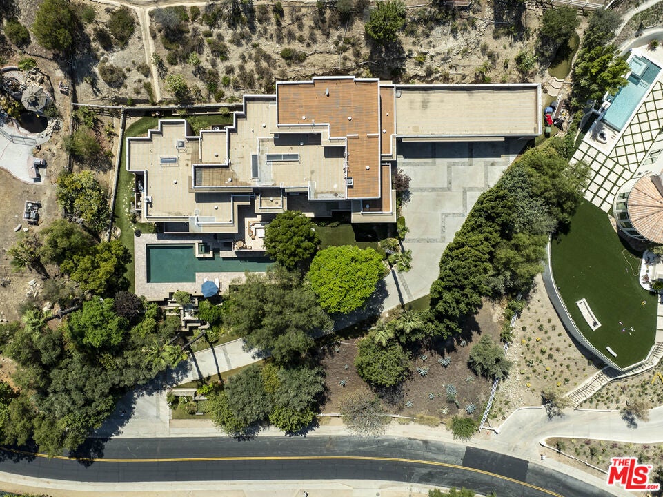 Perched at the end of a long private driveway in the prestigious guard-gated community of Bell Canyon, this striking architectural contemporary home blends privacy, luxury, and sweeping hillside and valley views from nearly every room. Set on over an acre of landscaped grounds, the property offers an exceptional backdrop for both everyday living and grand-scale entertaining. The impressive double-door entry opens to a light-filled multilevel floor plan, where glass, skylights, and soaring ceilings create a sense of openness and connection to the outdoors. Oversized living and dining areas flow seamlessly together, anchored by a dramatic two-sided fireplace and surrounded by view-filled patios. The chef's kitchen boasts Merle wood cabinetry, granite counters, dual islands, a breakfast bar, and an inviting eat-in nook with serene hillside vistas. A large family room overlooking the pool and patio features a pool table area and connects to a granite-topped wet bar with a mini-fridge that is perfectly placed for hosting guests. A highlight of the home is the private stadium-seating theater, offering the ultimate cinematic experience without ever leaving your property. For quieter moments, retreat to the private luxurious primary suite, complete with a fireplace, patio access, dual walk-in closets, and a huge spa-like bath featuring travertine finishes, a jetted tub, sauna, and separate vanities. The upstairs level includes a massive bedroom with a walk-in closet, a second large bedroom, and a shared Jack-and-Jill bath with dual vanities and an oversized soaking tub and makeup counter. Two additional main-level guest suites with en-suite baths provide flexibility for extended family or visitors. The resort-style front yard is a true showstopper, featuring a sparkling Pebble Tec lap pool with spa and grotto viewing window, expansive patios, a BBQ center, and rolling lawn areas - perfect for making memories with family and friends. The home is pre-wired for audio throughout. A viewing area up behind the house is a perfect spot for taking in the incredible views. A mirrored 5-car garage provides the perfect setting for the car enthusiast, as well as ample parking up the long private driveway. Residents of Bell Canyon enjoy access to an equestrian center, clubhouse, gym, tennis and pickleball courts, hiking trails, and year-round community events - all within the award-winning Las Virgenes School District.
