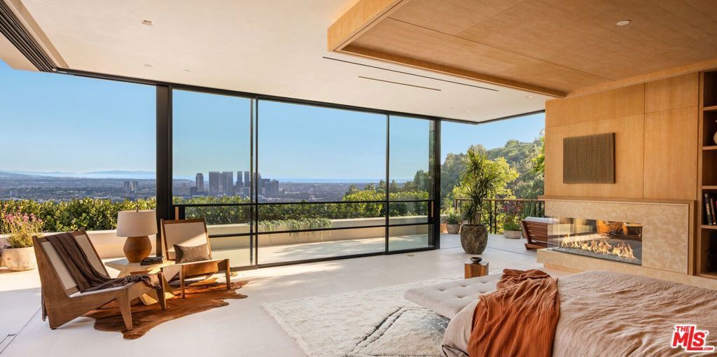 Experience timeless elegance in the exclusive Trousdale neighborhood of Beverly Hills. This organic estate, designed by renowned designer Charles Infante, weaves his experience in film to create a narrative fit for entertainment and curated for elevated living in every possible way. Spanning approx. 10,000 square feet, this architectural masterpiece showcases rich natural tones with Portuguese limestone, Italian Navona travertine, white oak paneling and floors, organic custom plaster walls, and motorized custom steel windows. Sleek lines perfectly frame cinematic city-to-ocean views. Inside, the main living spaces are open and airy, with walls of glass that fully pocket to create a seamless indoor/outdoor flow to the pool, spa, and patio. The expansive living room, dining area, and both the main and chef's kitchens are designed for grand scale living and entertaining. Four ensuite bedrooms offer refined comfort, in addition to a spacious, tranquil primary suite with motorized walls of glass, panoramic city views, and a spa-style bath. Luxurious amenities include a sleek gym with sauna, a temperature-controlled wine display, and an epic entertainment lounge with a sunken conversation pit, full bar, and state-of-the-art theater. The fully finished showcase garage features a car turntable; perfect for showcasing your collection. This is your moment to live above it all, in a home that sets the new standard for Trousdale living.